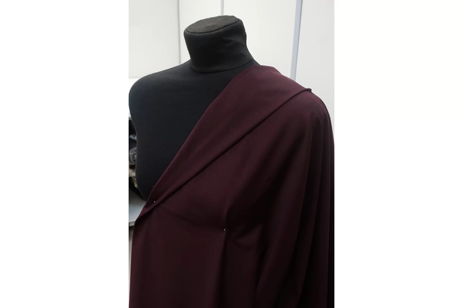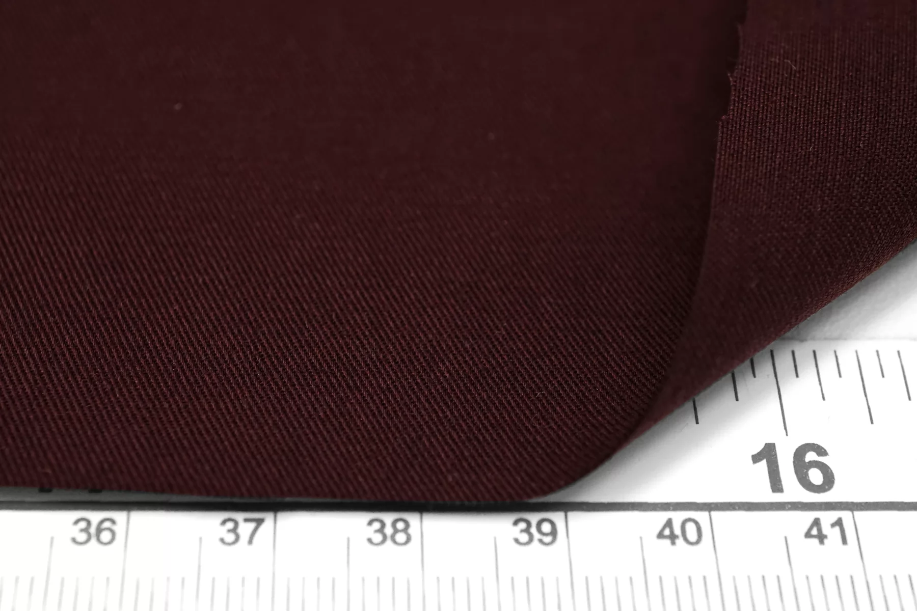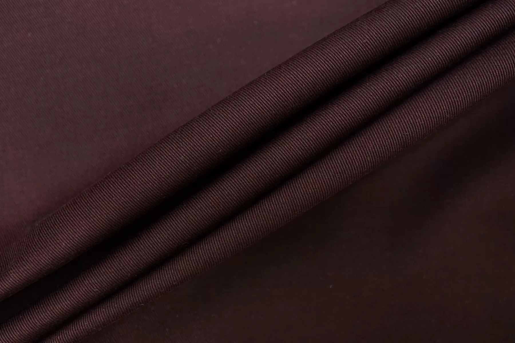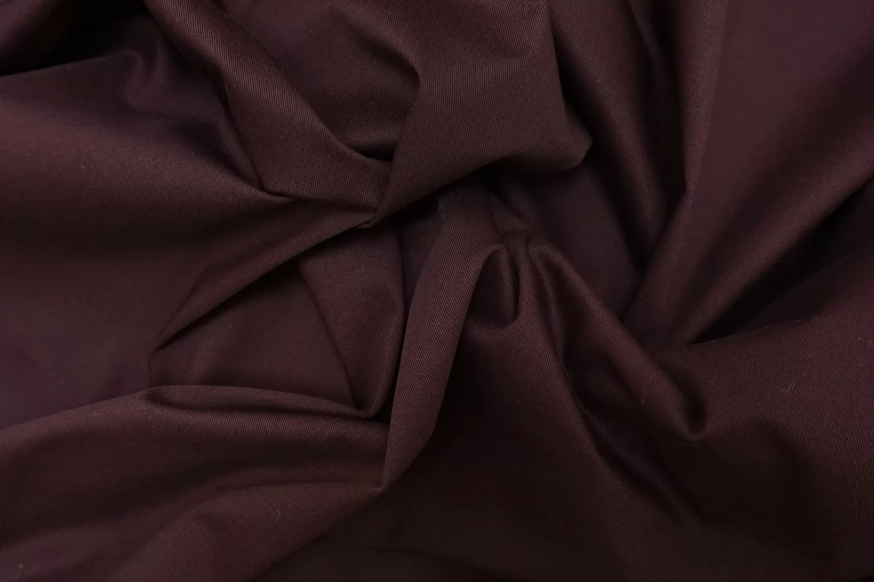 Хлопок костюмно-плательной плотности, диагонального плетения, в насыщенном, тёмном сливовом оттенке. Тактильно приятный, не грубый. Пластичный но форму держит. Мнется умеренно, немного тянется, не просвечивает. Отлично подойдет для пошива летних костюмов, брюк, юбок, платьев-сафари, можно на пыльник или тренч, но учитывайте что ткань воду не отталкивает.