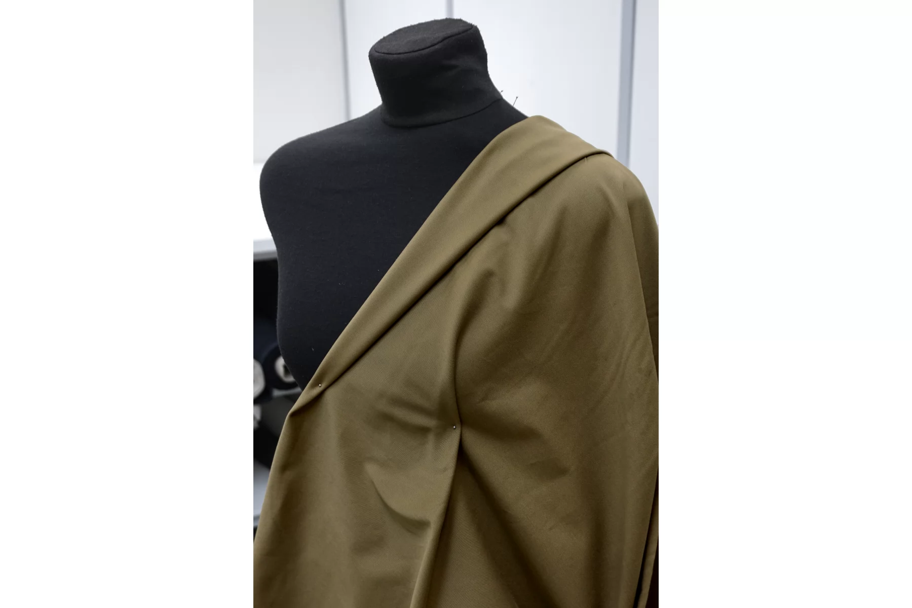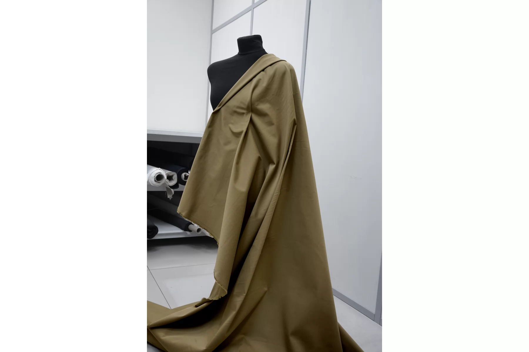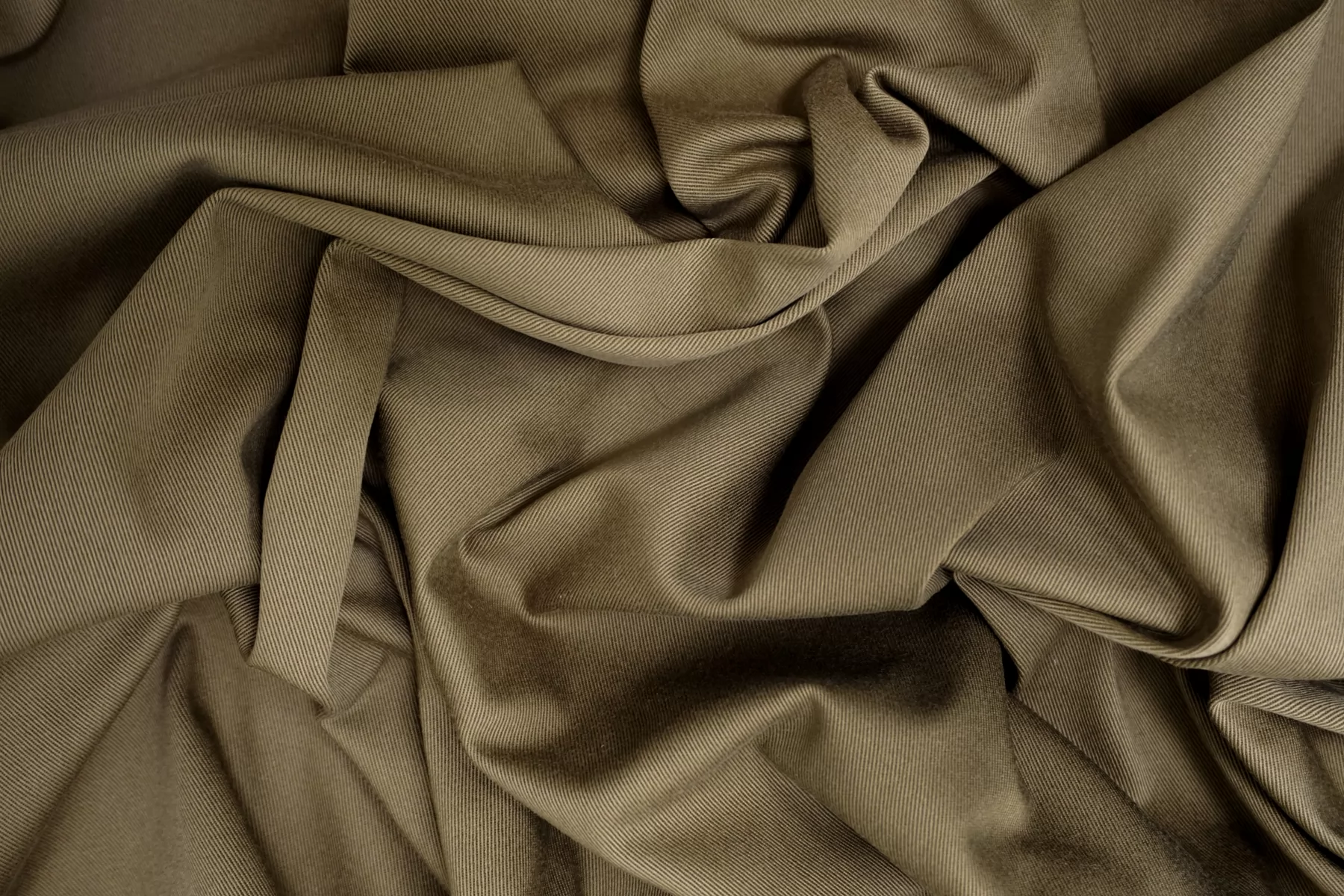 Хлопок костюмной плотности, диагонального плетения, в ненасыщенном, сложном оттенке горчичного хаки. Тактильно приятный, не грубый. Пластичный но форму держит. Мнется умеренно, тянется, не просвечивает. Отлично подойдет для пошива летних костюмов, брюк, юбок, платьев-сафари, можно на пыльник или тренч, но учитывайте что ткань воду не отталкивает.