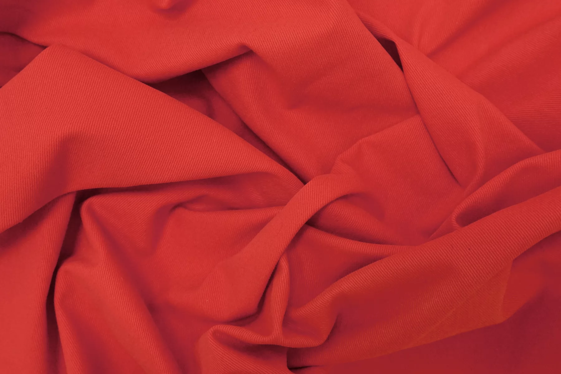 Отличного качества костюмный хлопок диагонального плетения с бархатистой поверхностью «под велюр», в ярком, насыщенном кораллово-красном цвете. Тактильно материал очень приятный, велюровый. Не просвечивает, тянется. Мнется средне, держит форму. Шьем костюмы, платья, юбки, брюки. Можно использовать и для пошива тренча либо пыльника, но учитывайте что материал сразу промокает.