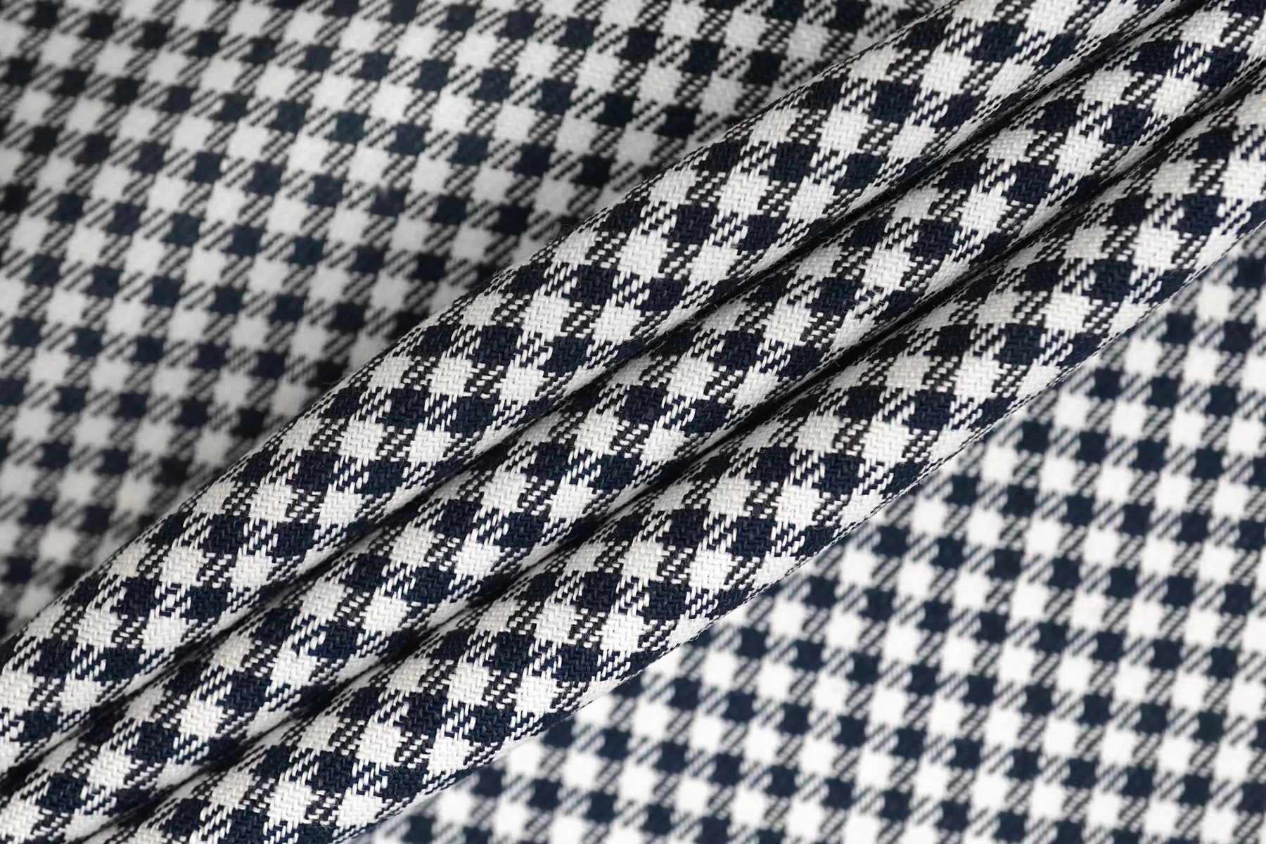 Хлопок-стрейч костюмный в клетку-гусиную лапку Бело-синий TRC H11/1 B70 12122550