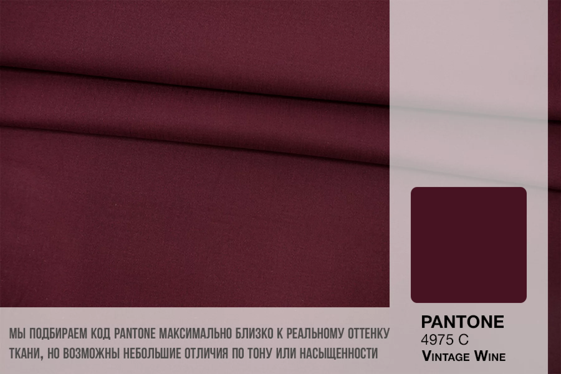 Классный костюмный хлопок, сатиновый, в глубоком, насыщенном оттенке марсала. Поверхность бархатистая, с peach - эффектом. Тактильно приятный, мягкий, пластичный, гладкий. Обладает лёгким лоском. Достаточно плотный. Не просвечивает. Сминается. Тянется. Держит форму, умеренной пластичности. Вариант на костюмы, платья, юбки, брюки.