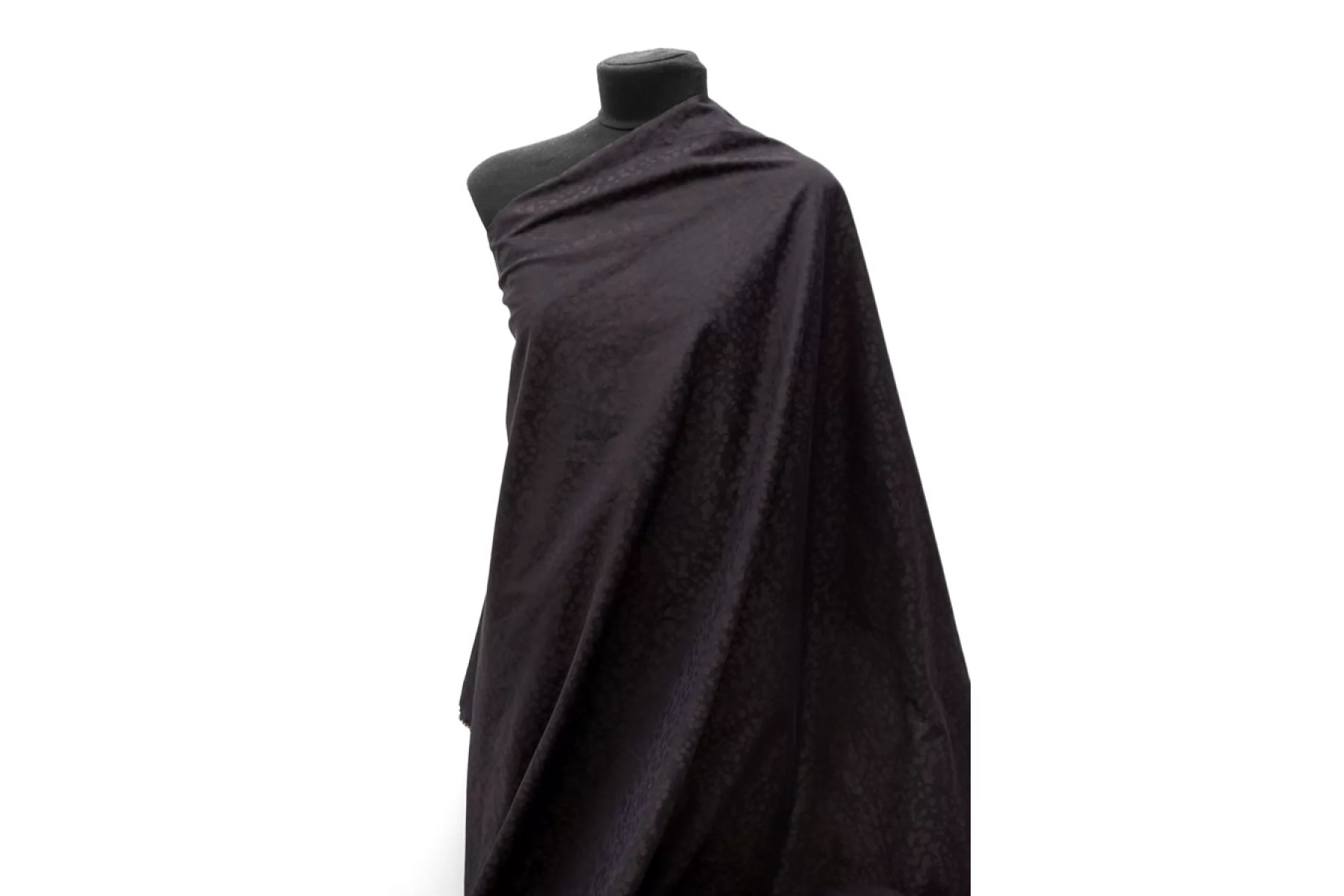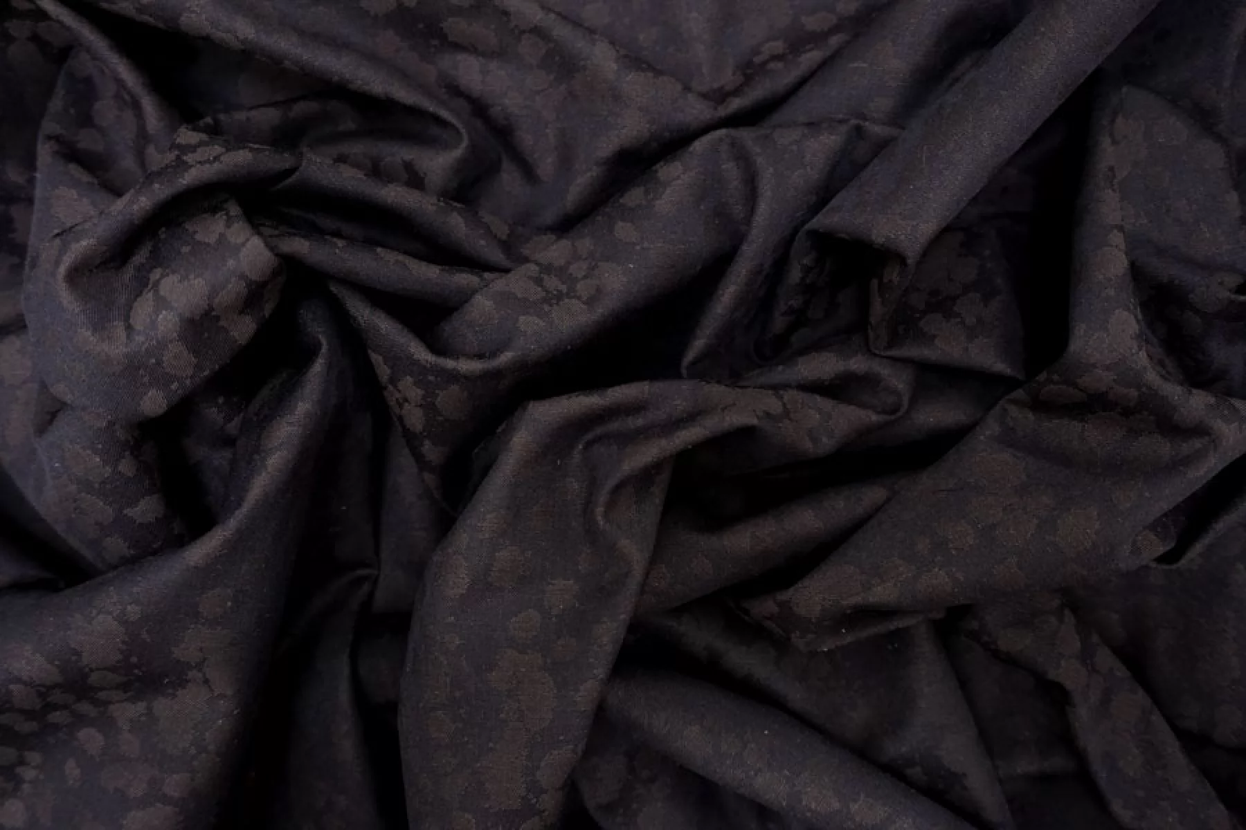 Плательно-костюмный хлопковый жаккард со стилизованным пятнистым узором темно-коричневого цвета. Хорошо драпируется и немного держит форму, не тянется. Не просвечивает, сминаетсясредне. Подойдет на платья, брюки, юбки.