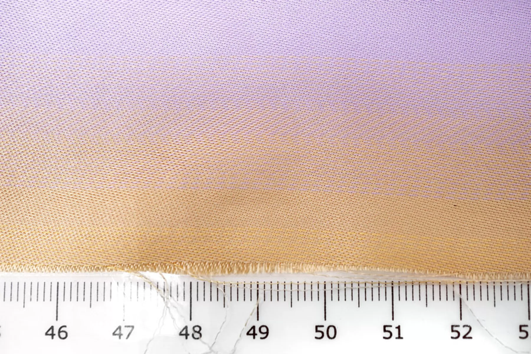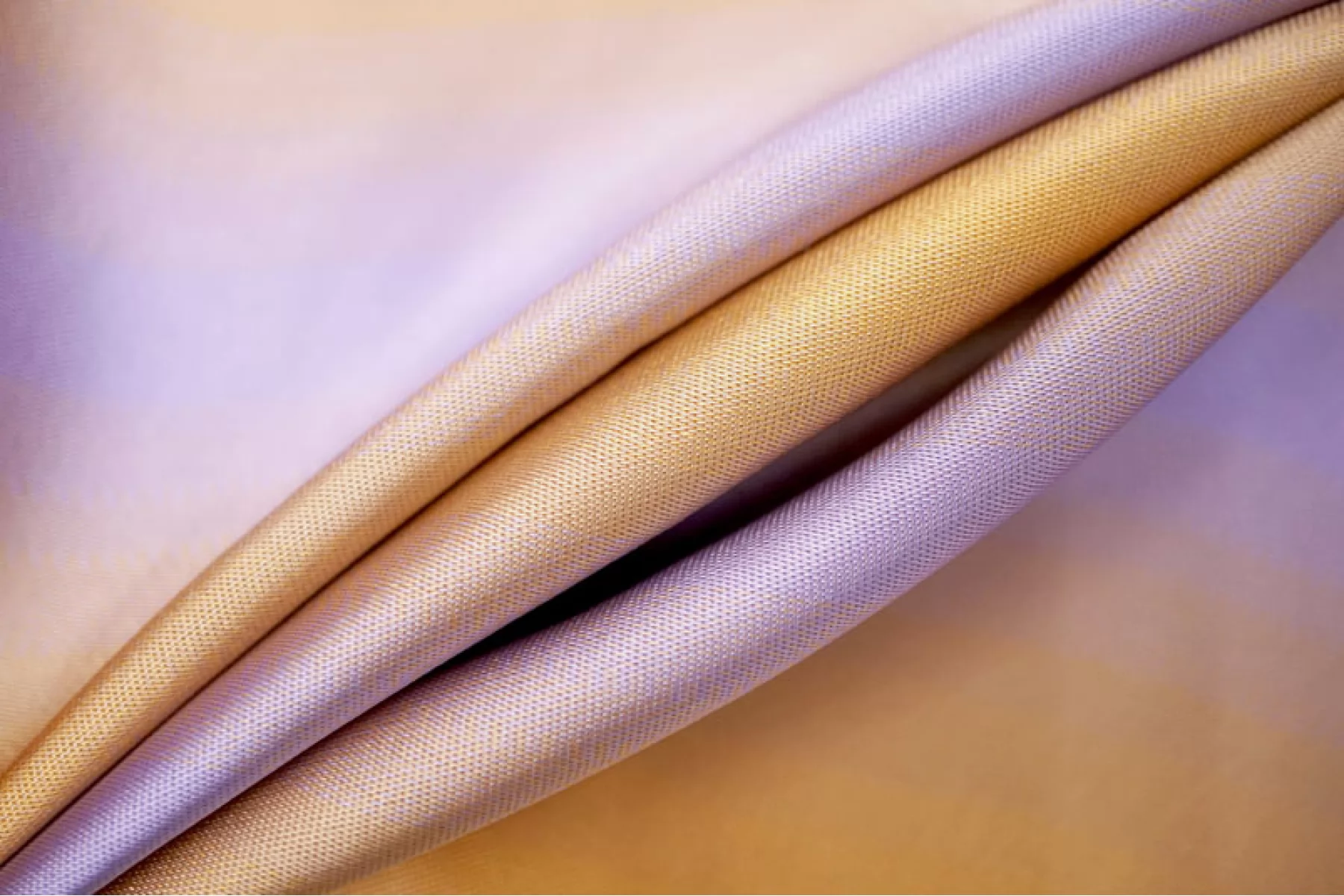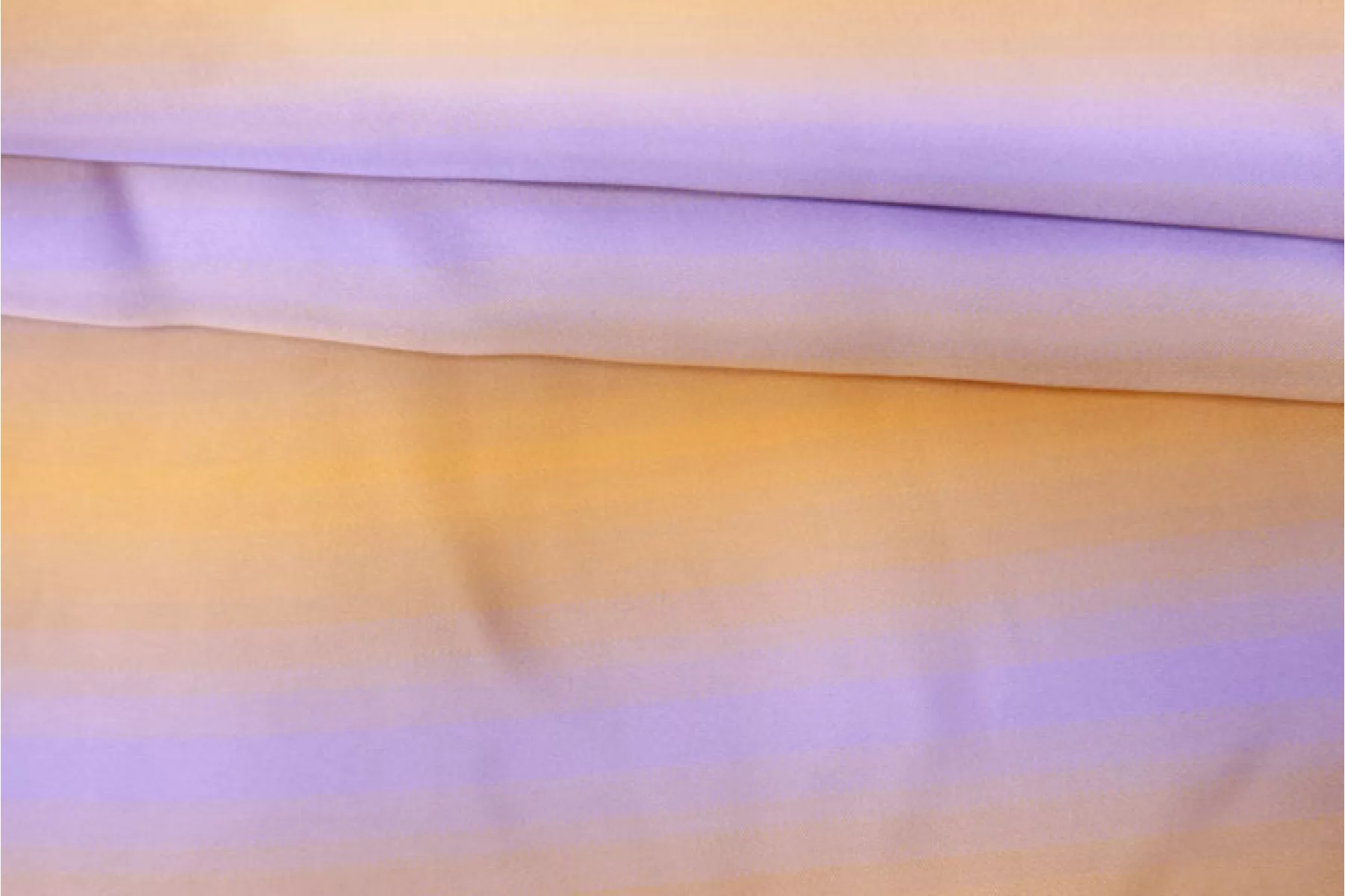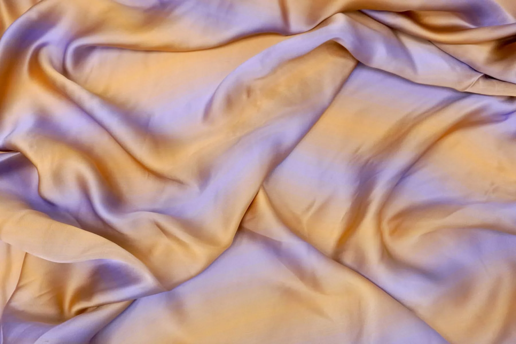 Очень красивая кади из вискозы с принтом деграде оттенков сиренево-лилового и песочно-золотистого. Приятная, скользящая, гладкая, мягкая, пластичная. Обладает красивым лоском. Плотная и тяжеленькая. Слегка сминается. Не просвечивает. Форму держит слабо. Хороша в пластике. Прекрасный вариант на платья, юбки, кимоно и мягкие жакеты, а также костюмы в пижамном стиле. Обязательно учитывайте усадку 5-10% .