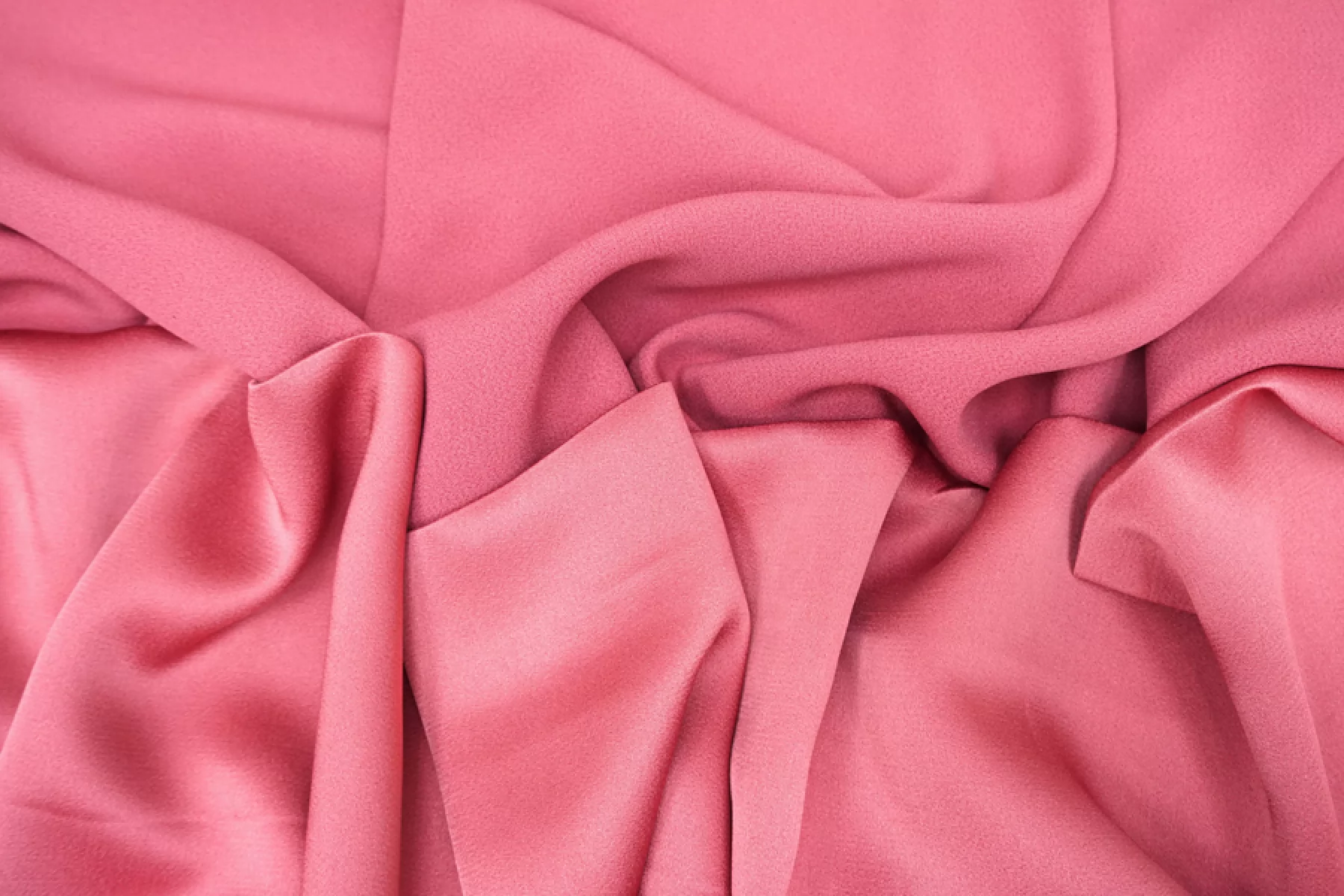 Прекрасная вискозная кади от бренда FORTE FORTE розово-брусничного оттенка. Материал пластичный, мягкий. Смотрится красиво! У материала две стороны- одна креповая - шероховатая, другая - атласная - гладкая с нежным блеском. Не тянется, но слегка пружинит за счет плетения. Форму не держит, но красиво смотрится в складках и движении. Слегка сминается. Не просвечивает, но если смотреть прямо на просвет, слегка заметна тень силуэта. Отличный вариант на платья, юбки, брюки, кимоно и одежду в пижамном стиле. Обязательно учитывайте возможную усадку 5-10%