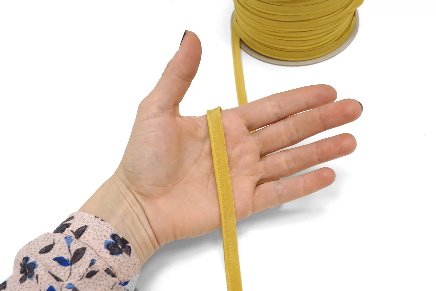 Кант отделочный желтый в горчичном оттенке . Применяется для декорирования и укрепления отделочных швов. Ширина 1 см.