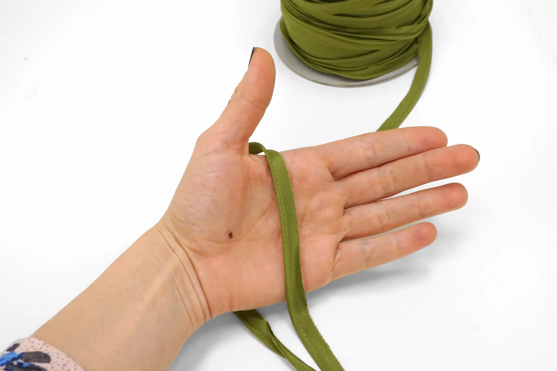 Кант отделочный атласный в оттенке Хаки . Применяется для декорирования и укрепления отделочных швов. Ширина 1 см.