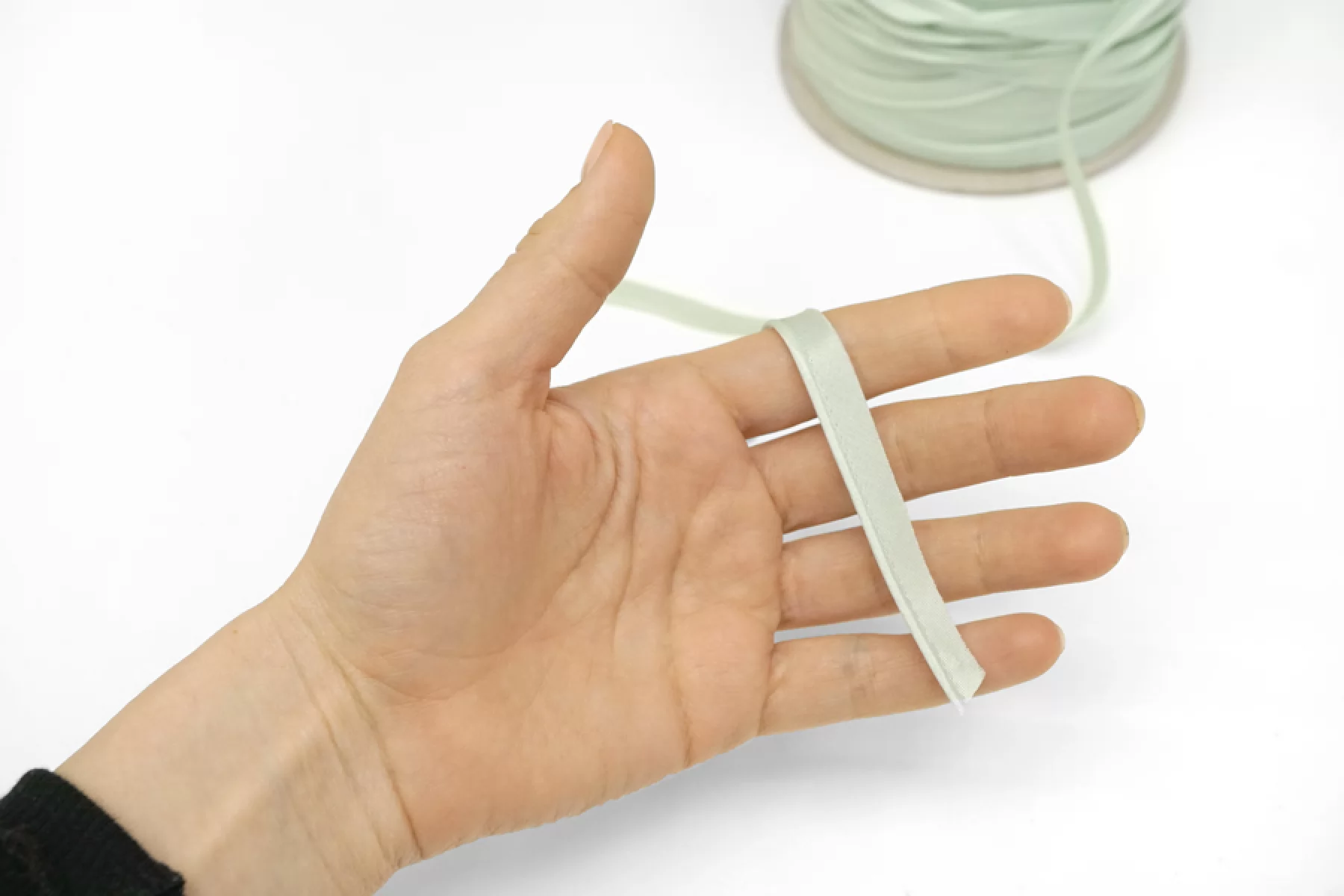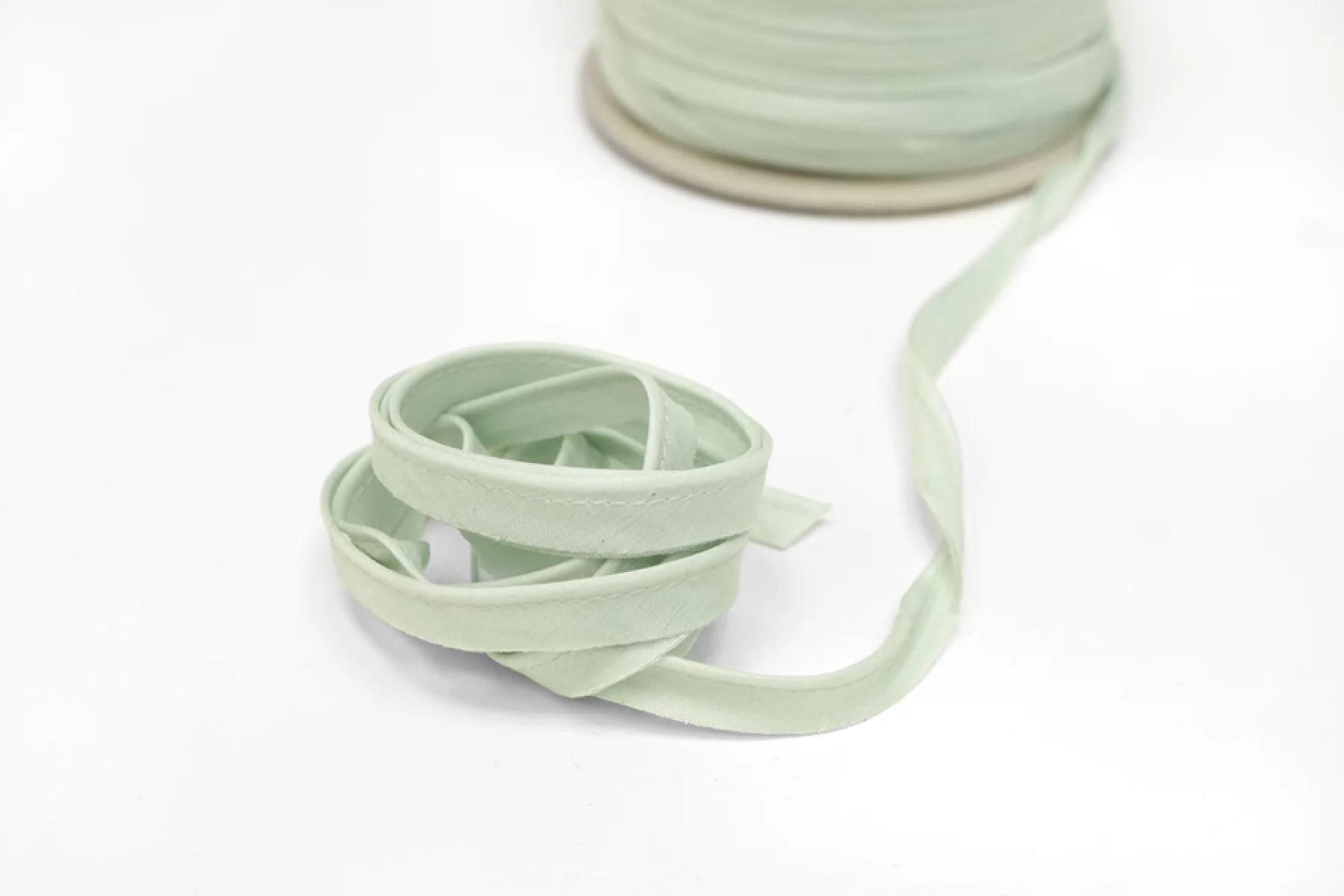 Кант отделочный атласный оттенка холодной мяты из ацетата. Применяется для декорирования и укрепления отделочных швов. Ширина 1 см.