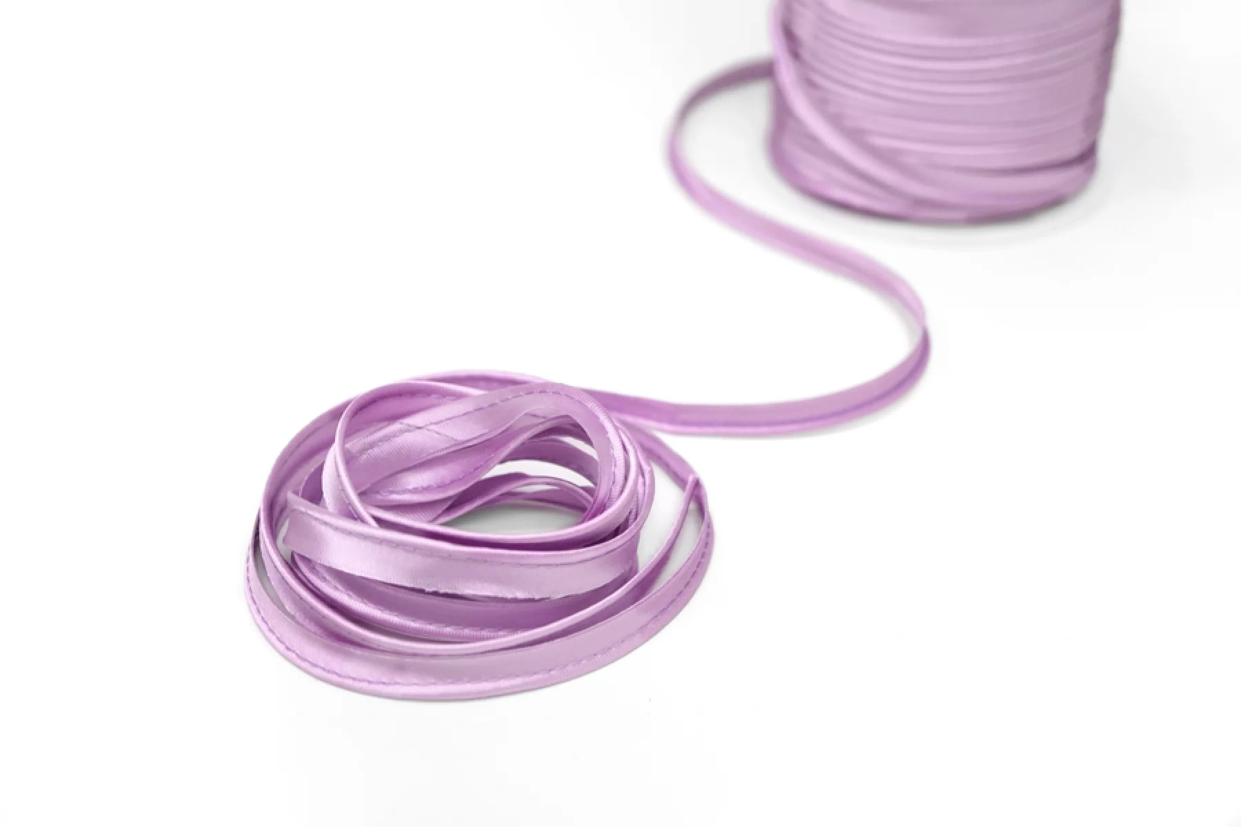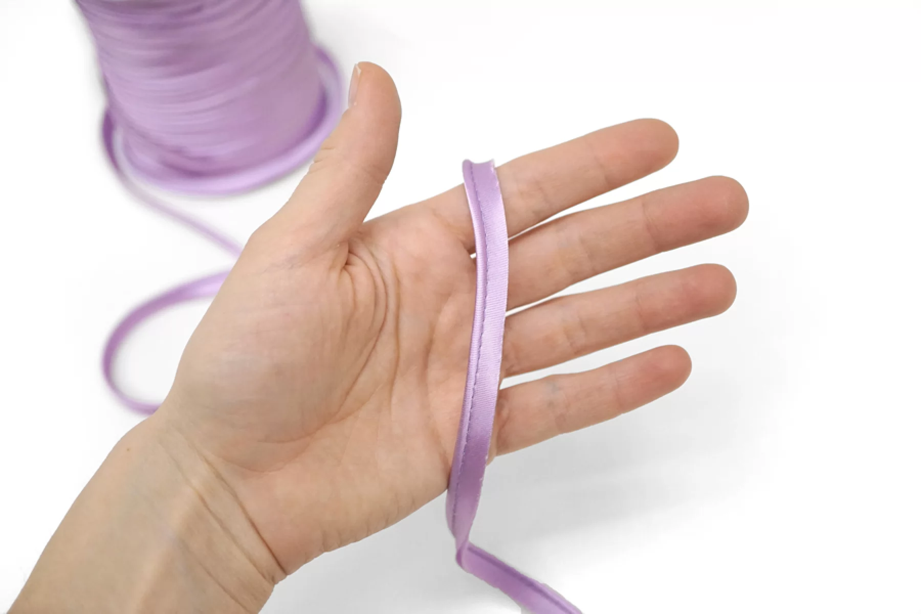 Кант отделочный вискозный, атласный, лилового оттенка с красивым лоском. Применяется для декорирования и укрепления отделочных швов. Ширина 1 см.