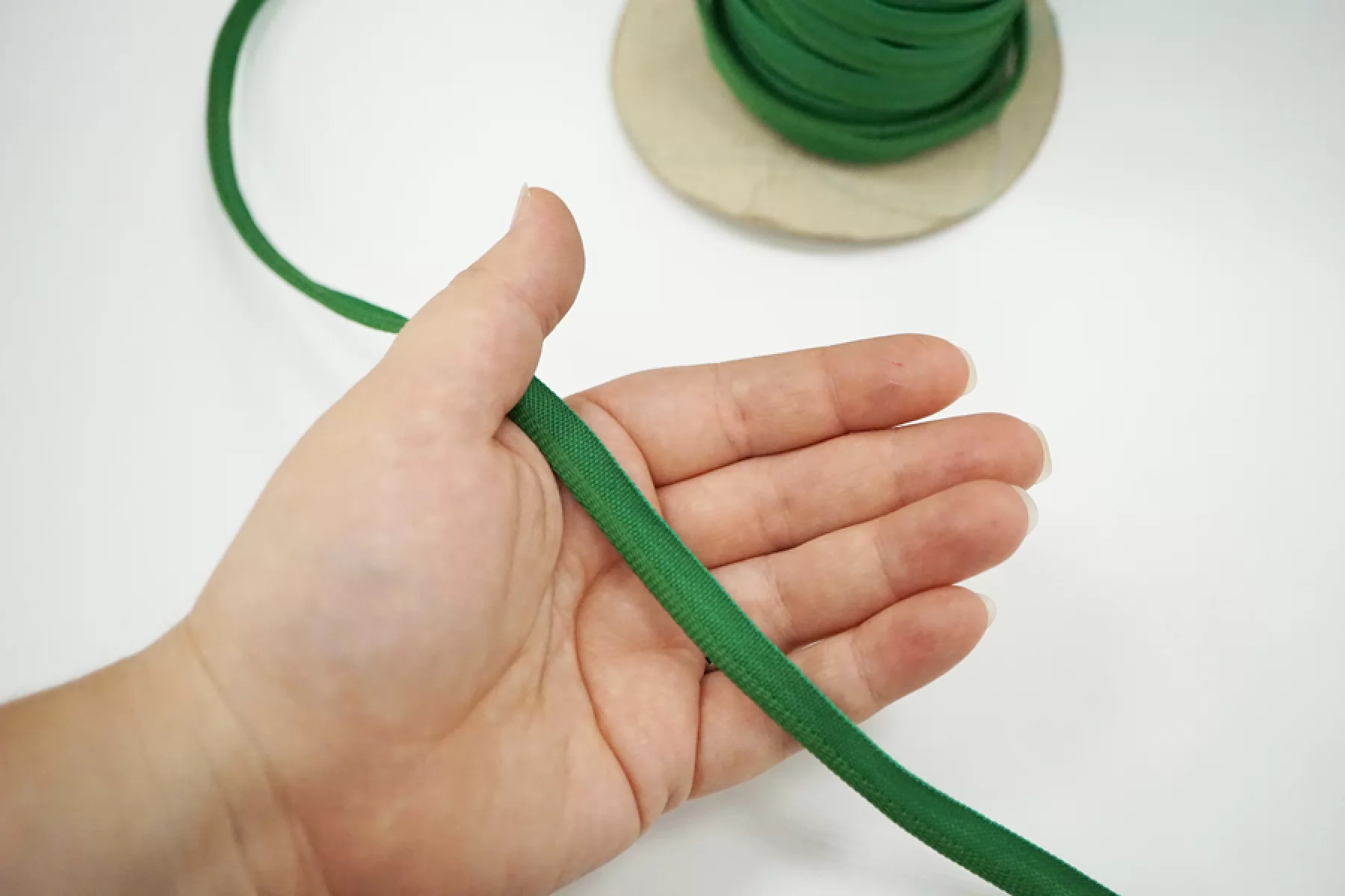 Кант отделочный травянисто-зеленый из хлопка и полиэстера. Применяется для декорирования и укрепления отделочных швов. Ширина 1 см.