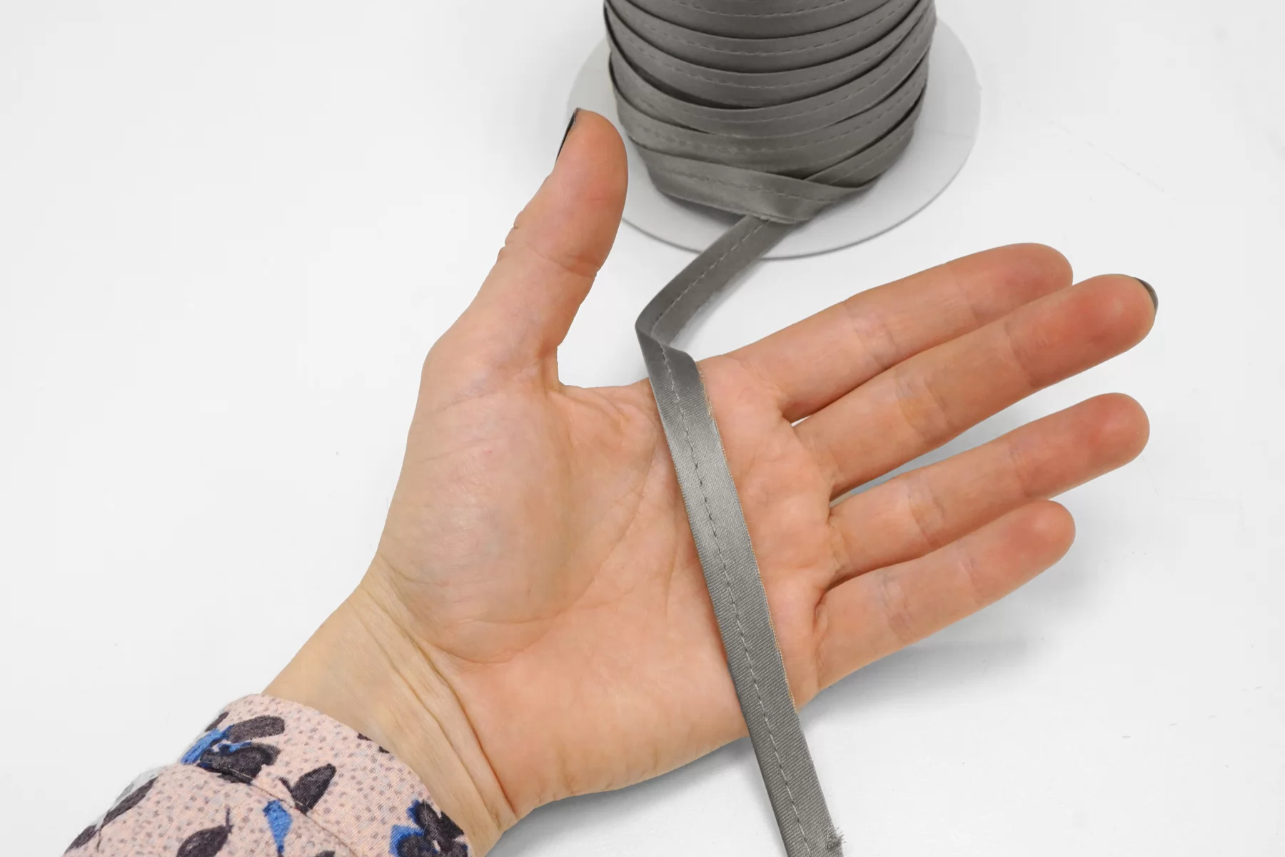 Кант MARINA RINALDI отделочный плоский (без шнура внутри) серого цвета . Применяется для декорирования и укрепления отделочных швов. Ширина 1,2 см.