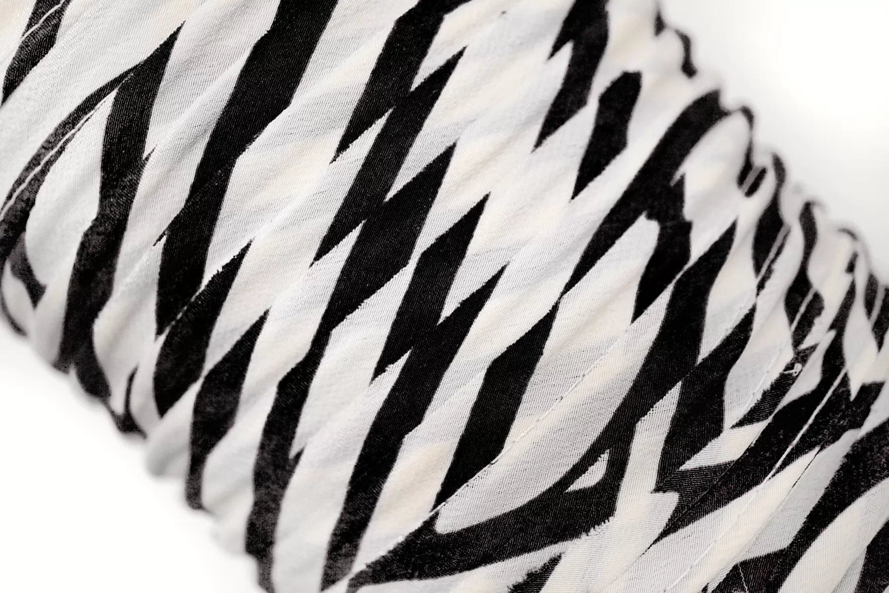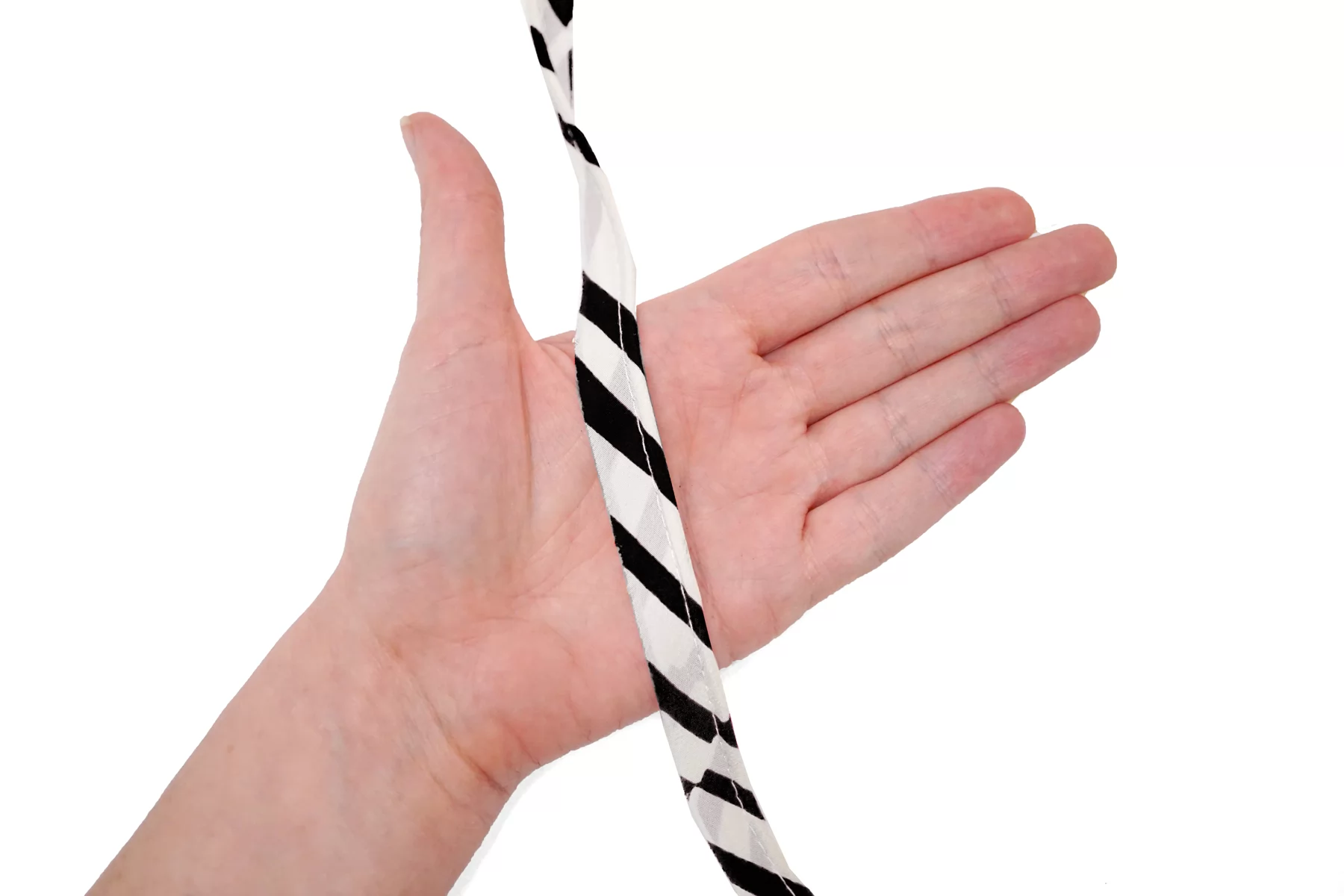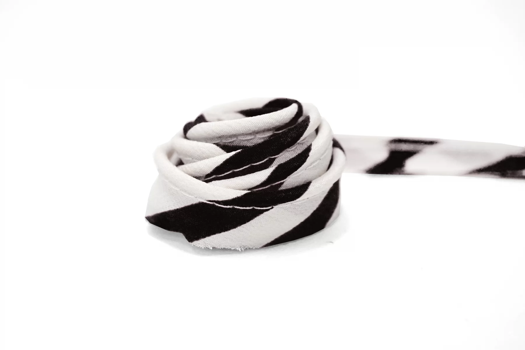 Отделочный шелковый кант в полоску молочного и чёрного цвета. По плетению это крепдешин, выкроен по косой. Для объема внутри хлопковый шнур. Ширина 1,5 см.