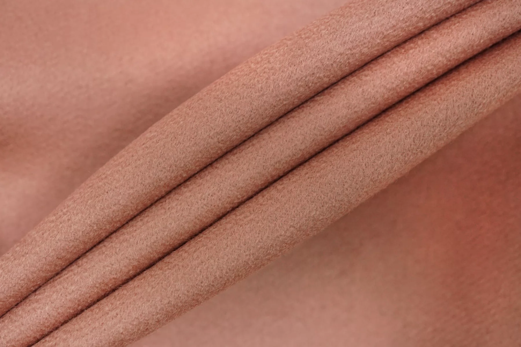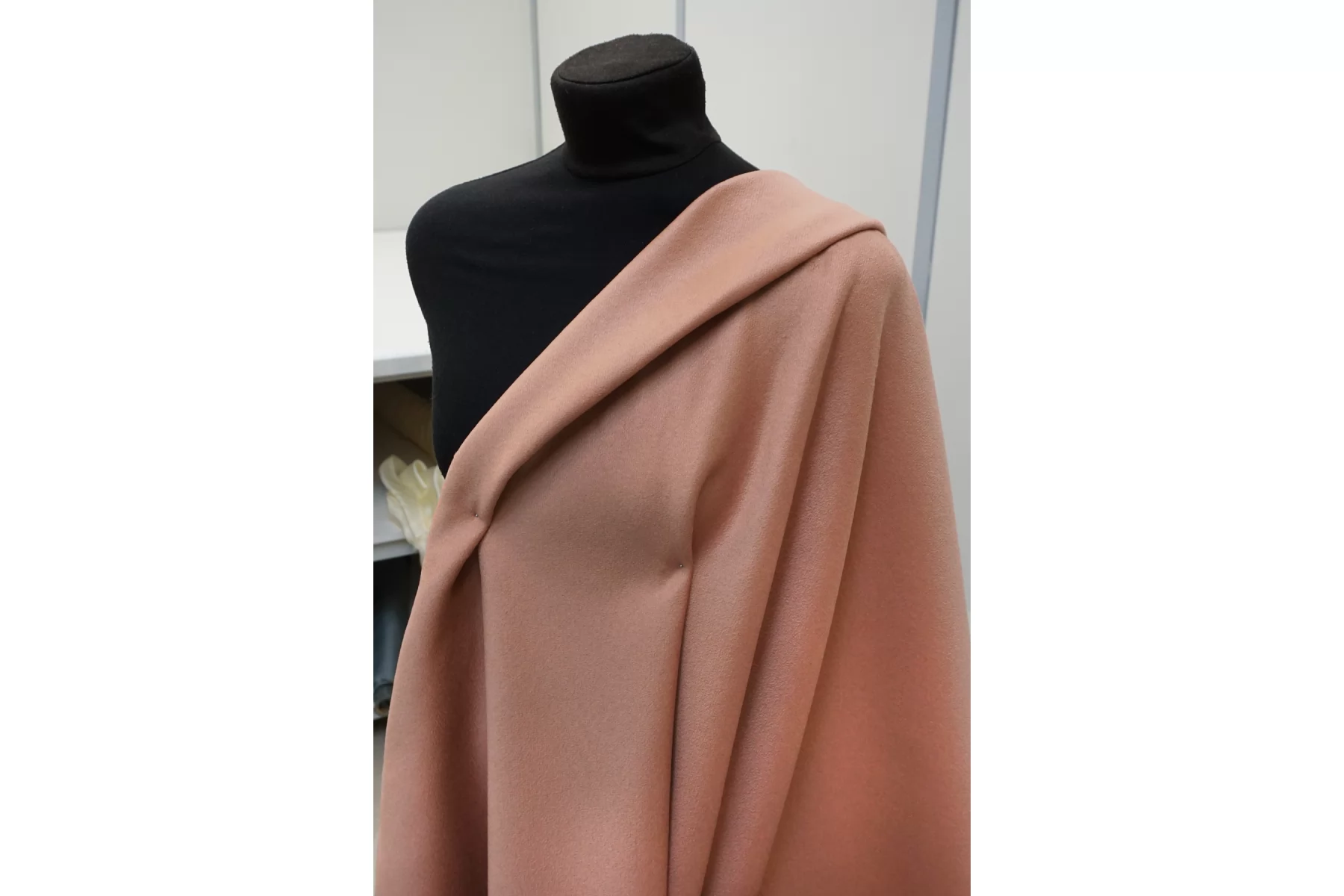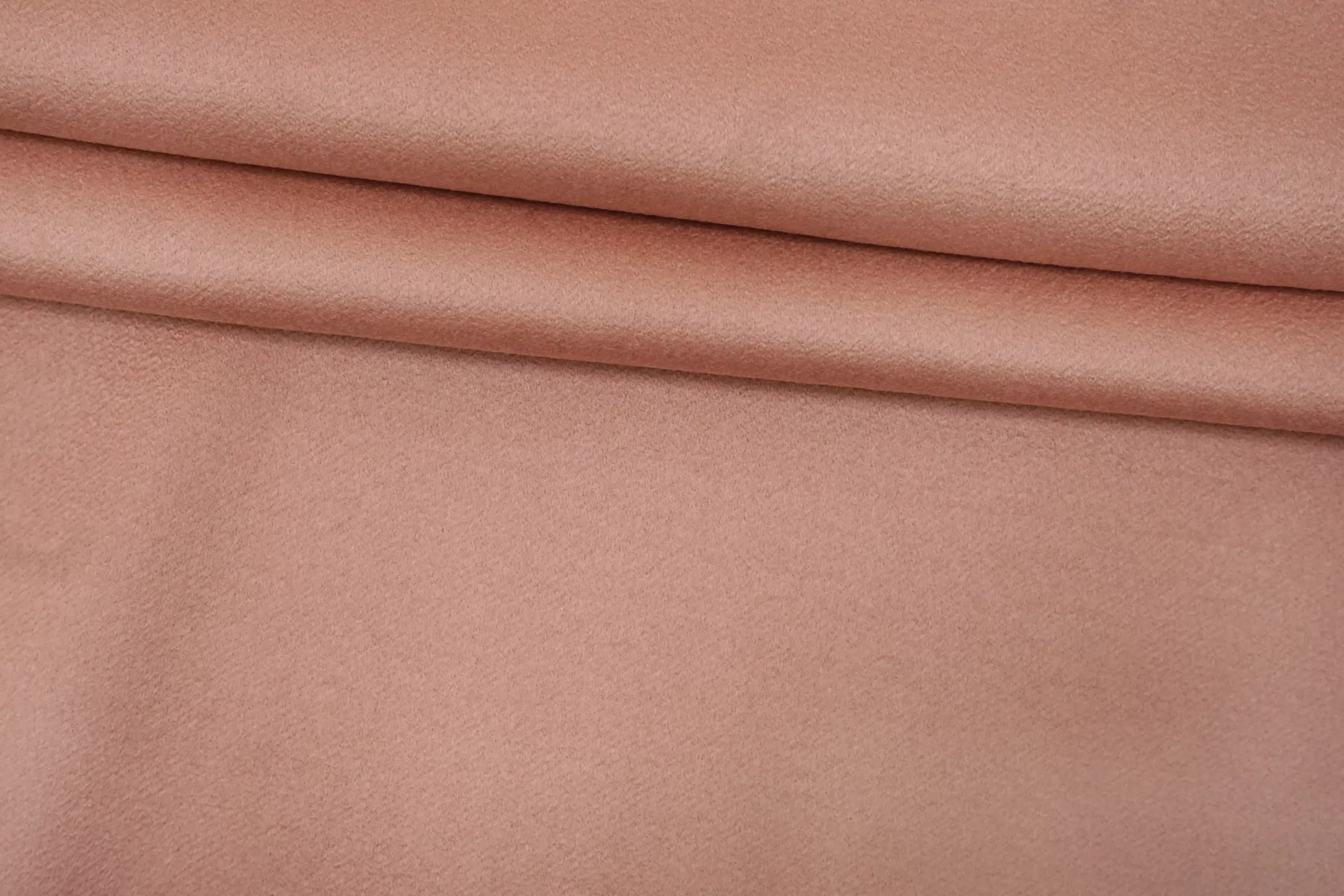 Шикарный пальтовый кашемир, в нежном, чуть приглушённом розовом оттенке. Двуслойный и двусторонний, слои сшиты между собой и легко разделяются, без повреждений. Невероятно мягкий и приятный наощупь. Имеет очень короткий направленный ворс. Не колется. Толстенький, примерно 2 мм толщиной. Пластичный, форму держит, не мнется. Работать можно на обе стороны. Шьем рубашки, теплые жакеты и облегченные пальто. Уход - деликатный.