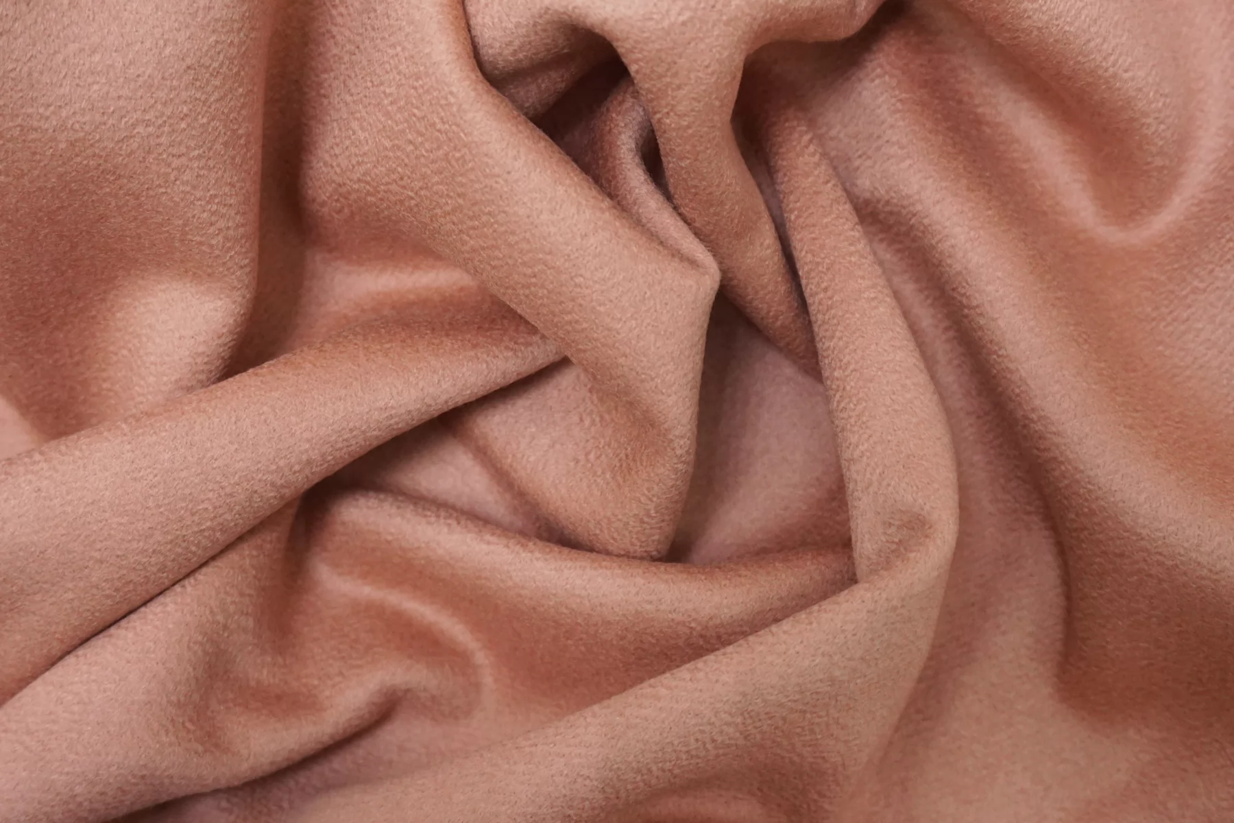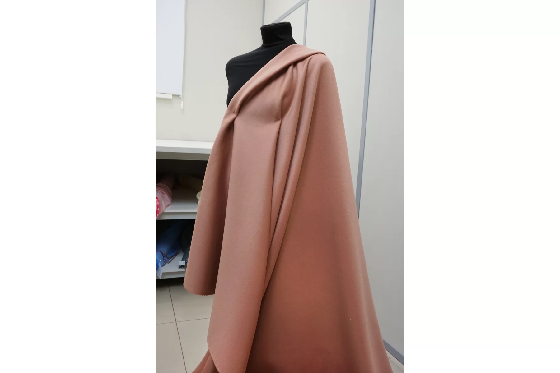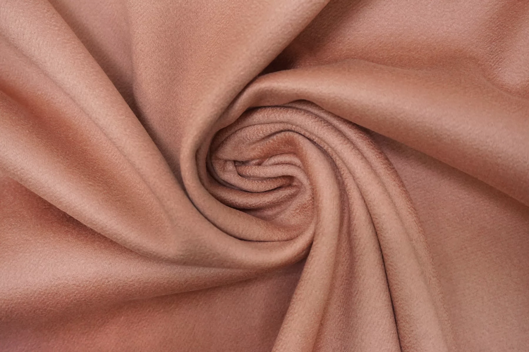 Шикарный пальтовый кашемир, в нежном, чуть приглушённом розовом оттенке. Двуслойный и двусторонний, слои сшиты между собой и легко разделяются, без повреждений. Невероятно мягкий и приятный наощупь. Имеет очень короткий направленный ворс. Не колется. Толстенький, примерно 2 мм толщиной. Пластичный, форму держит, не мнется. Работать можно на обе стороны. Шьем рубашки, теплые жакеты и облегченные пальто. Уход - деликатный.