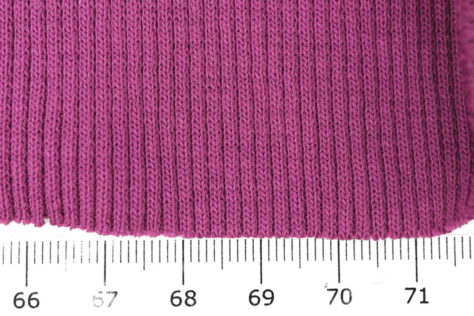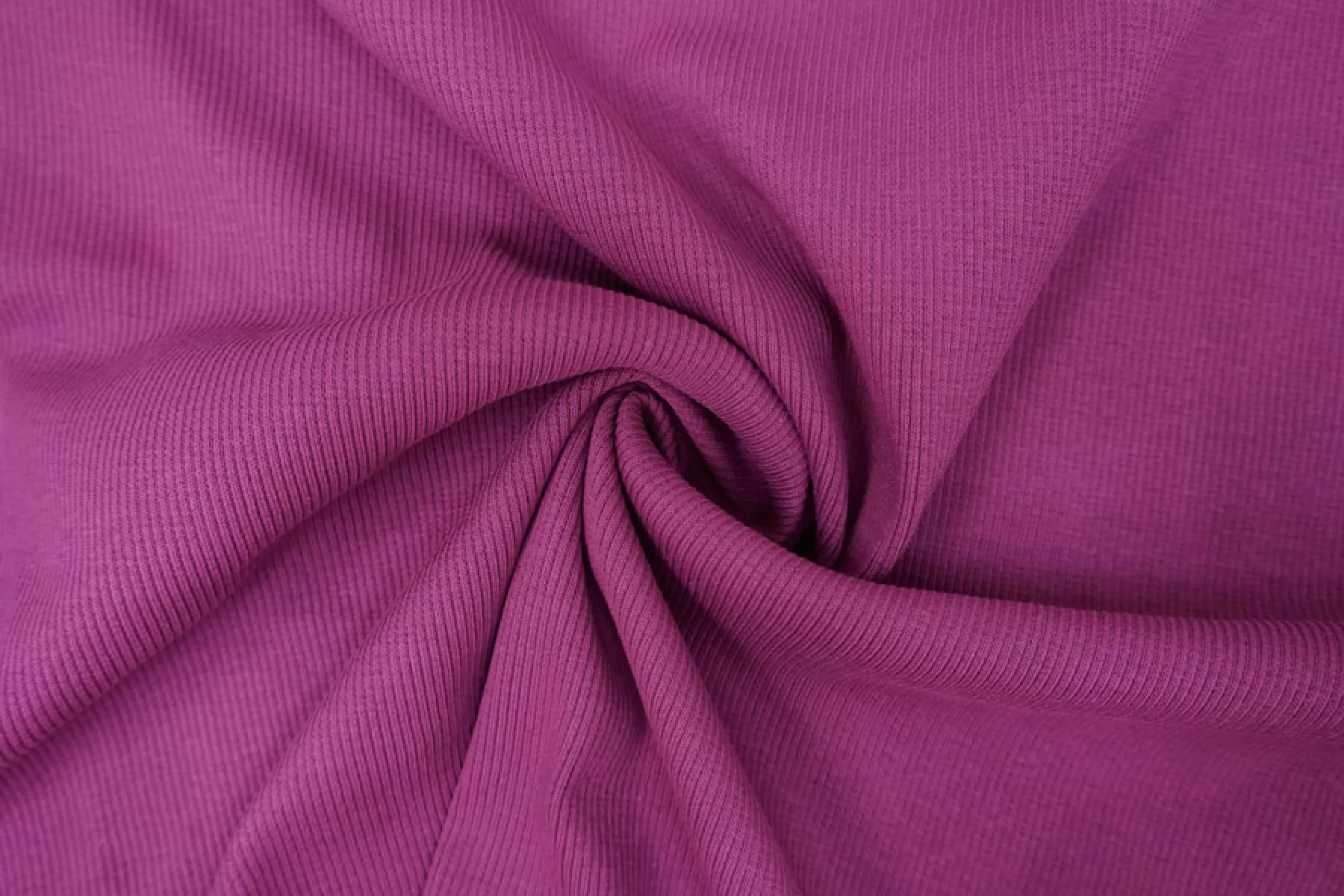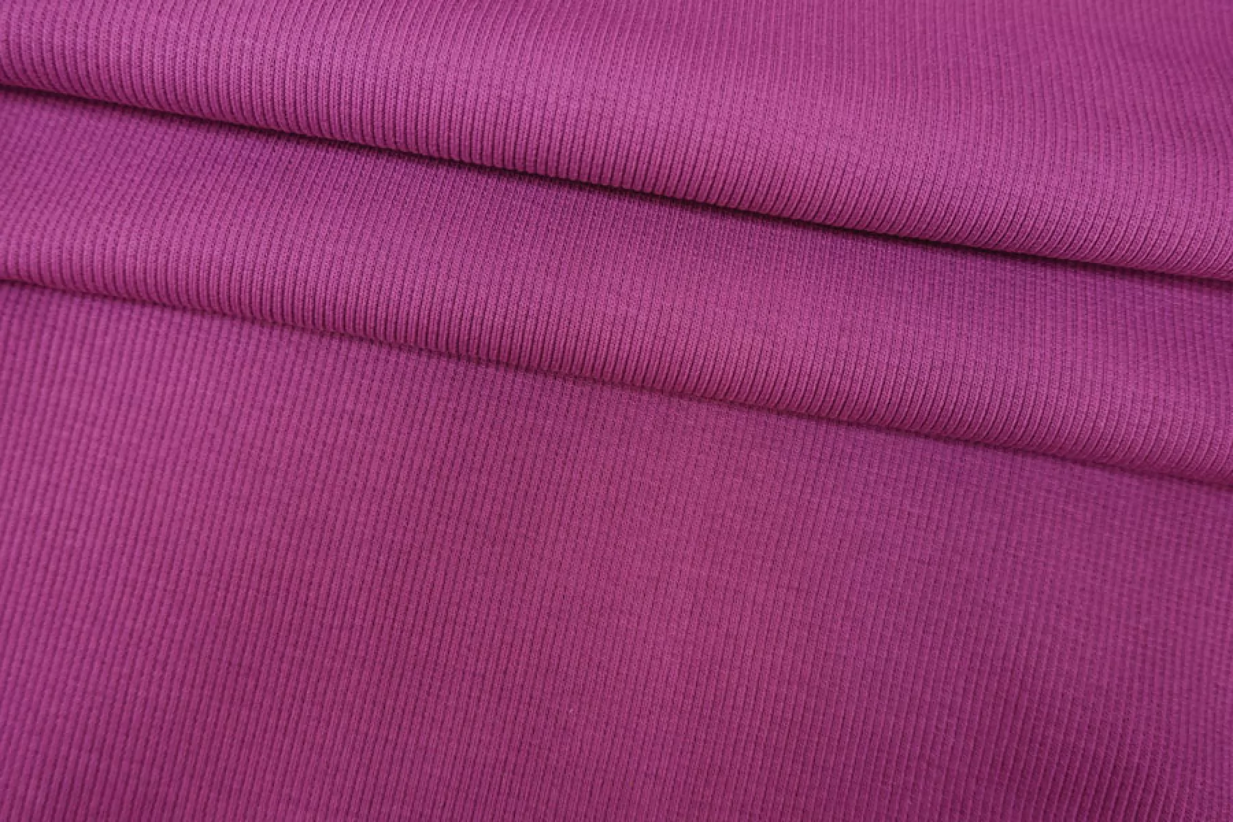 Трикотаж, вязка кашкорсе, фиолетового цвета, от бренда MISSONI. Эластичный, пластичный, не просвечивает. Хорошо тянется и чувствуется плетение. Подойдет для пошива майки или топа, манжет, подвязов.