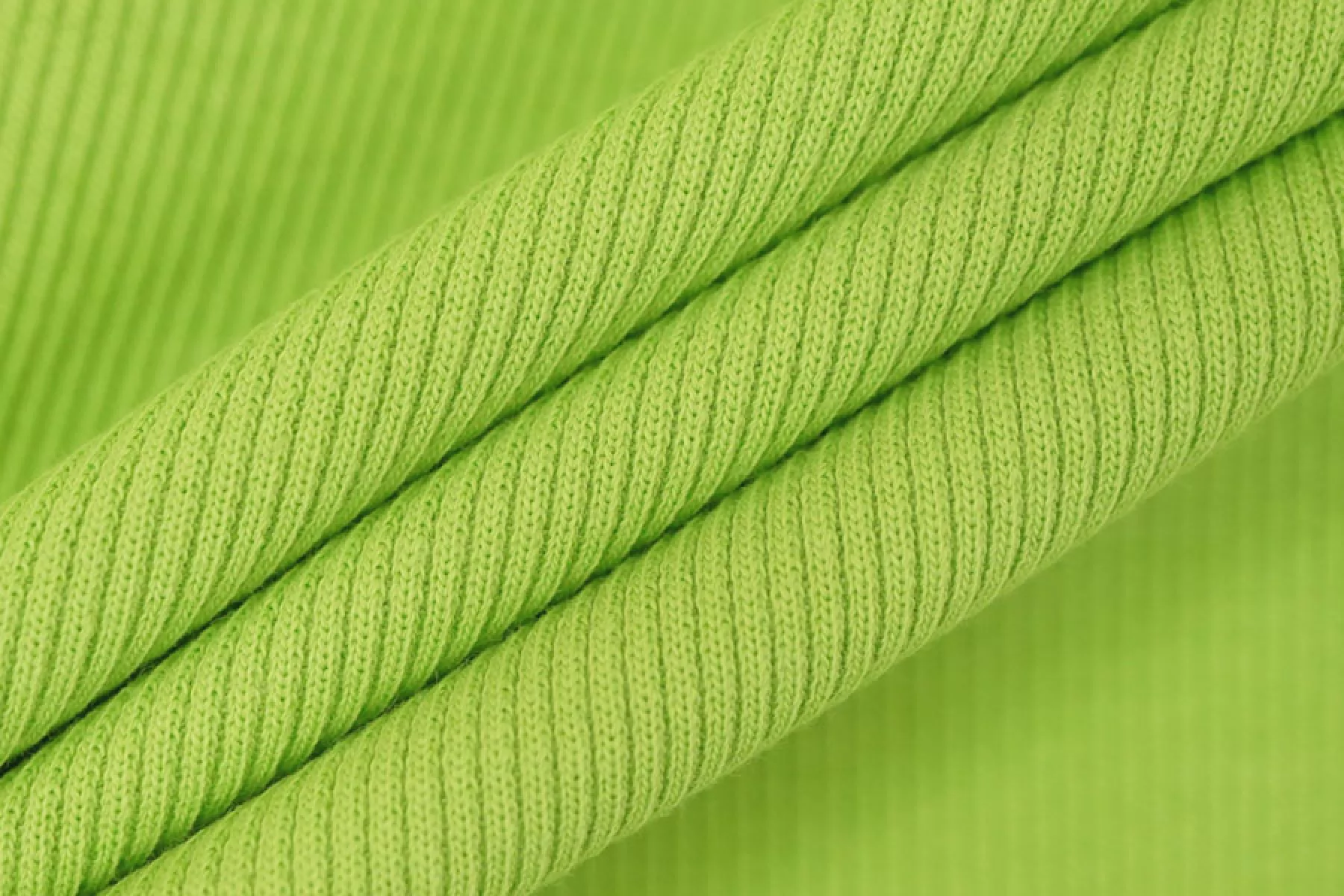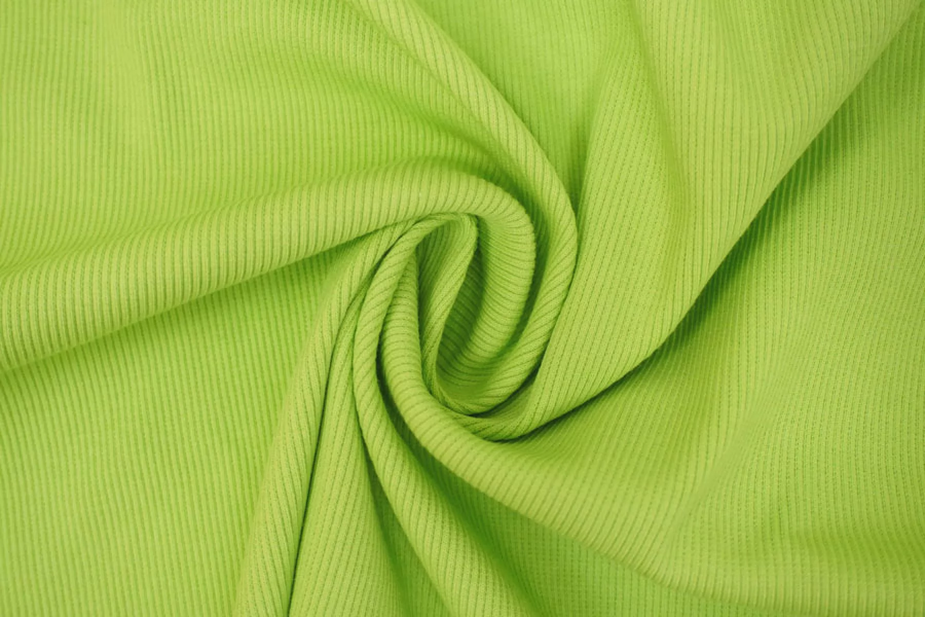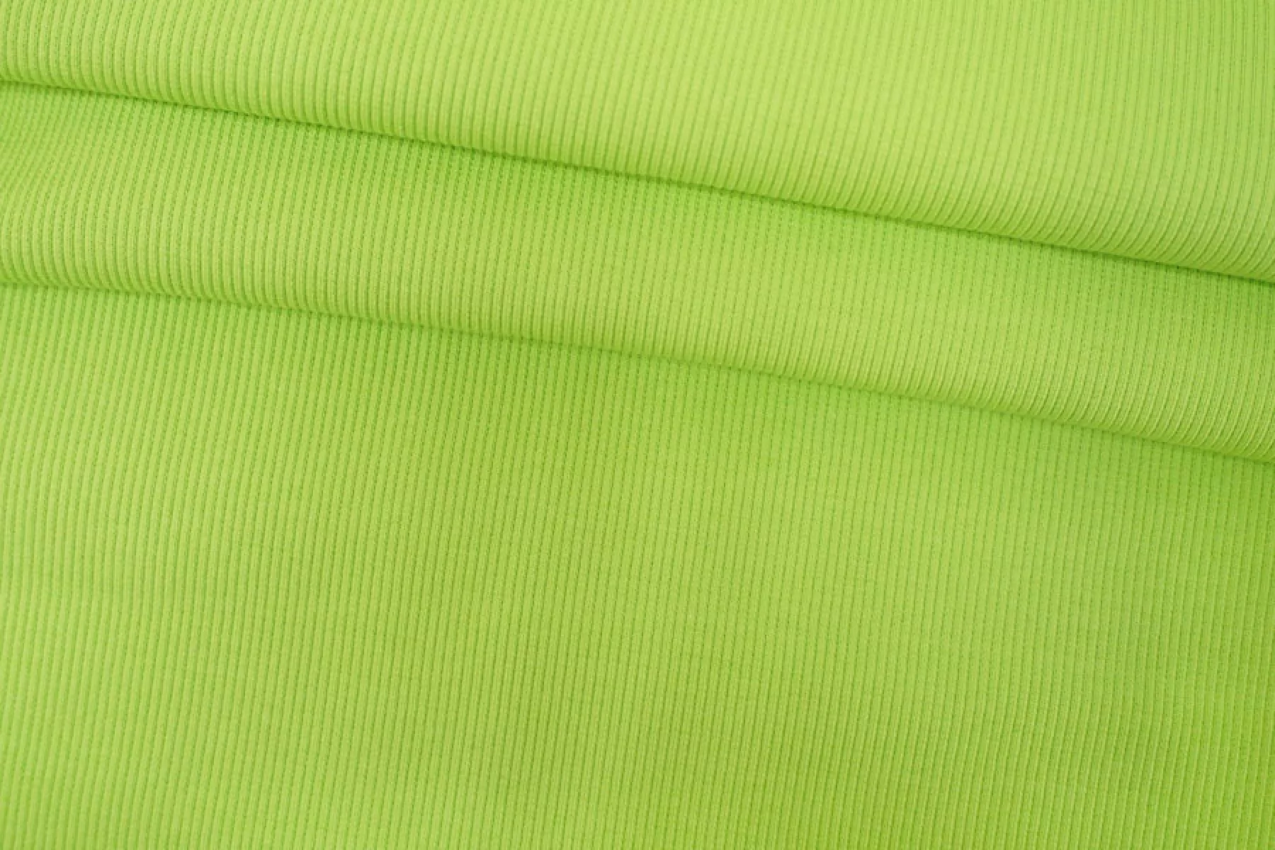 Трикотаж, вязка кашкорсе, салатового цвета, от известного модного дома DIOR. Эластичный, пластичный, чувствуется плетение на ощупь, не просвечивает. Достаточно плотный. Хорошо тянется. Подойдет для пошива майки, топа, манжет, подвязов.