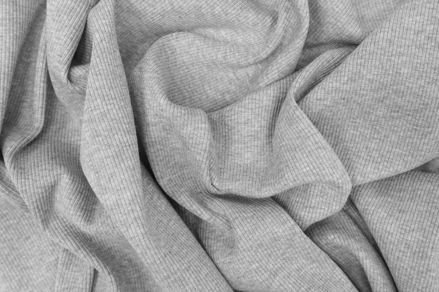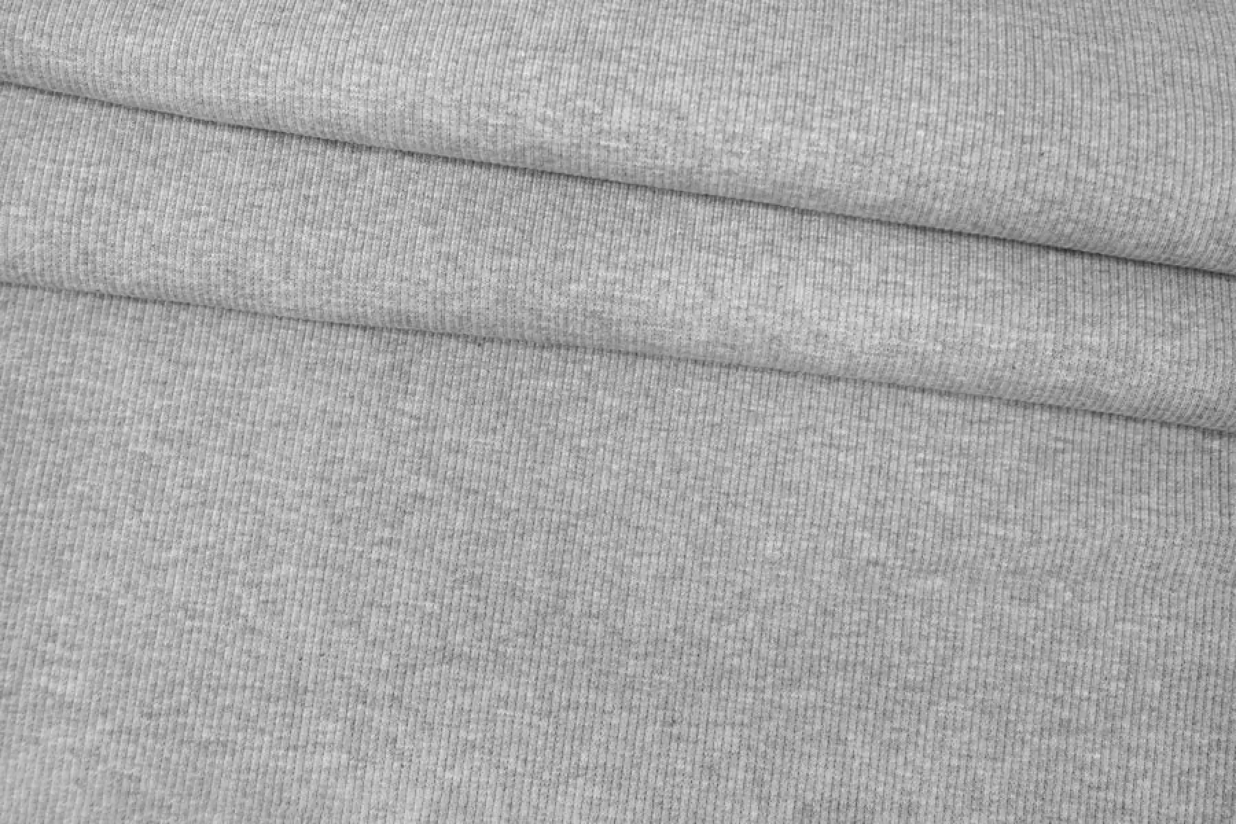 Трикотаж, вязка кашкорсе, серого цвета, от известного модного дома DIOR. Эластичный, пластичный, чувствуется плетение на ощупь, не просвечивает. Достаточно плотный. Хорошо тянется. Подойдет для пошива майки или топа, манжет, подвязов.
