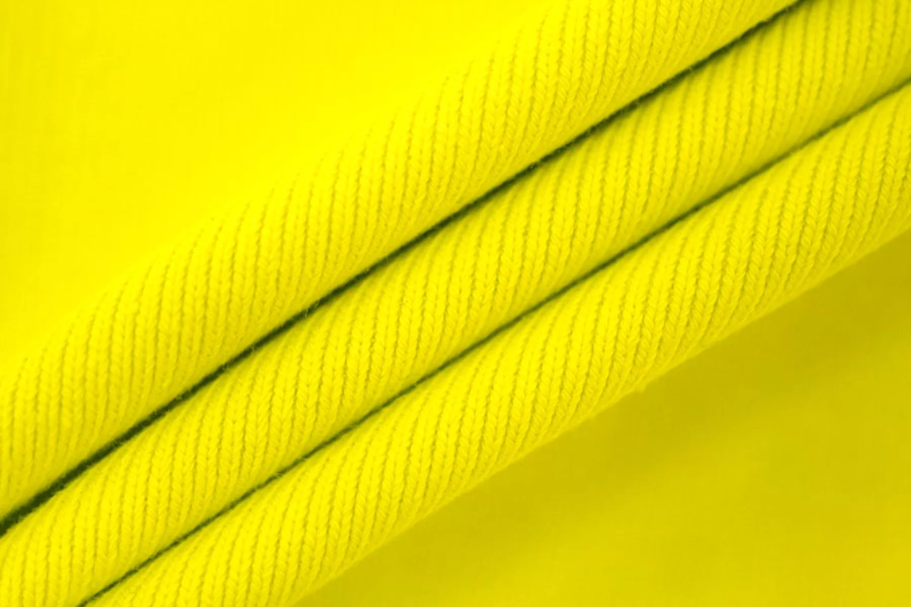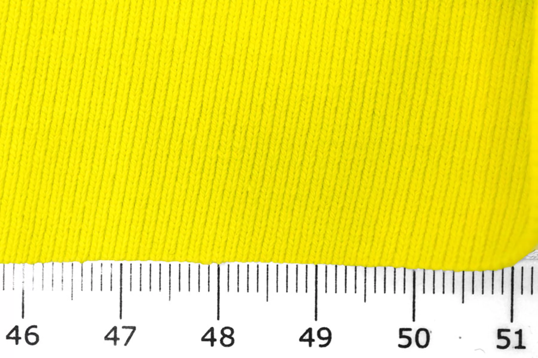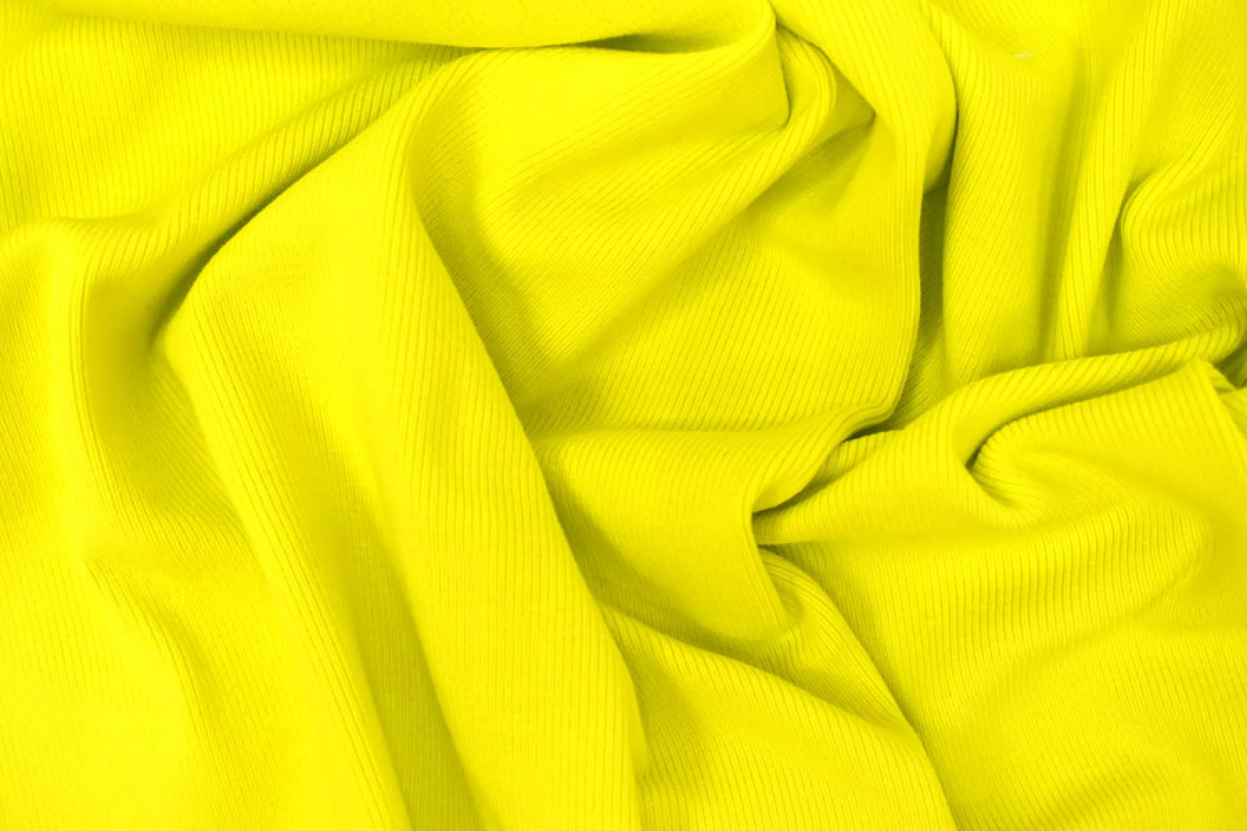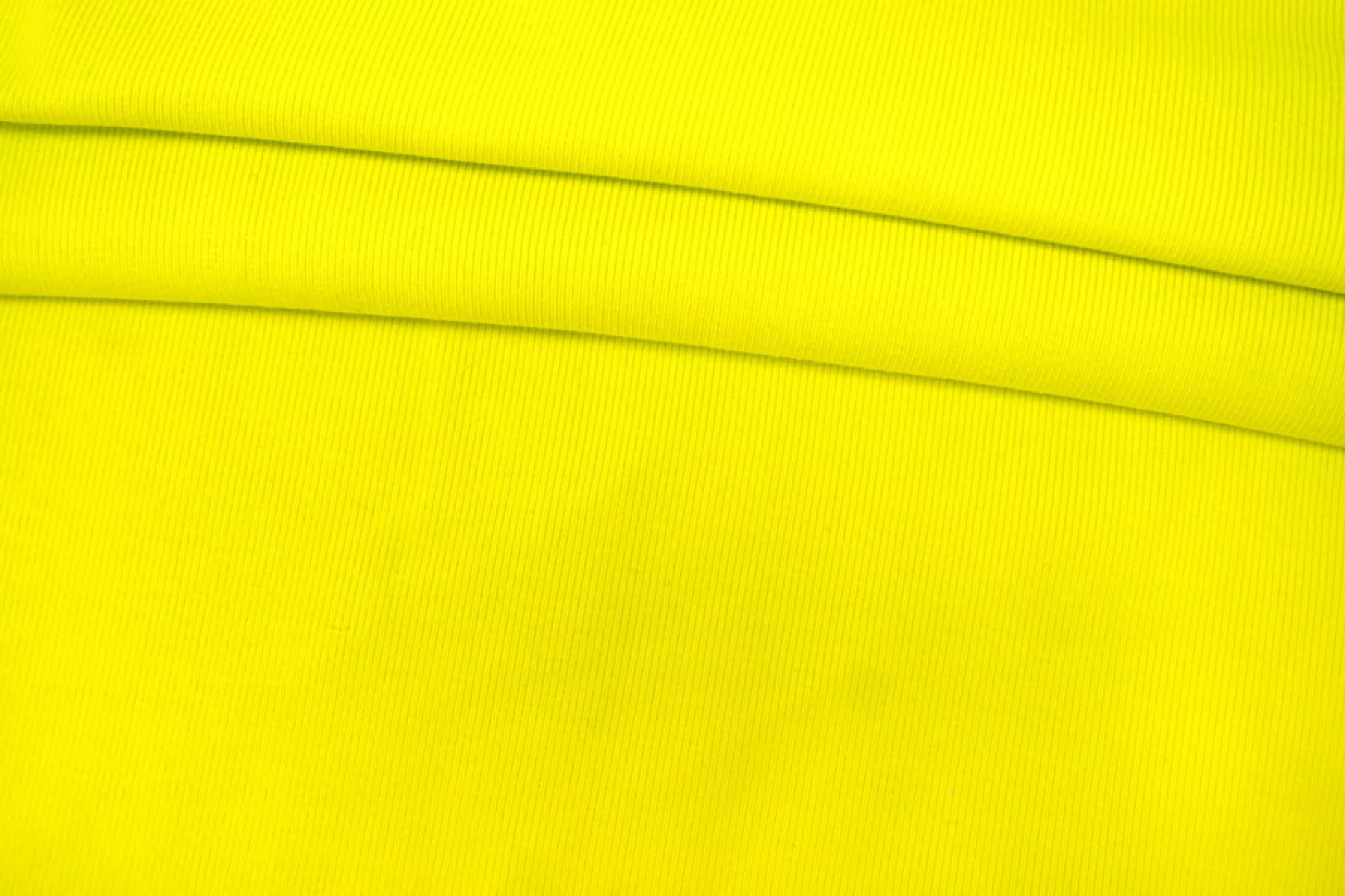 Трикотаж, вязка рибана, лаймового оттенка, от бренда FENDI. Эластичный, пластичный, не просвечивает. Тянется в обе стороны. С легким лоском. Плотный. Хорошо тянется и чувствуется плетение. Подойдет для самостоятельных изделий, манжет, подвязов.