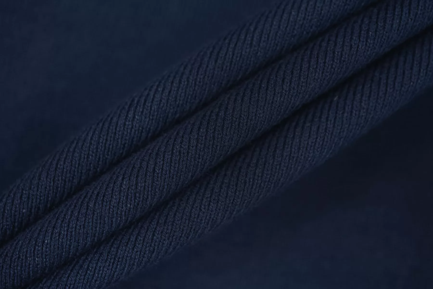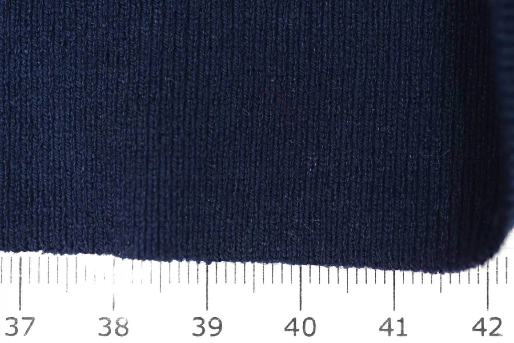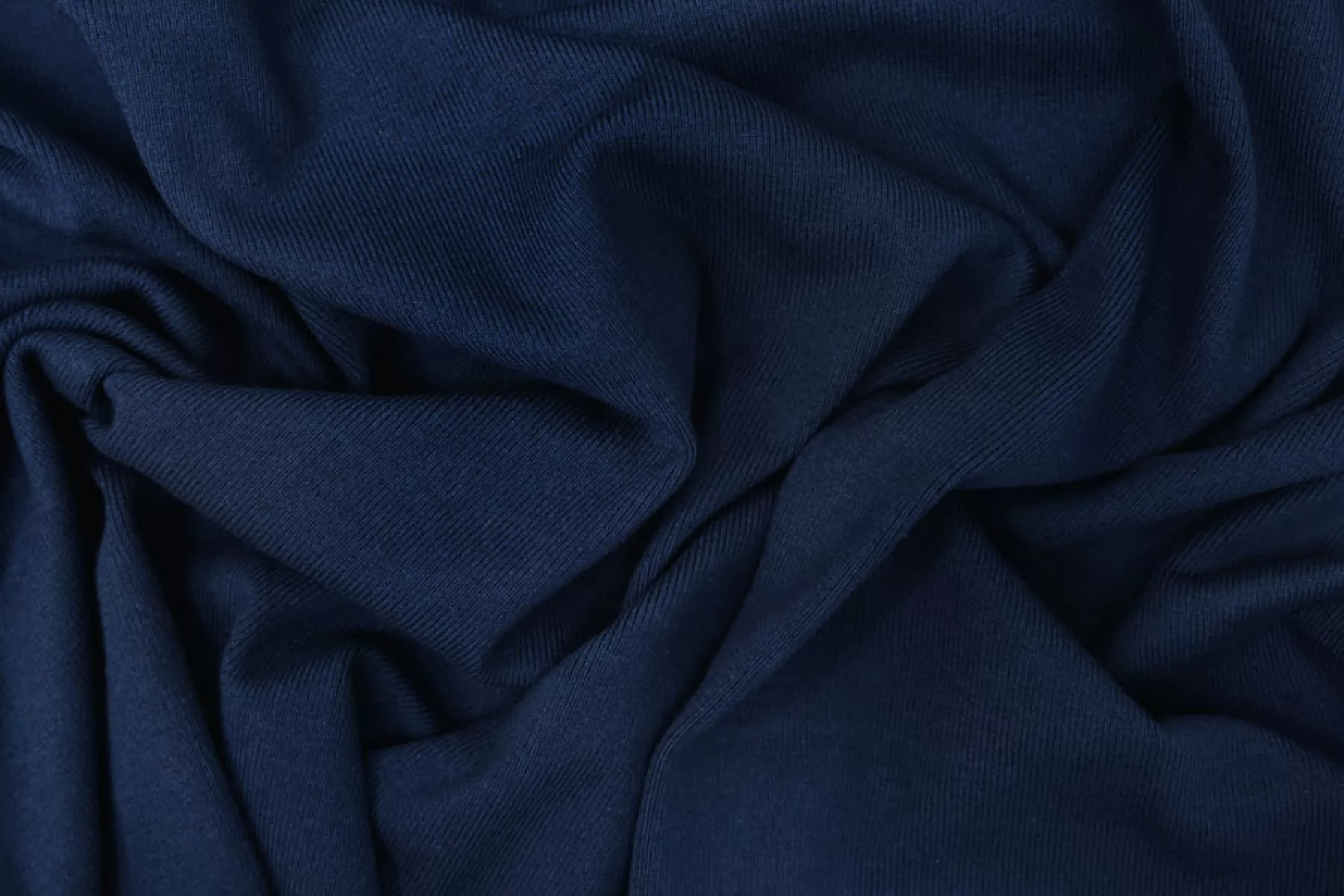 Трикотаж, вязка рибана, темно-синего цвета, от бренда FENDI. Эластичный, пластичный, не просвечивает. Плотный. Хорошо тянется в обе стороны и чувствуется плетение. Подойдет для пошива майки или топа, манжет, подвязов.