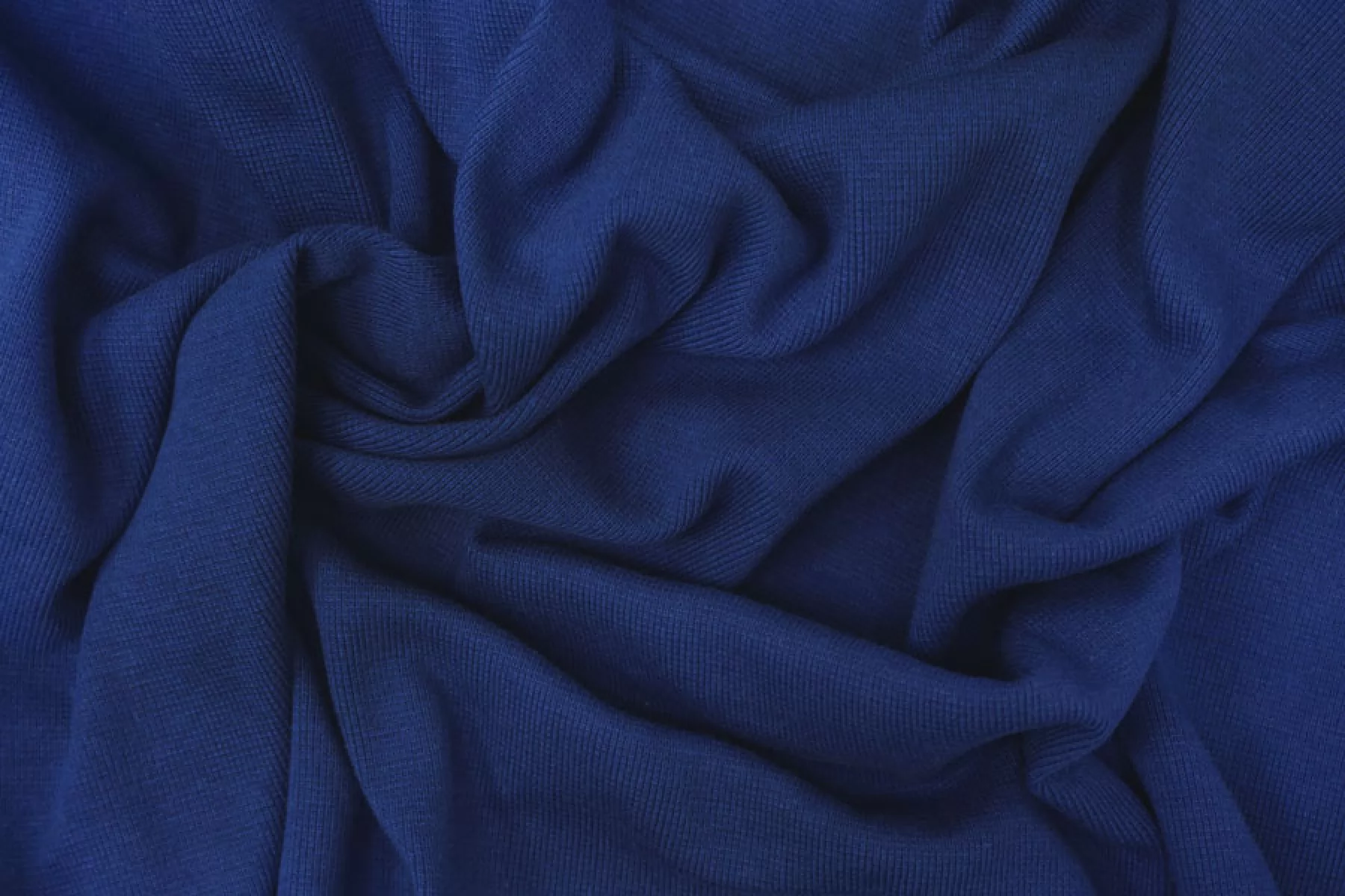 Трикотаж, вязка кашкорсе, синего цвета, от бренда FENDI. Эластичный, пластичный, плотный, но немного просвечивает силуэт, если смотреть прямо на просвет, с приятным лоском. Подойдет для пошива майки или топа, манжет, подвязов.