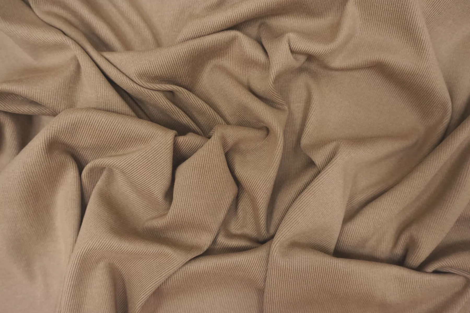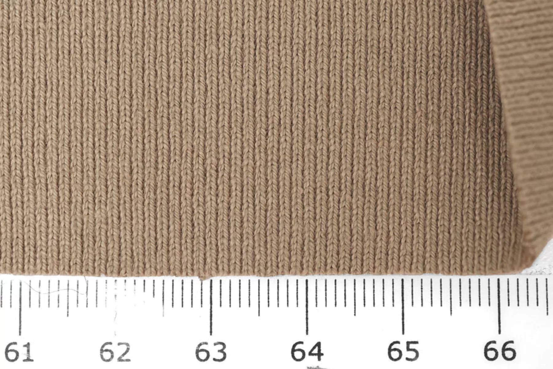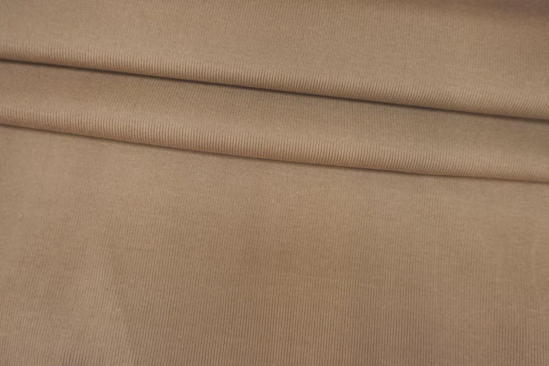 Трикотаж, вязка рибана, бежево-серого оттенка, от бренда FENDI. Эластичный, пластичный, не просвечивает. С легким лоском. Плотный. Хорошо тянется в обе стороны и чувствуется плетение. Подойдет для пошива майки или топа, манжет, подвязов.