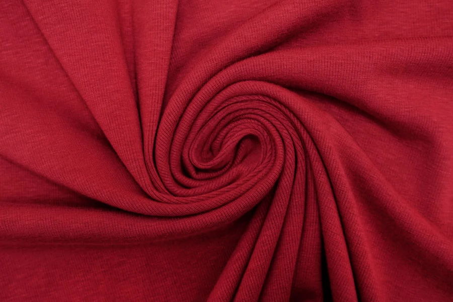 Хлопковый трикотаж кашкорсе в очень красивом красном оттенке. Материал очень приятный и мягкий. Немного просвечивает при растяжении. Отлично тянется. Подойдет для пошива майки или топа, манжет и подвязов.