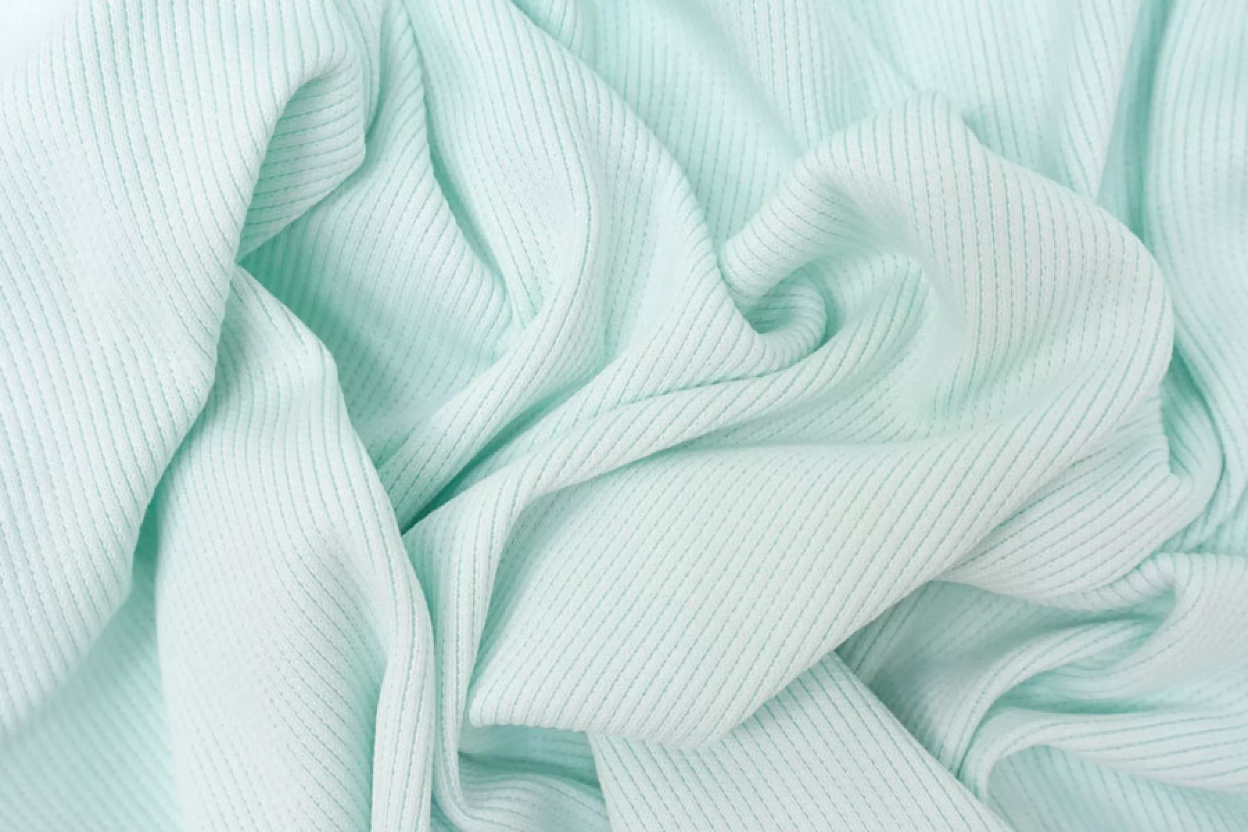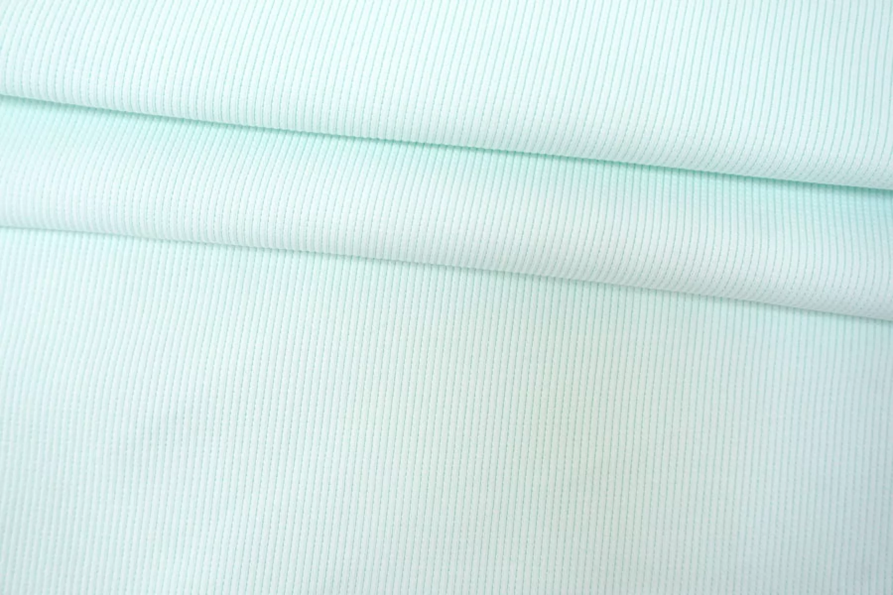 Трикотаж, вязка кашкорсе, оттенка холодной мяты, от бренда MISSONI. Эластичный, пластичный, не просвечивает. Хорошо тянется. Подойдет для пошива майки или топа, манжет, подвязов.