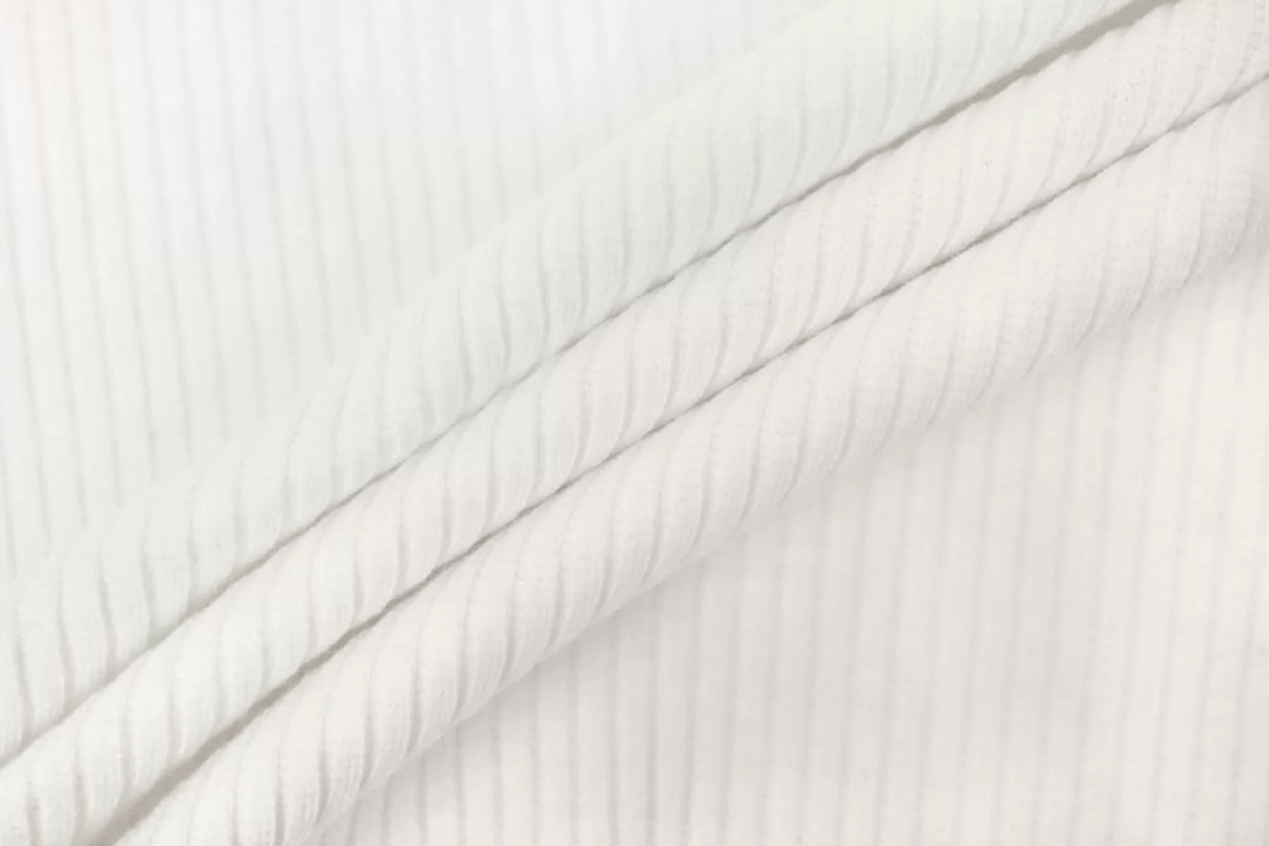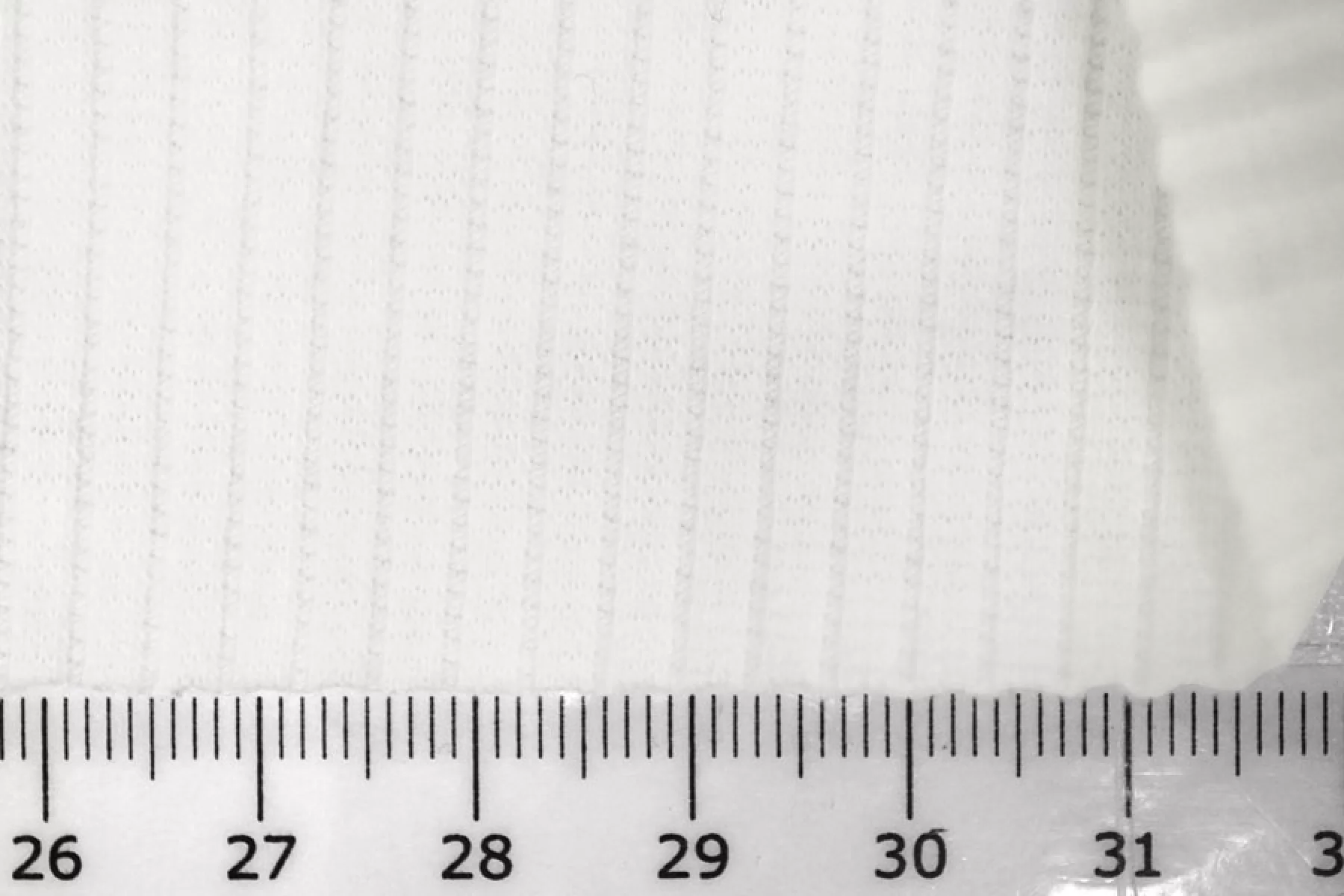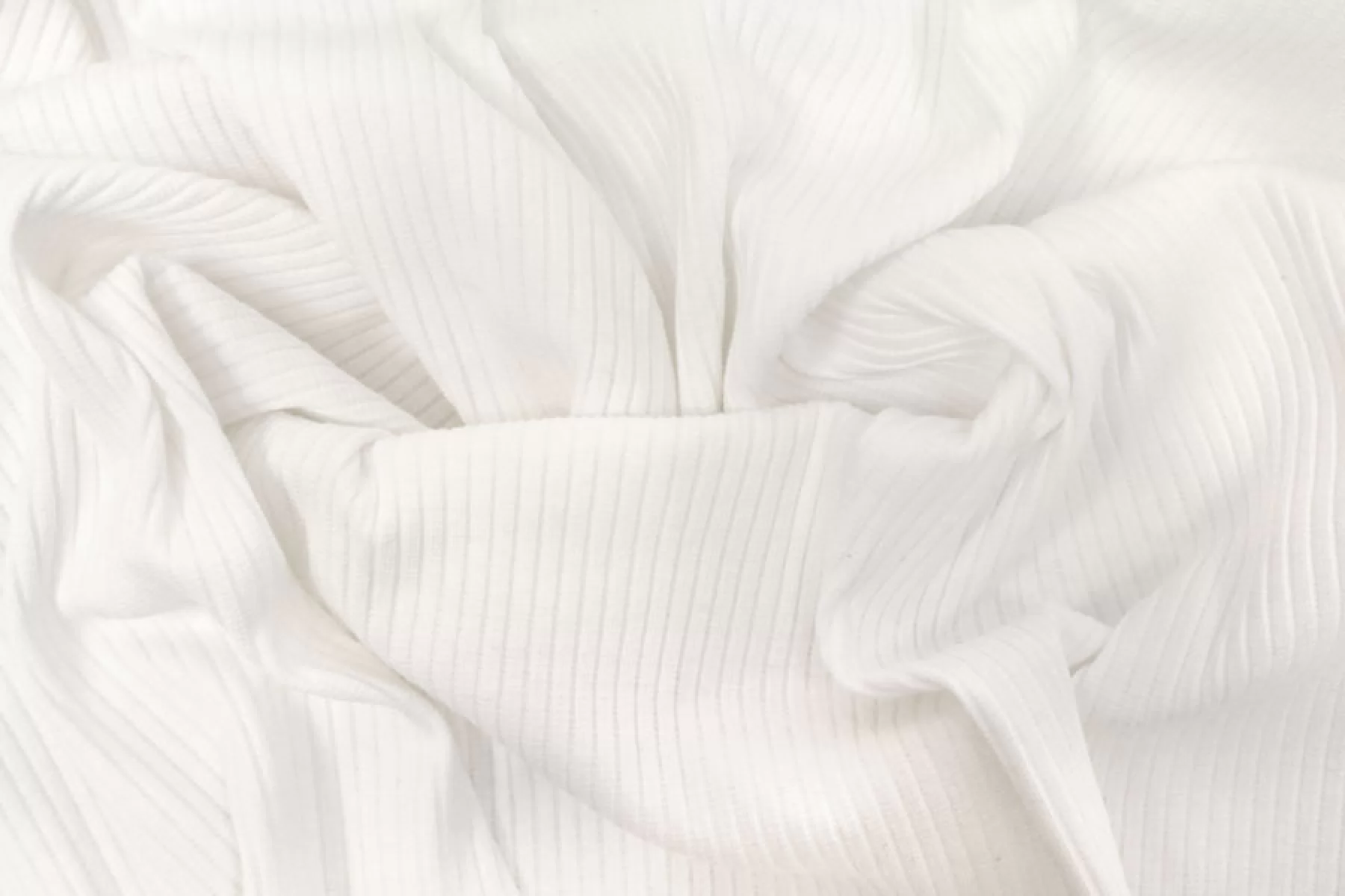 Трикотаж лапша белого цвета, от бренда MONNALISA. Эластичный, пластичный, немного просвечивает при растяжении. Хорошо тянется в обе стороны и чувствуется плетение. Подойдет для пошива майки или топа, манжет, подвязов.