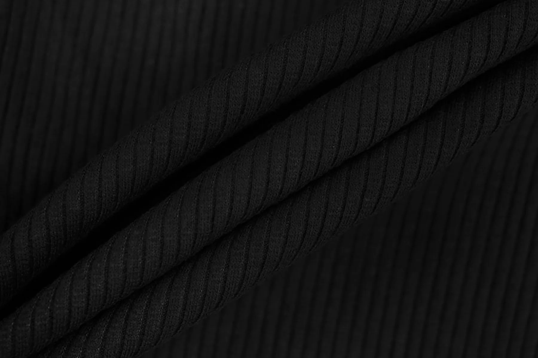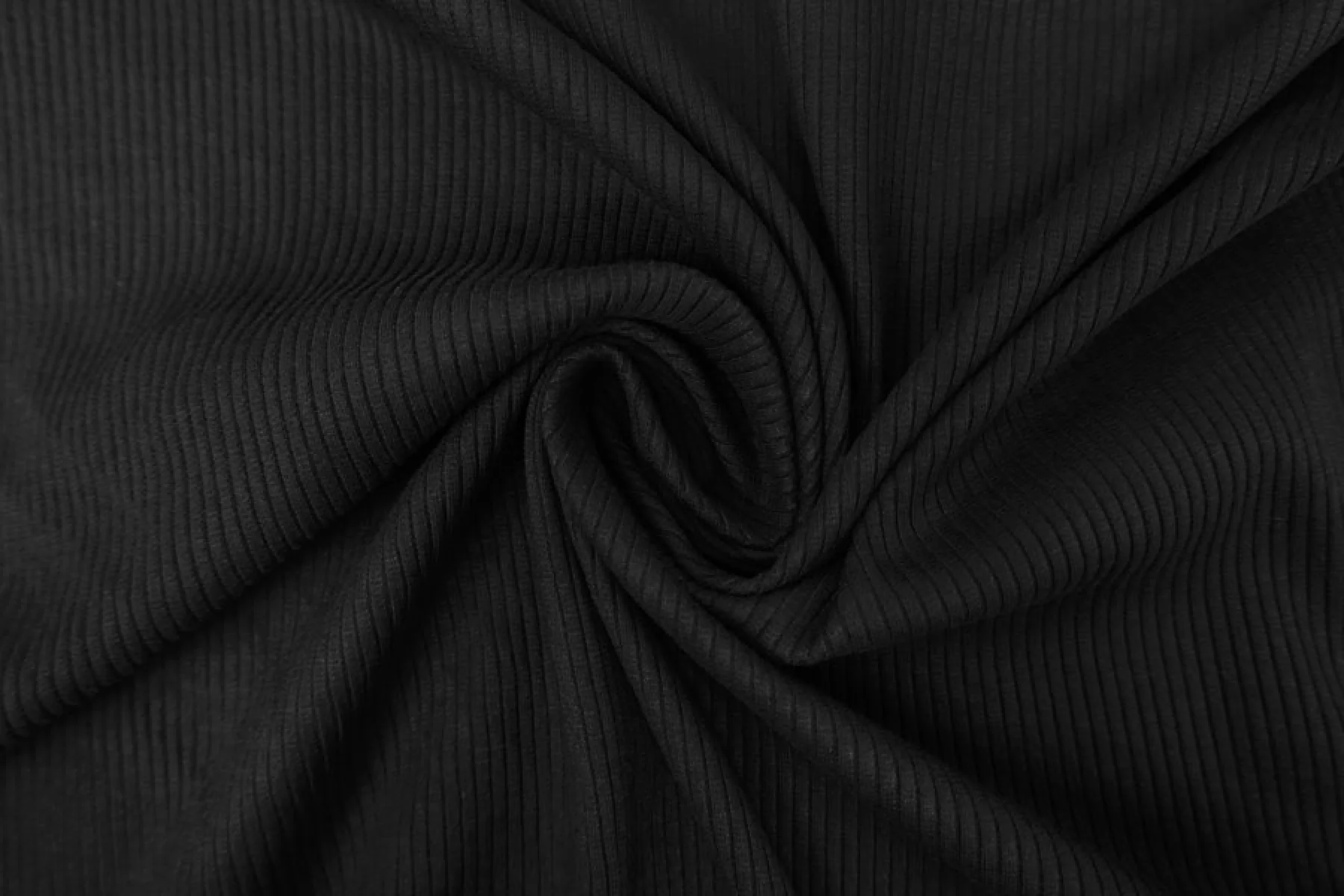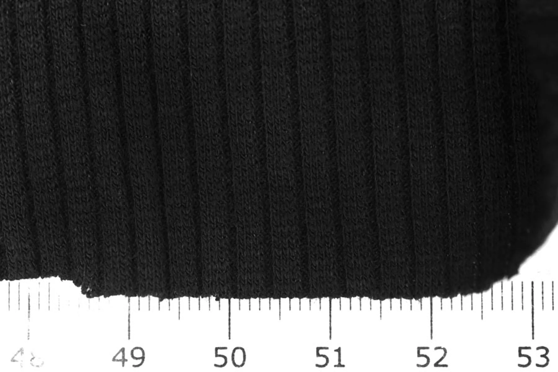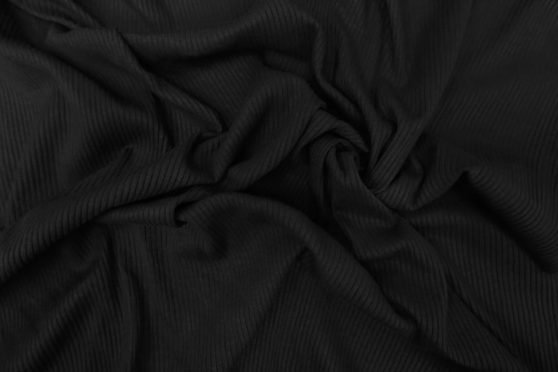 Трикотаж лапша черного цвета, от бренда MONNALISA. Эластичный, пластичный, немного просвечивает при растяжении. Очень приятный наощупь. Хорошо тянется в обе стороны и чувствуется плетение. Подойдет для пошива майки или топа, манжет, подвязов.