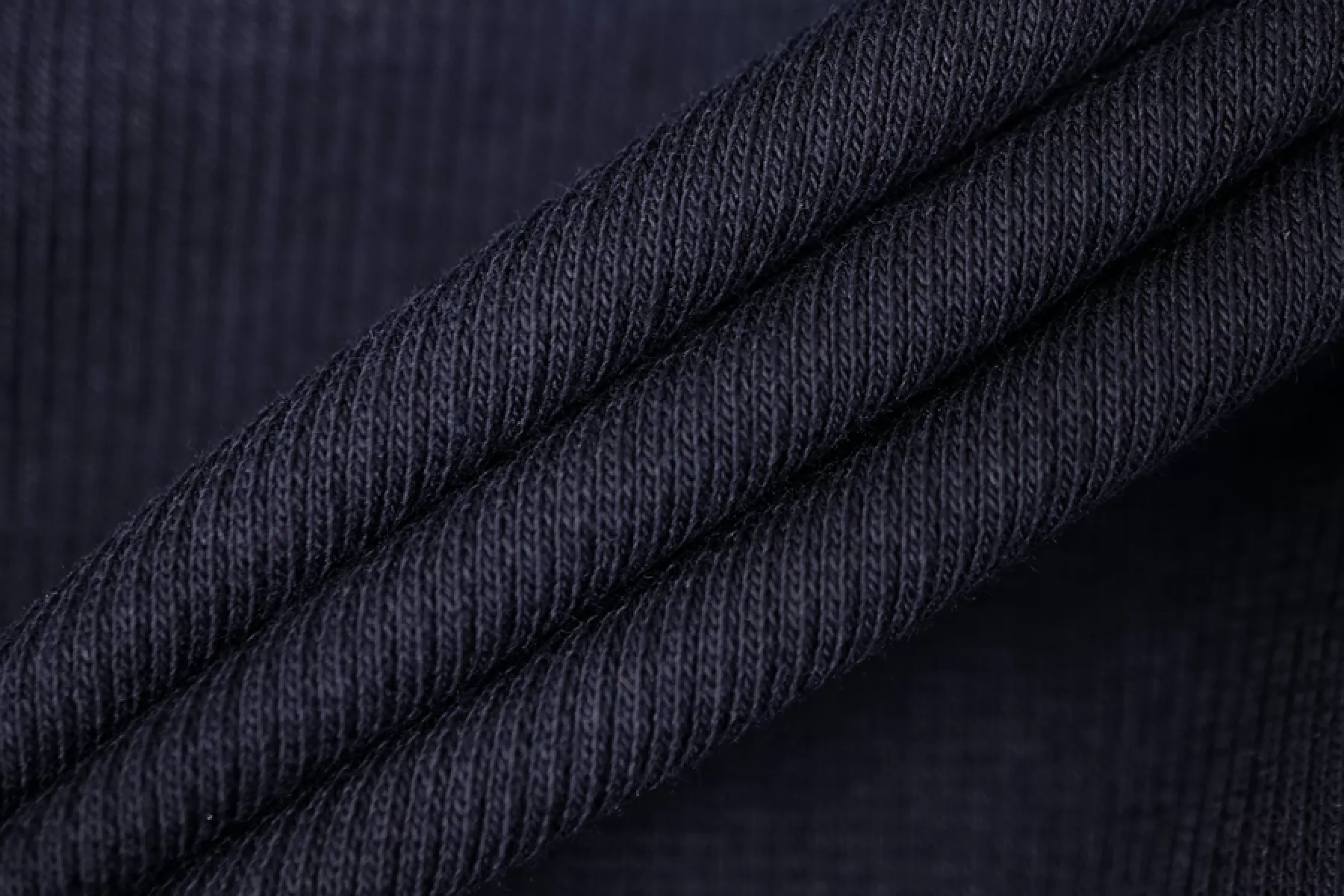 Хлопковый трикотаж кашкорсе в темно-синем цвете. Материал очень эластичный, мягкий. Не просвечивает. Отлично тянется. Подойдет для пошива майки или топа, манжет и подвязов.