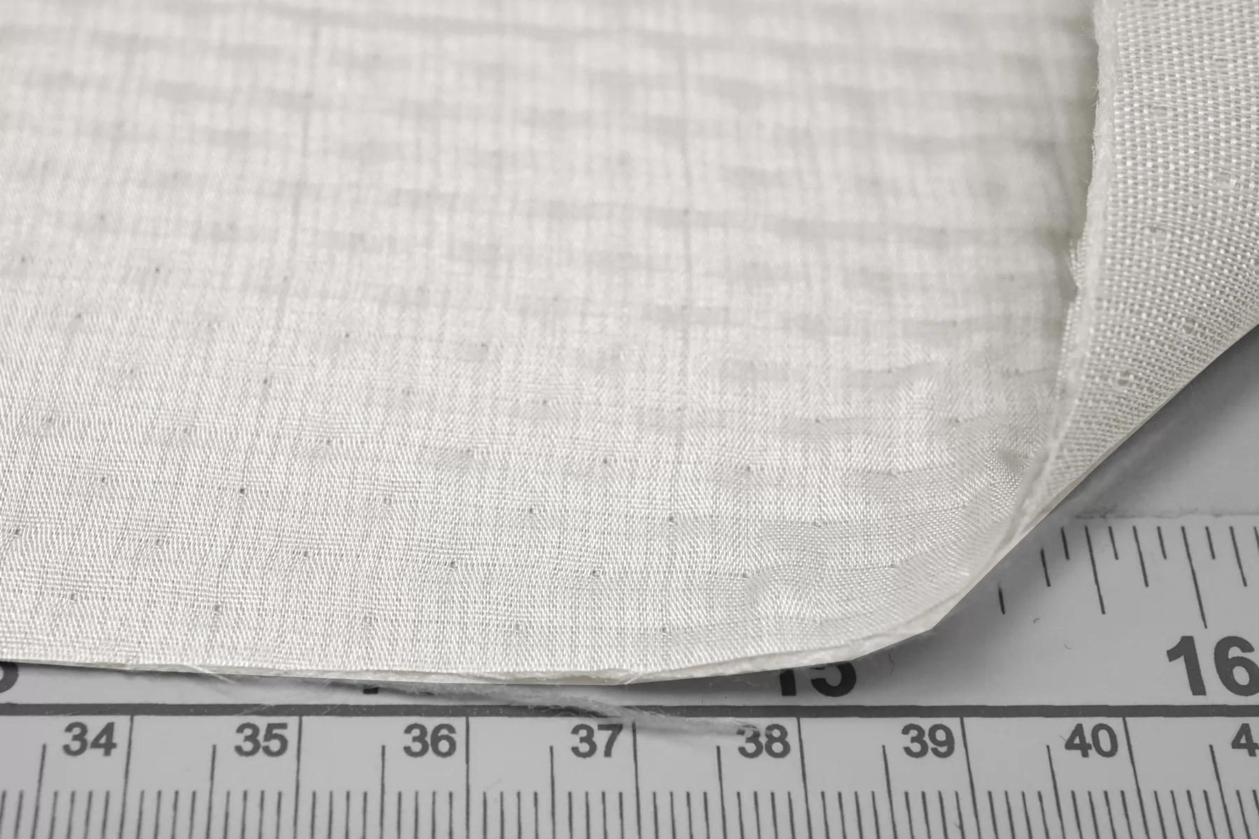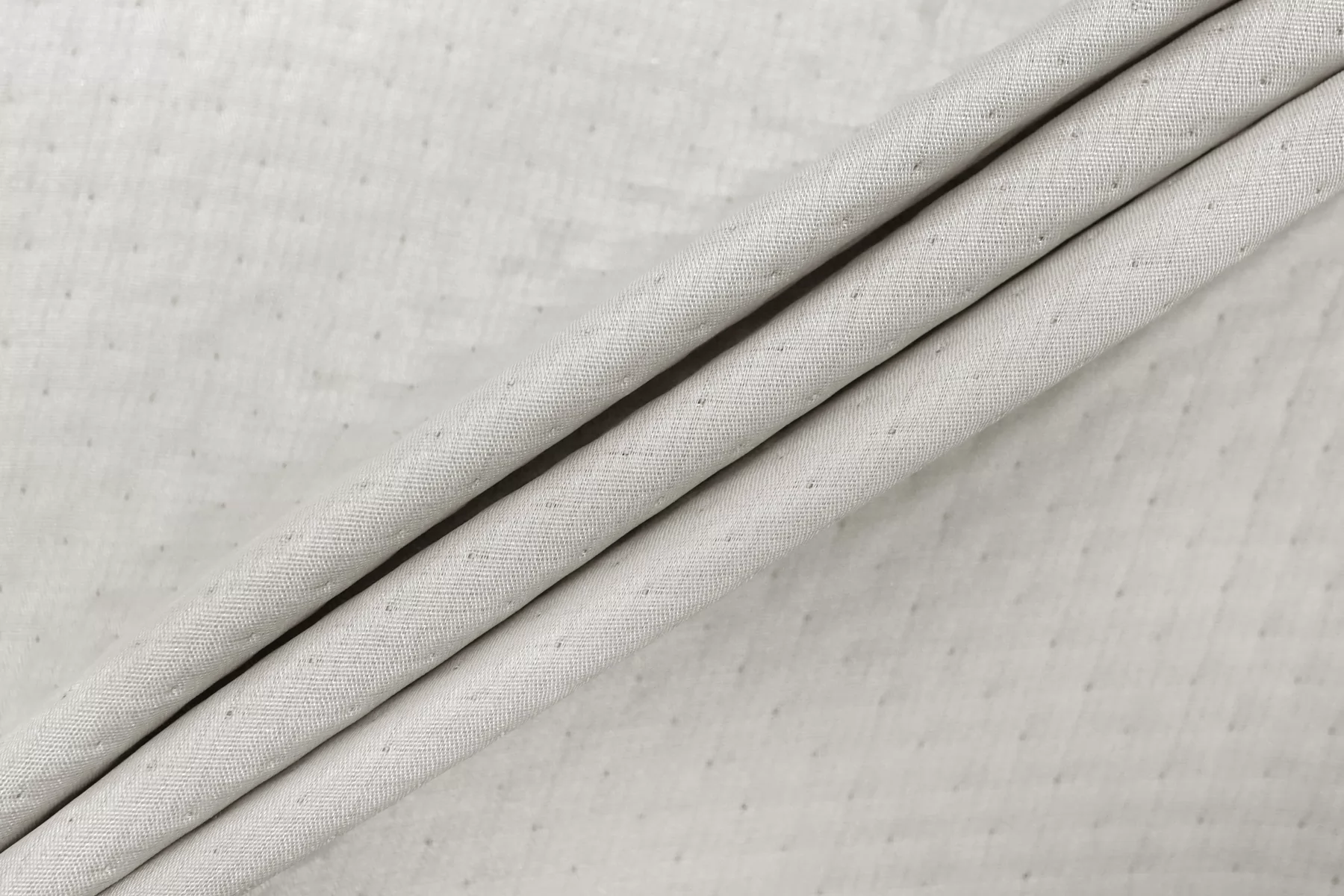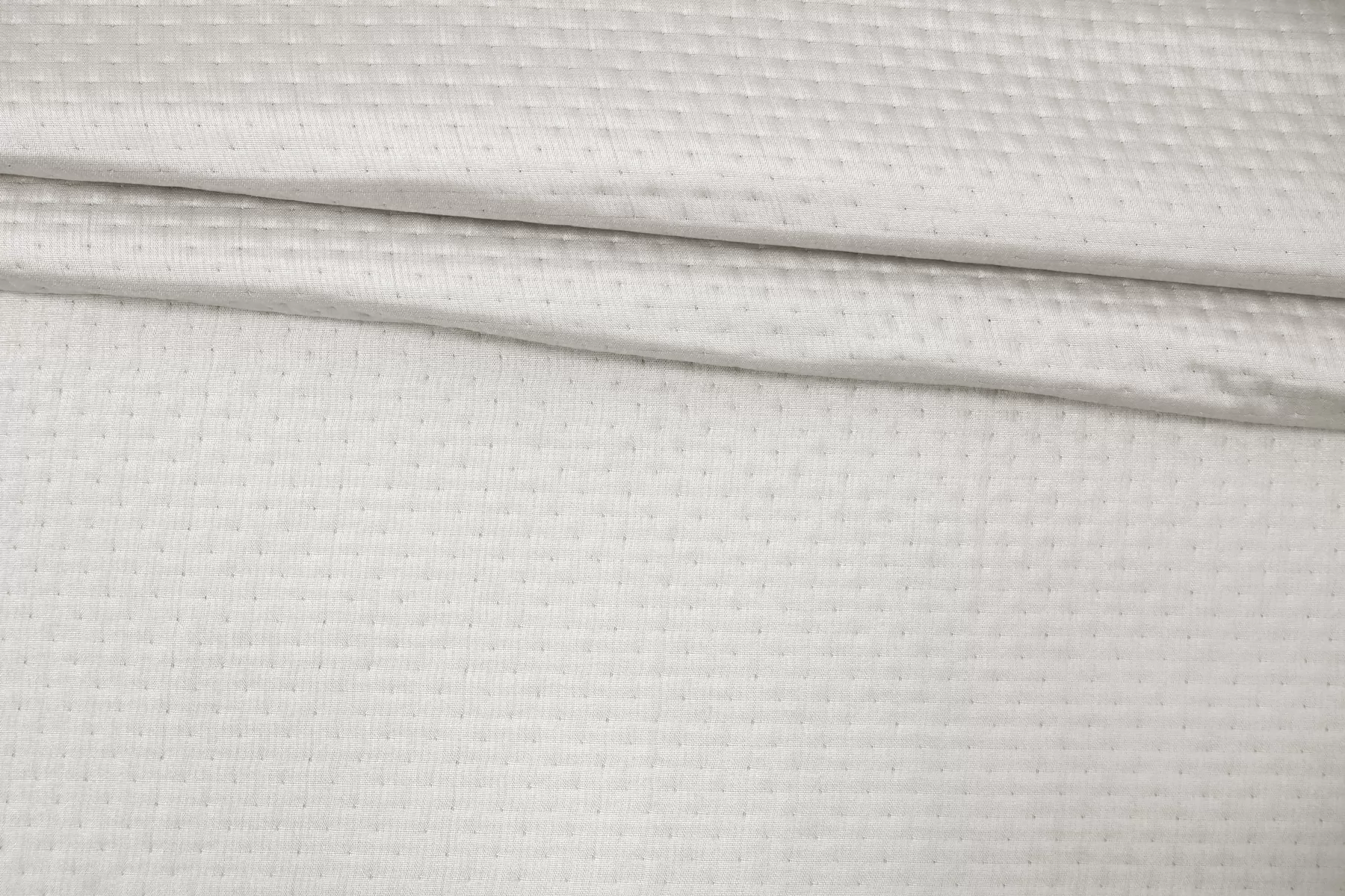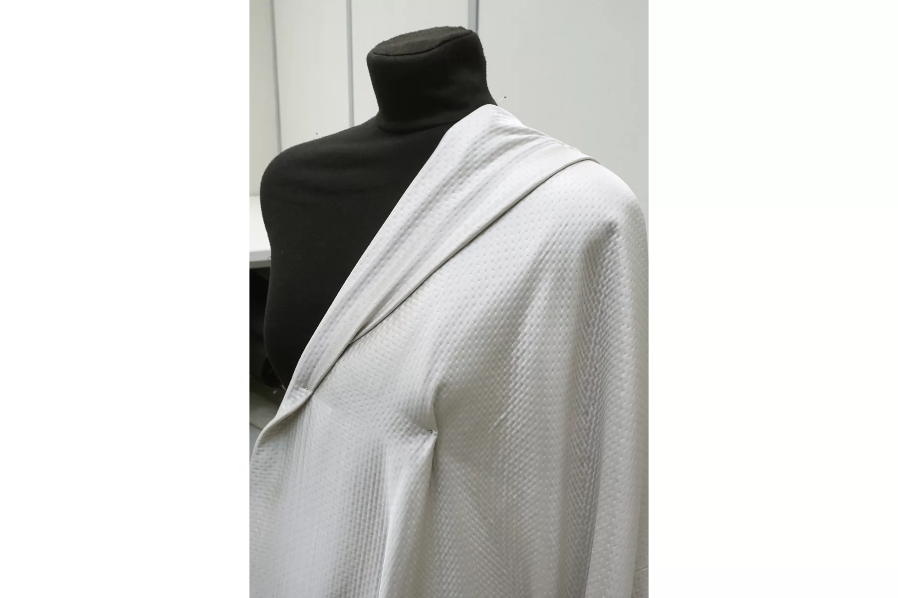 Костюмно-плательная ткань-клоке от бренда Amiri из полиамида, в светлом серо-бежевом оттенке, с лоском. Слегка просвечивает в дырочки плетения, не тянется, пластичная. Тактильно приятная, мягкая. Пластикой немного напоминает тонкий неопрен (держит объемные складки). Подойдет для пошива интересной юбки, лёгкого бомбера, нестандартного костюма.