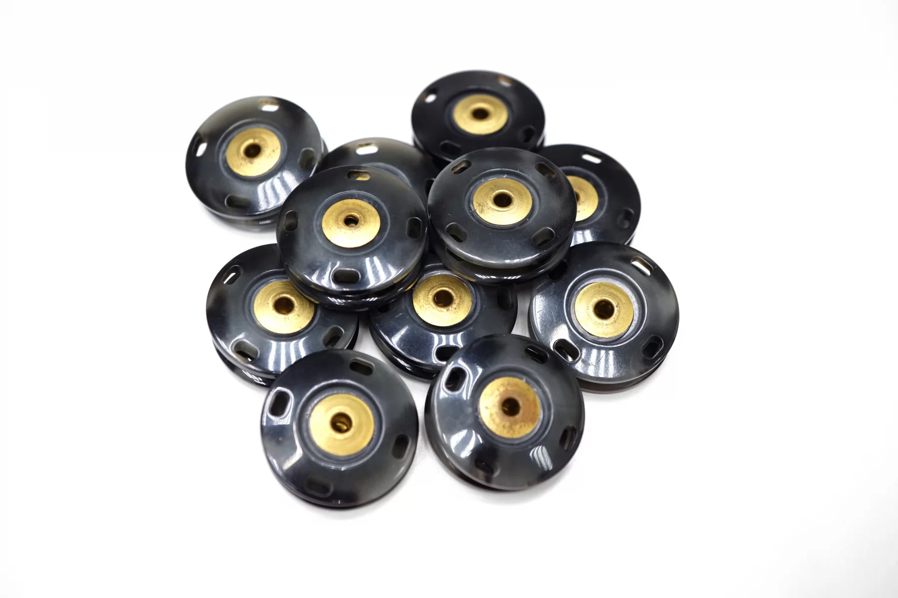 Кнопка пластиковая серо-коричневого цвета , под рог , с золотистой сердцевиной размер 25 мм.