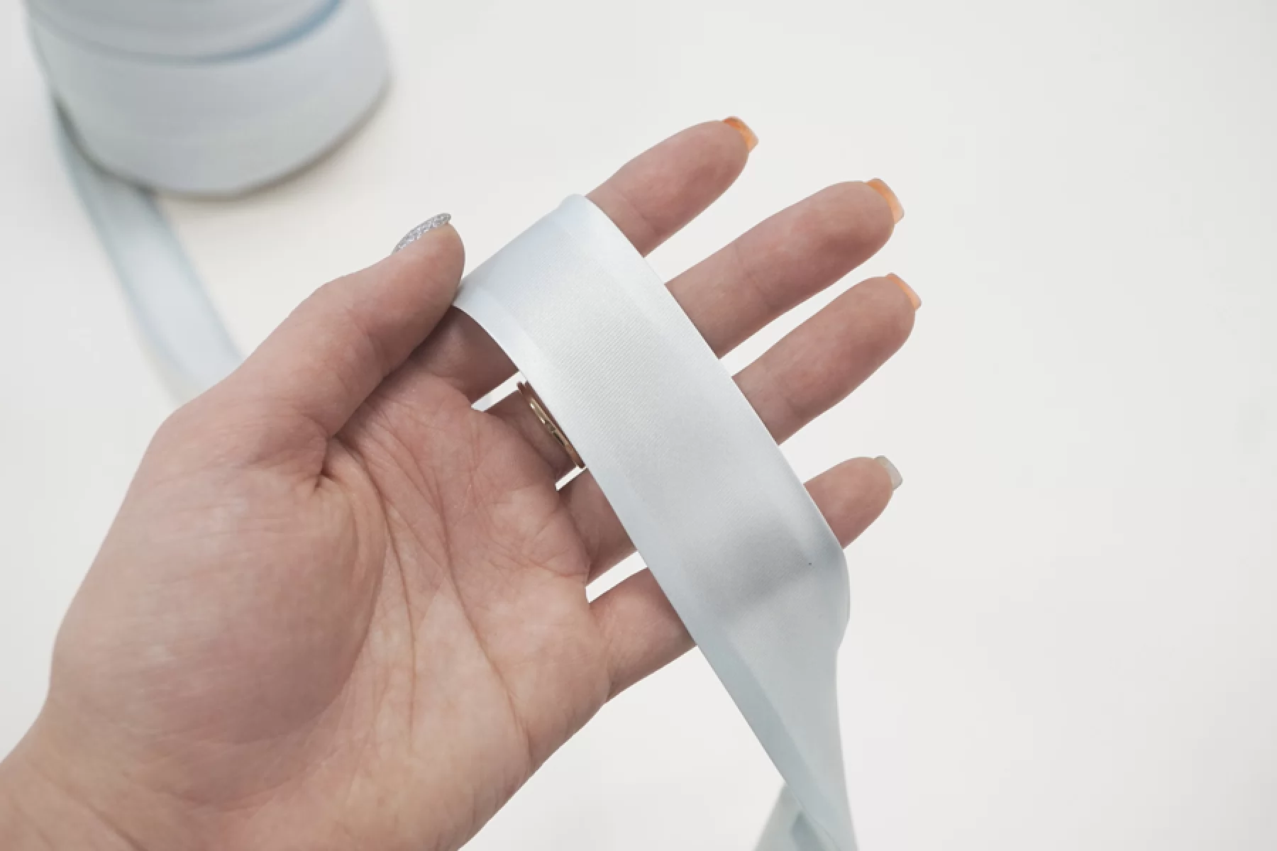 Цена указана за метр. Ацетатная бейка, выкроенная по косой, с заранее подогнутыми припусками. Цвет - светло-голубой, ширина - 30 мм. Пластичная, легко укладывается на неровные срезы без складок и смещения, образуя ровный, красивый борт. Подойдёт для обработки срезов бортов, для горловины, при шитье рукава одежды. Также возможно применение при изготовлении мебели, отделки предметов интерьера, включая шторы, скрапбукинге, оформлении подарков, аппликаций.