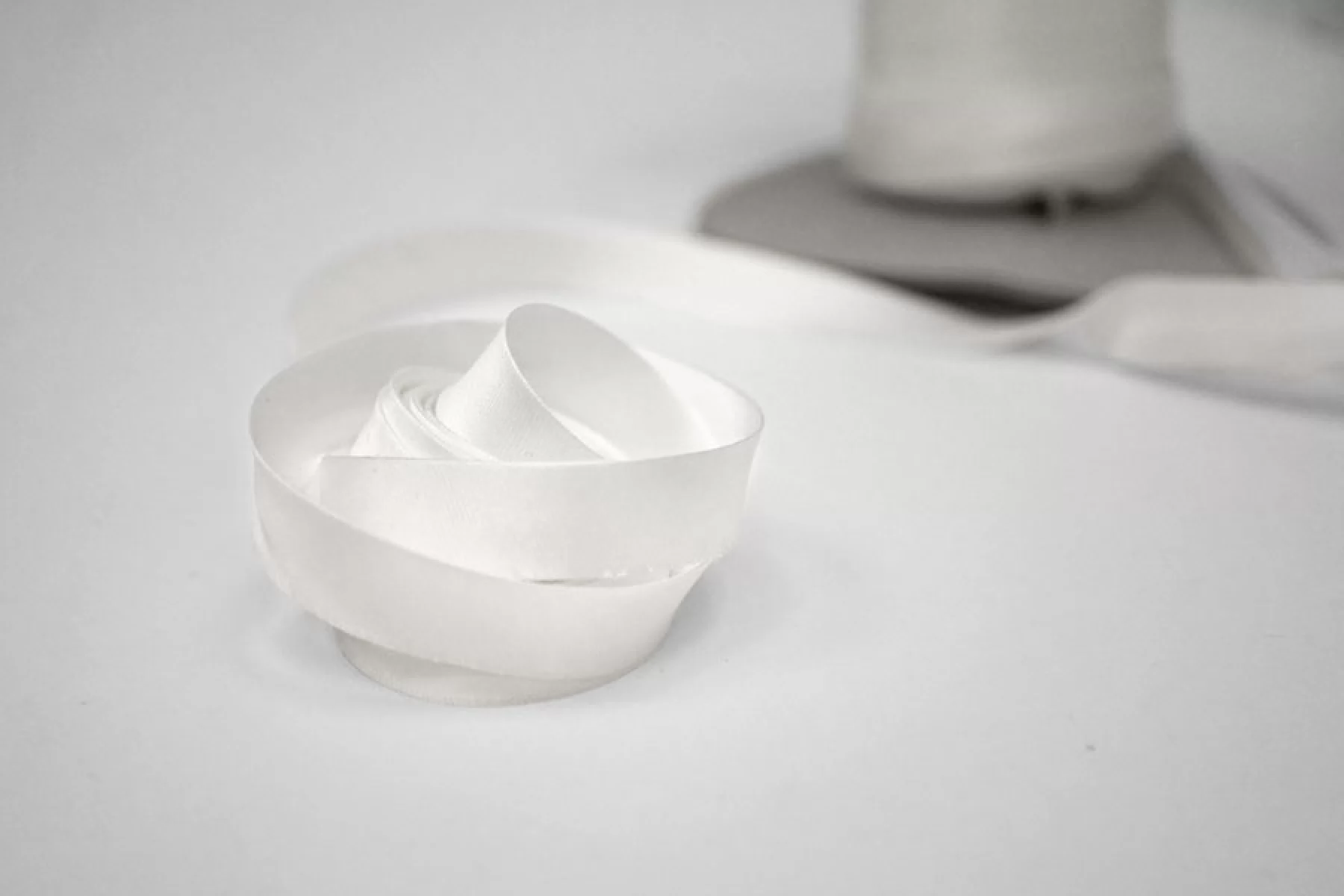 Косая бейка из ацетата 12 мм. Белого оттенка. Гладкая, плотная, пластичная.