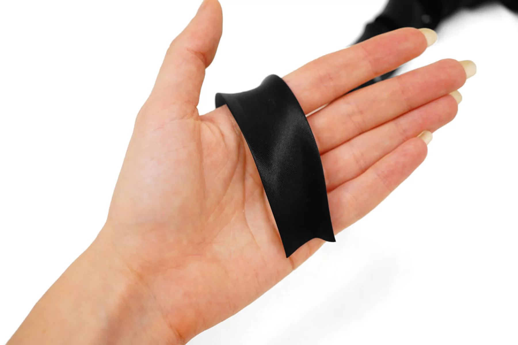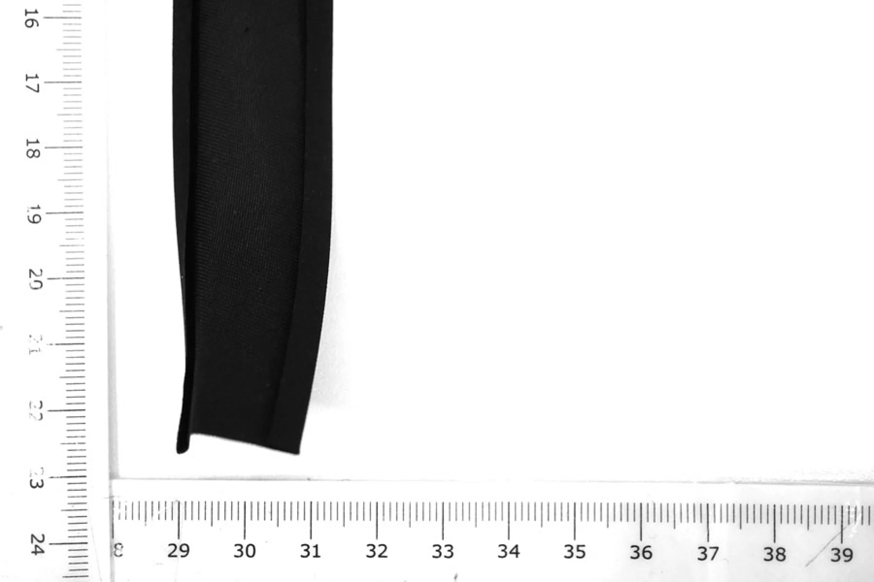 Черная косая бейка из ацетата 25 мм. Гладкая, плотная, пластичная.