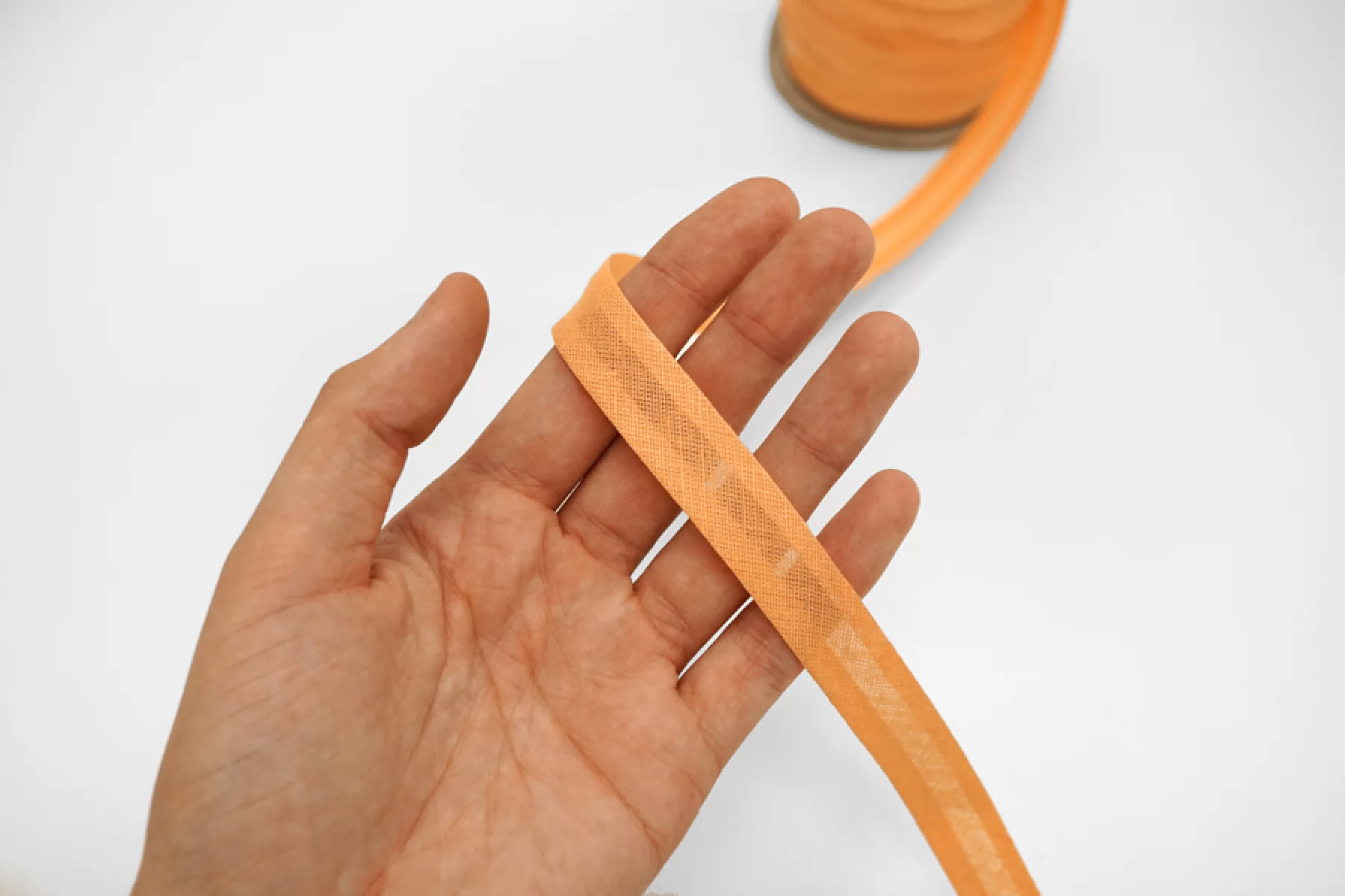 Цена указана за метр. Бейка из хлопка, выкроенная по косой, с заранее подогнутыми припусками. Цвет пастельно-оранжевый, ширина - 1,3 см. Пластичная, легко укладывается на неровные срезы без складок и смещения, образуя ровный, красивый борт. Подойдёт для обработки срезов бортов, для горловины, при шитье рукава одежды. Также возможно применение при изготовлении мебели, отделки предметов интерьера, включая шторы, скрапбукинге, оформлении подарков, аппликаций.