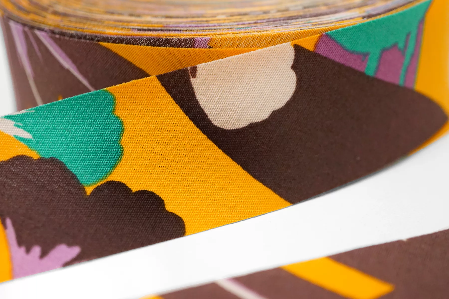 Косая бейка из хлопка, цвета принта: коричневый, сиреневый, жёлто-оранжевый. Ширина - 3 см, выкроенная по косой, БЕЗ подгибок.
