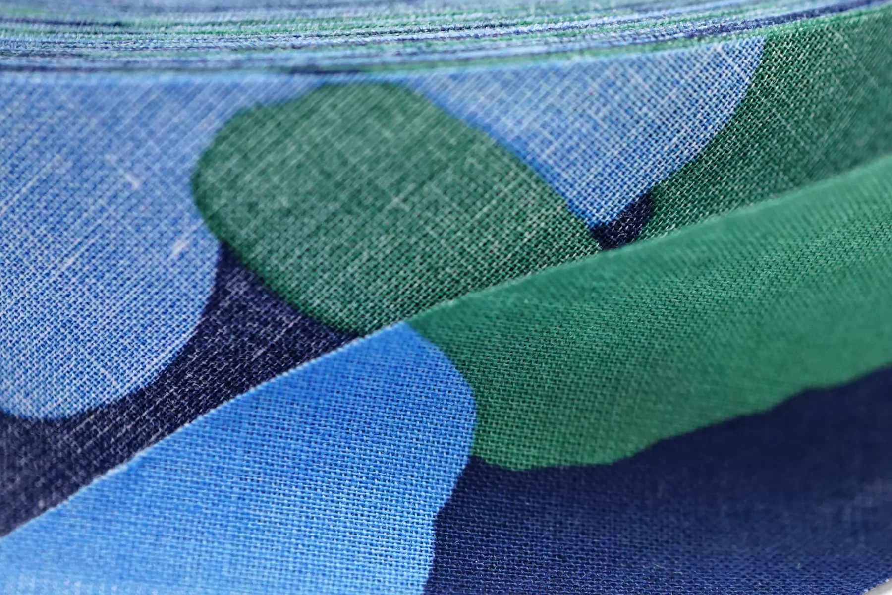 Косая бейка из хлопка, цвета принта: синий, сине-голубой, зелёный. Ширина - 3 см, выкроенная по косой, БЕЗ подгибок.