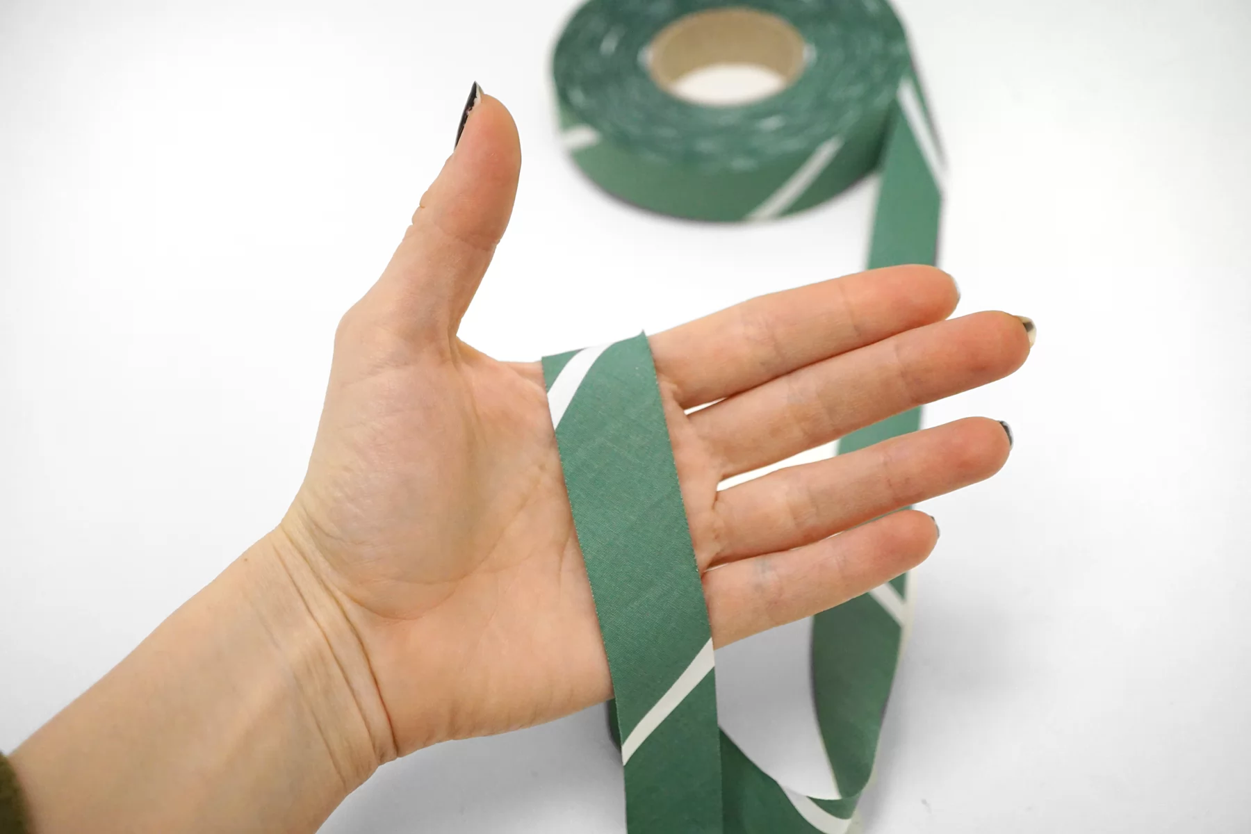 Косая бейка из хлопка, принт в оттенке зелёного шалфея, в полоску. Ширина - 2,5 см, выкроенная по косой, БЕЗ подгибок.