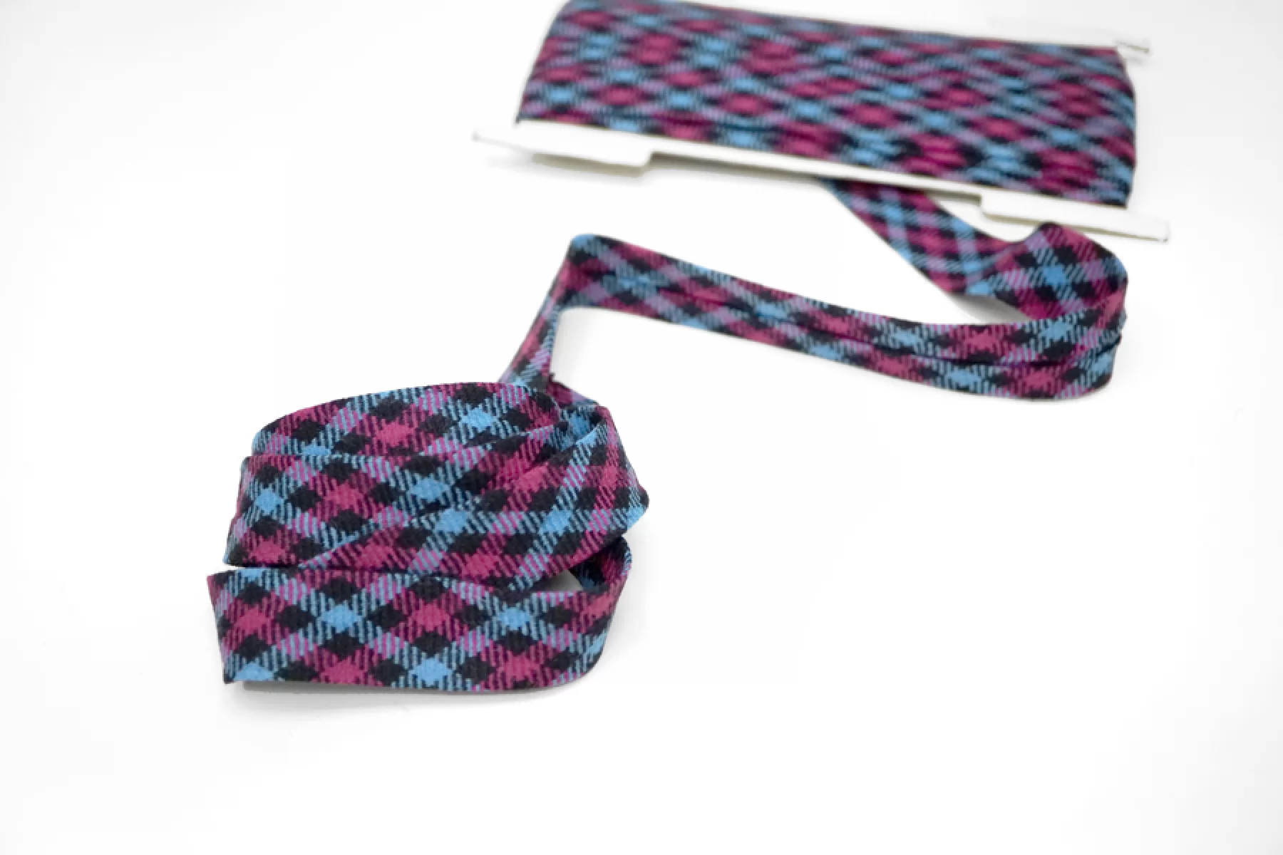 Цена указана за метр. Косая бейка из шерсти, в переплетения нитей фуксии, голубых и черных оттенков , ширина - 3 см, выкроенная по косой, с заранее подогнутыми припусками. Тактильно приятная, чувствуется, что шерсть, мягкая, не колется. Пластичная, легко укладывается на неровные срезы без складок и смещения, образуя ровный, красивый борт. Подойдёт для обработки срезов бортов, для горловины, при шитье рукава одежды. Также возможно применение при изготовлении мебели, отделки предметов интерьера, включая шторы, декорировании, оформлении подарков, аппликаций.