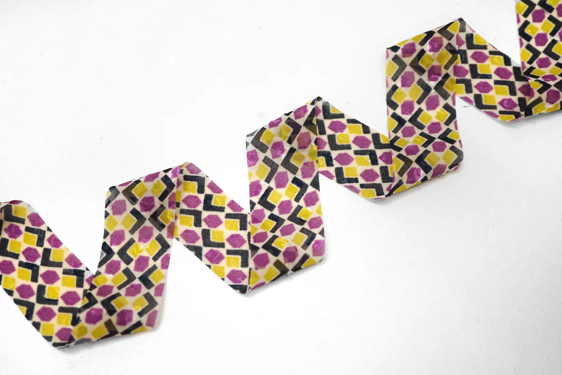 Косая бейка из синтетического шифона, цвета принта: фуксия, салатовый, чёрный, молочный. Есть фактурная выработка-филькупе. Ширина - 3 см, выкроенная по косой, БЕЗ подгибок.