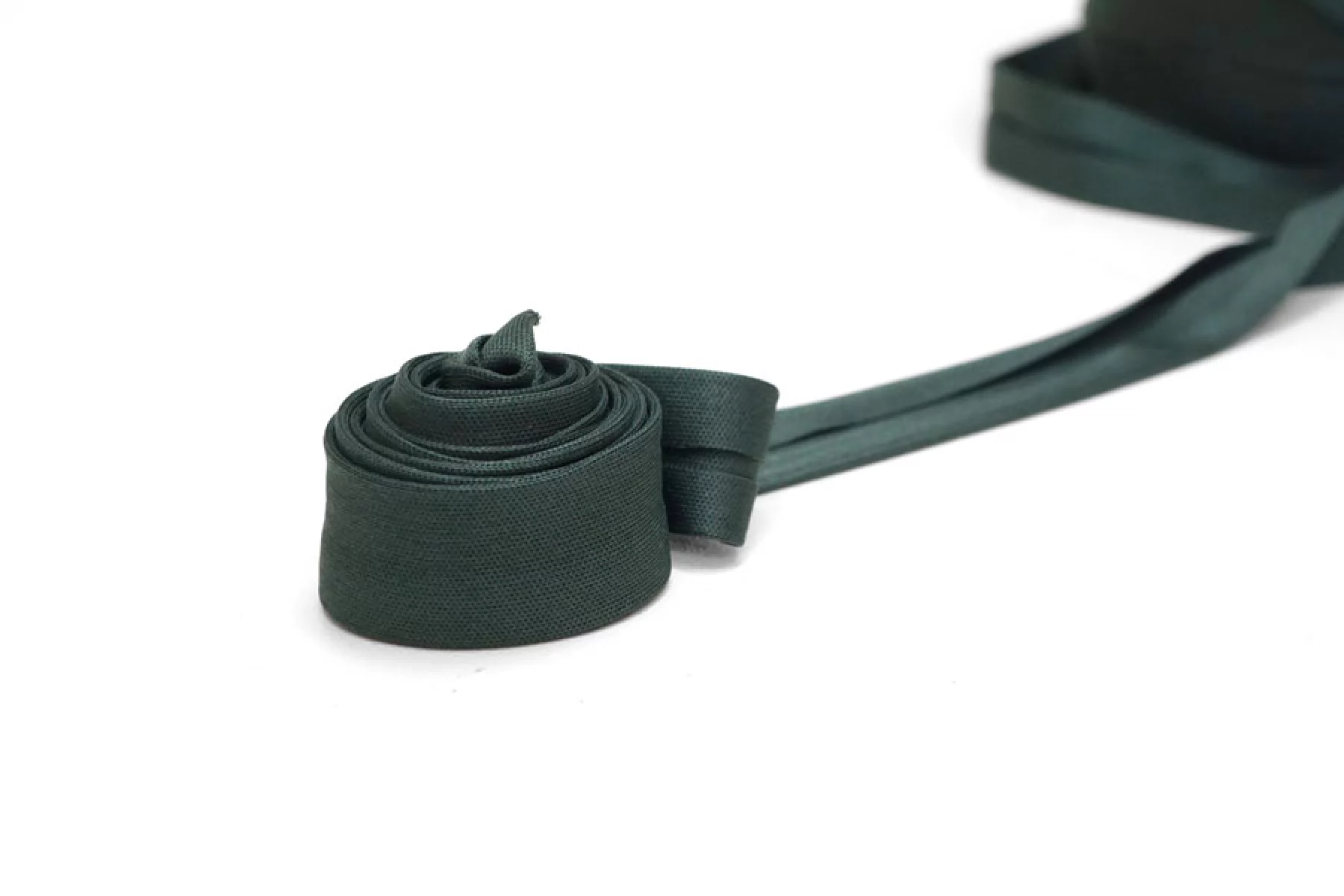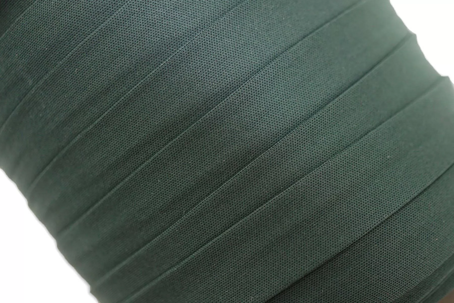Зеленая трикотажная косая бейка 15 мм , пластичная. Отлично подойдет для декорирования одежды, аксессуаров .
