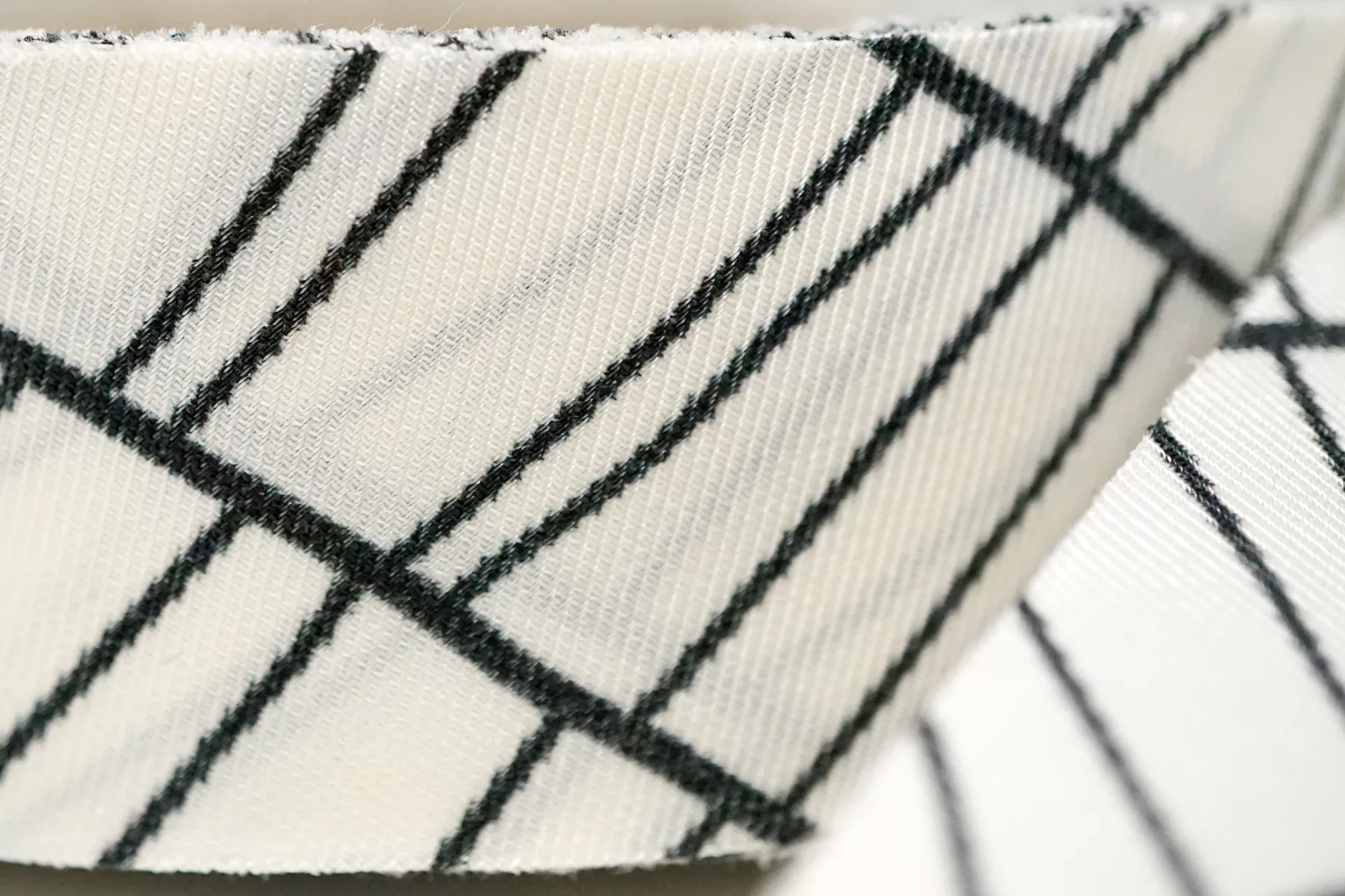 Косая бейка из полиэстера, чёрно-белый принт. Плетение твиловое. Ширина - 3 см, выкроенная по косой, БЕЗ подгибок.