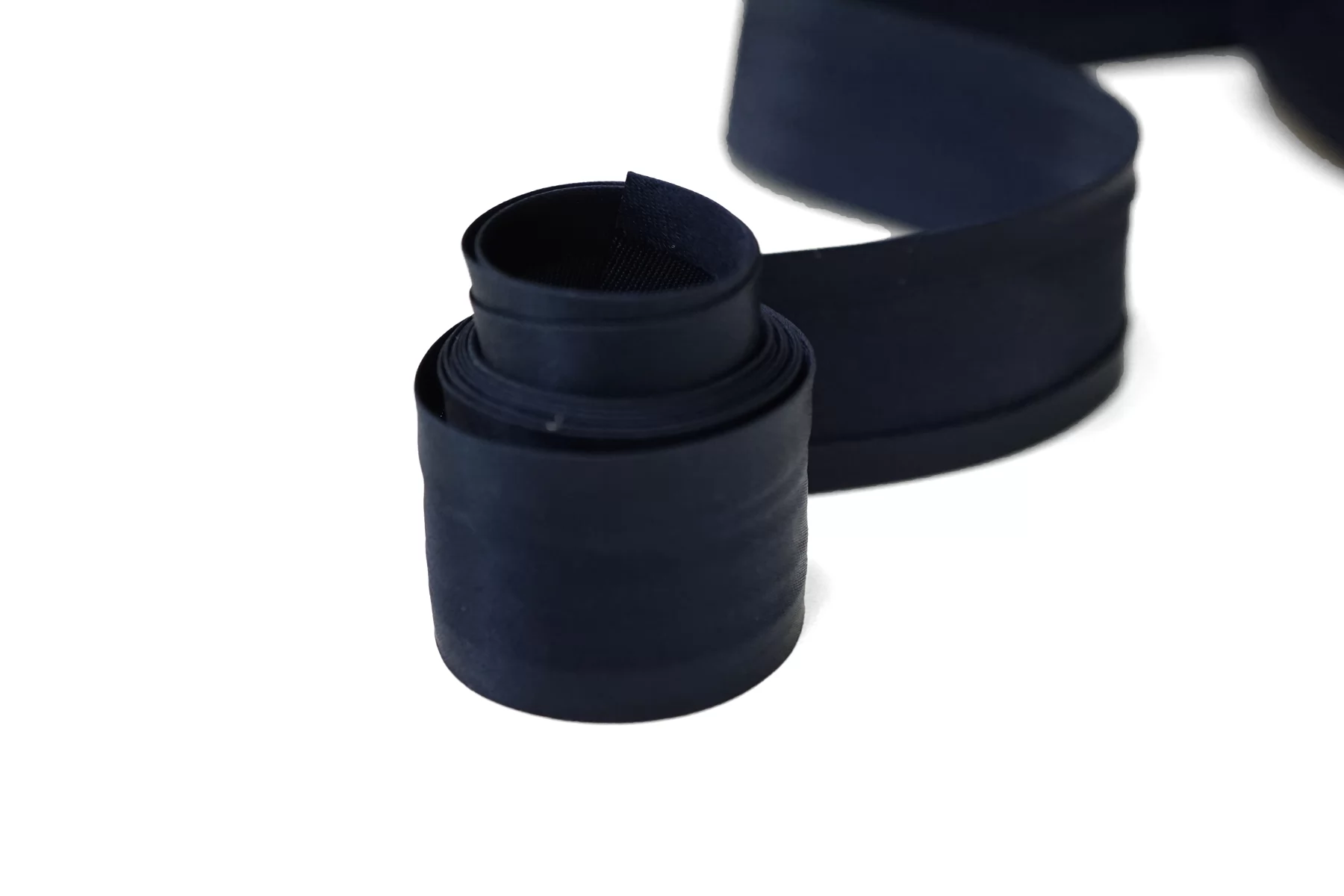 Бейка выкроенная по косой, с заранее подогнутыми припусками. Цвет тёмно-синий, ширина - 2,5 см. Пластичная, легко укладывается на неровные срезы без складок и смещения, образуя ровный, красивый борт. Подойдёт для обработки срезов бортов, для горловины, при шитье рукава одежды. Также возможно применение при изготовлении мебели, отделки предметов интерьера, включая шторы, скрапбукинге, оформлении подарков, аппликаций.