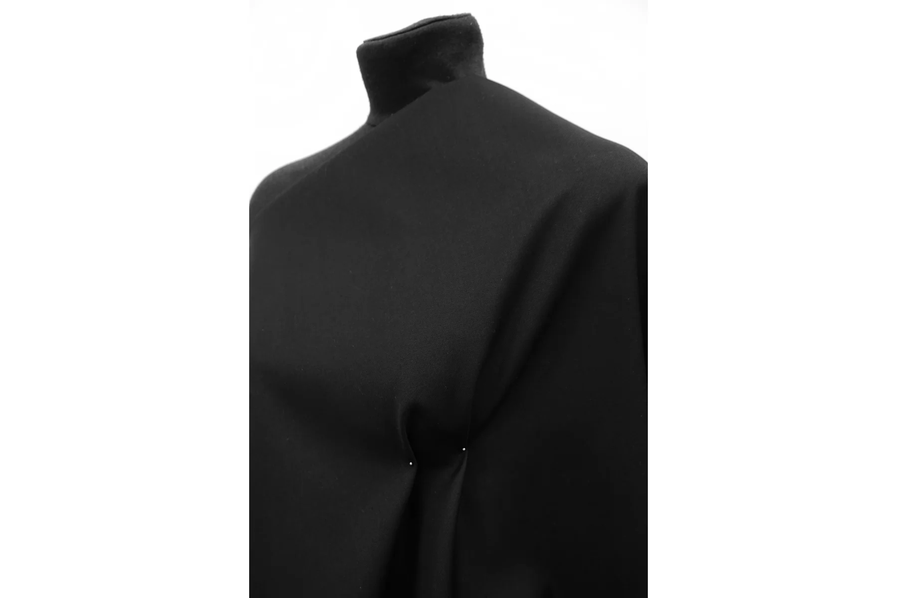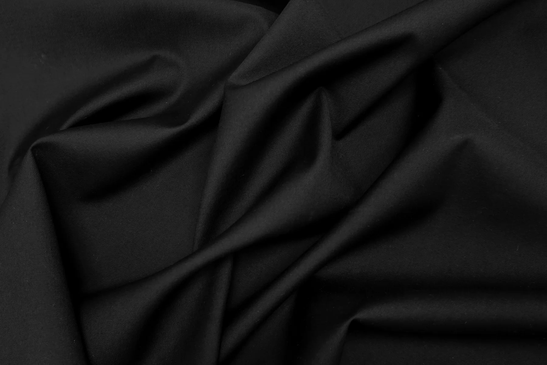 Отличная костюмная шерсть диагонального плетения в чёрном цвете. Слегка суховата. Не просвечивает. Не тянется. Тонкая, но плотная по плетению. Умеренно драпируется и держит форму. Не мнется. Шьем жакеты, костюмы, платья, юбки и теплые рубашки. Уход деликатный.