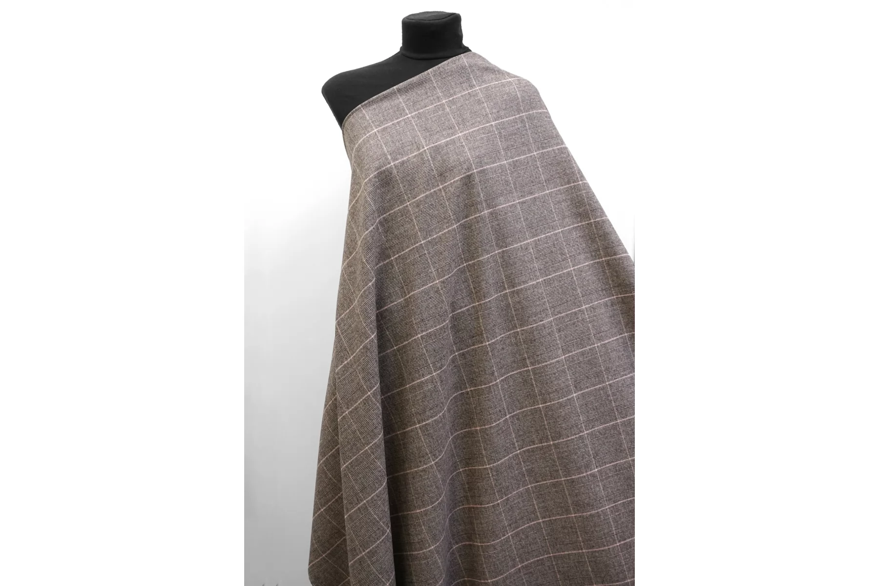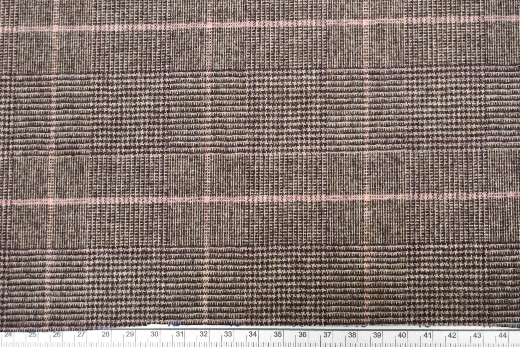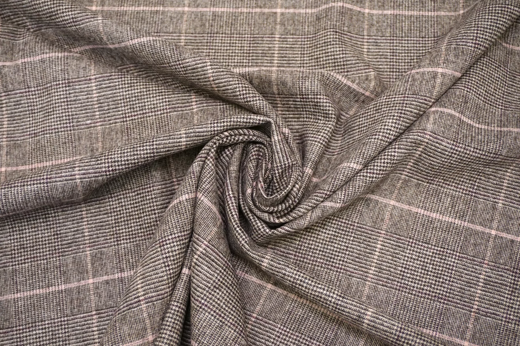 Классная костюмная вирджинская шерсть, с узором клеткой и пепитой, нити тёмно-коричневого, светло-бежевого и розового цвета. Тактильно очень мягкая и приятная, ворсистая, не колется. Тянется. Не просвечивает. Не мнется. Пластичная но при этом держит форму. Шьем костюмы, юбки, брюки, или теплые рубашки верхнего слоя. Уход деликатный.