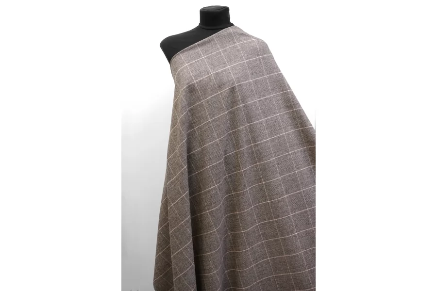 Костюмная фланель-стрейч шерстяная CERRUTI Гленчек бежево-коричневая BL H60/1 FF30 30102505