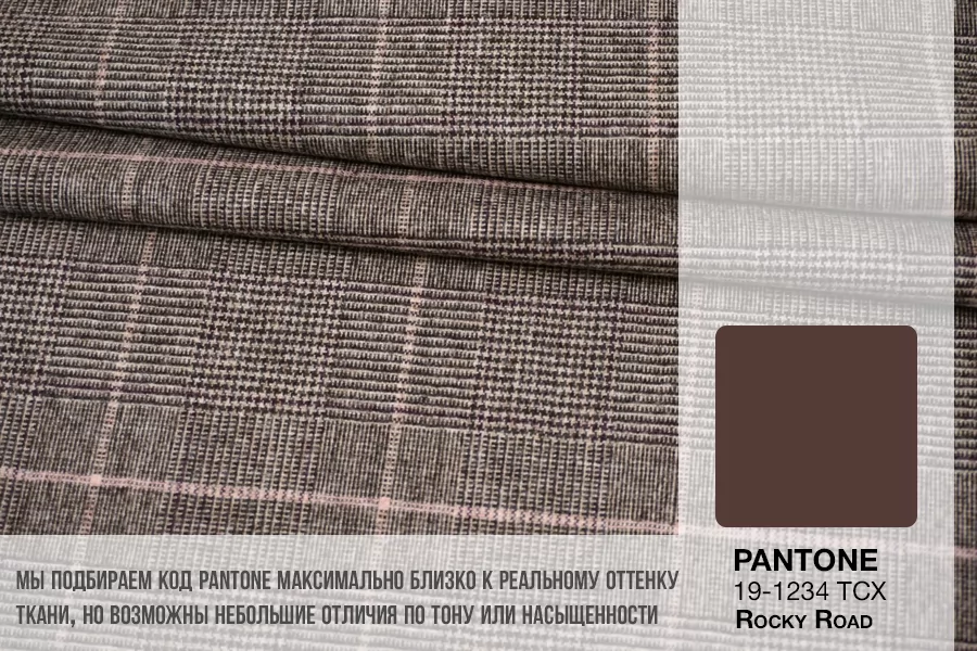 Мы делаем все возможное, чтобы точно описать цвет каждой ткани из нашего каталога. Мы осматриваем и фотографируем каждую ткань в естественном свете, стараемся находить только правильные цветовые условия и описания. Но несмотря на наши старания, мы не можем гарантировать точное соответствие цветов из-за одного простого факта: различия в цветовых настройках мониторов или мобильных дисплеев слишком велики для однозначного определения какого-либо цветового оттенка. Именно поэтому мы предлагаем вам заказать образец перед покупкой любой ткани. Также если Вы занимаетесь индивидуальным пошивом (ателье), то данная услуга поможет Вам улучшить работу с клиентами.