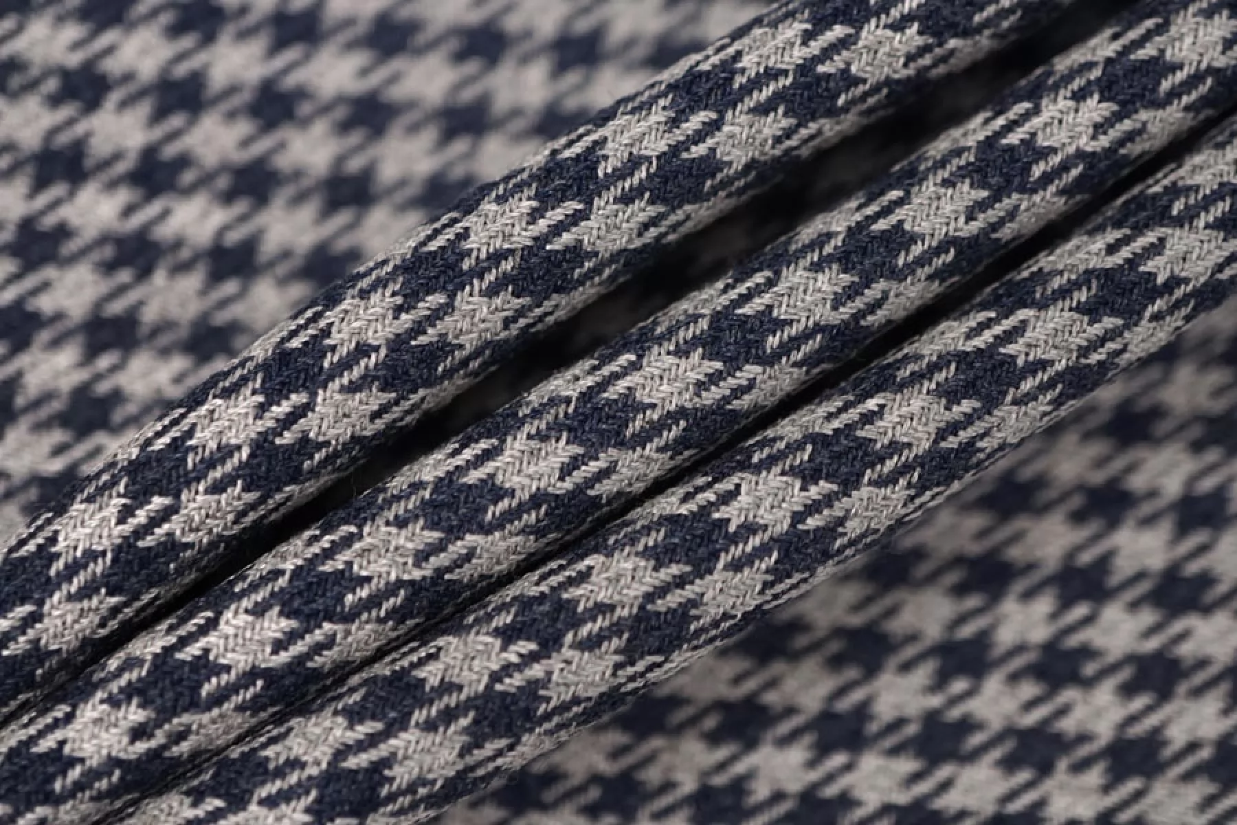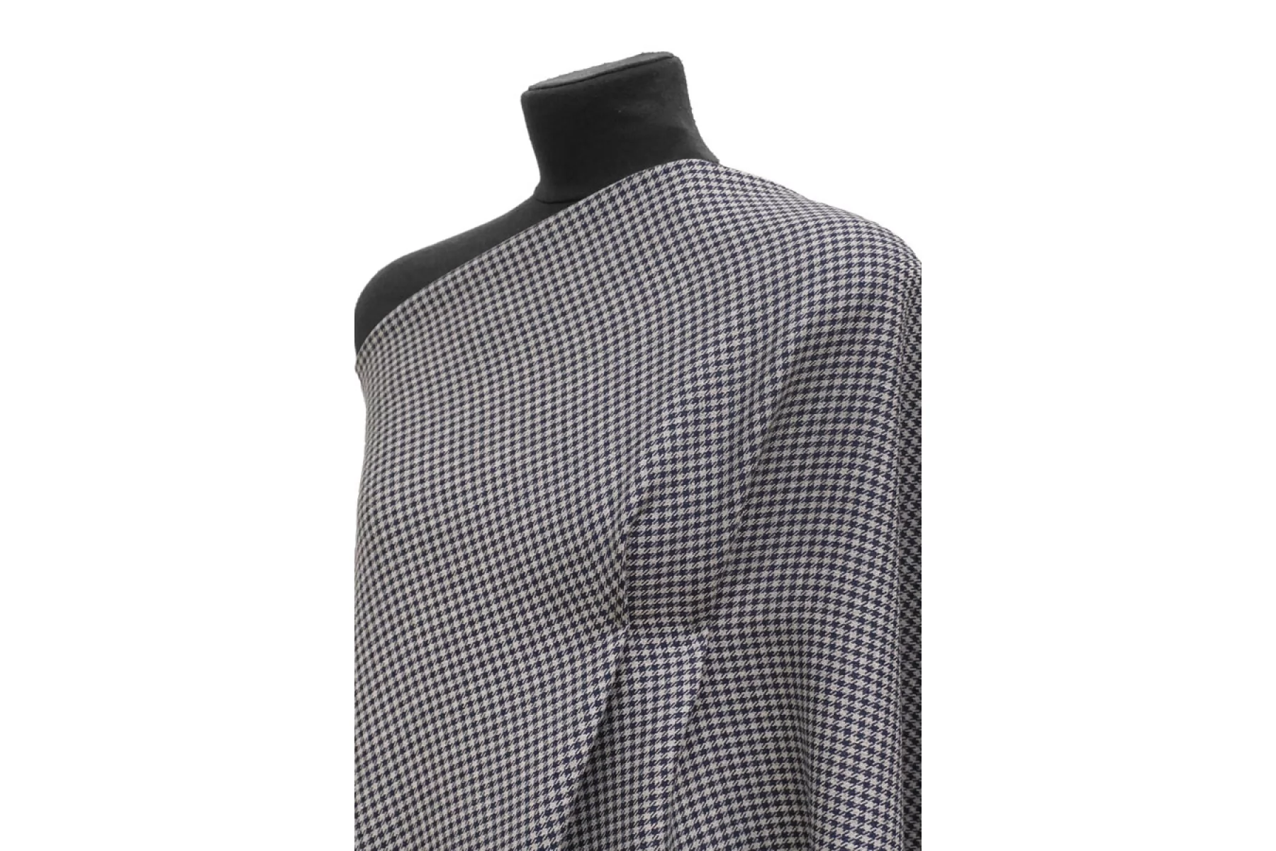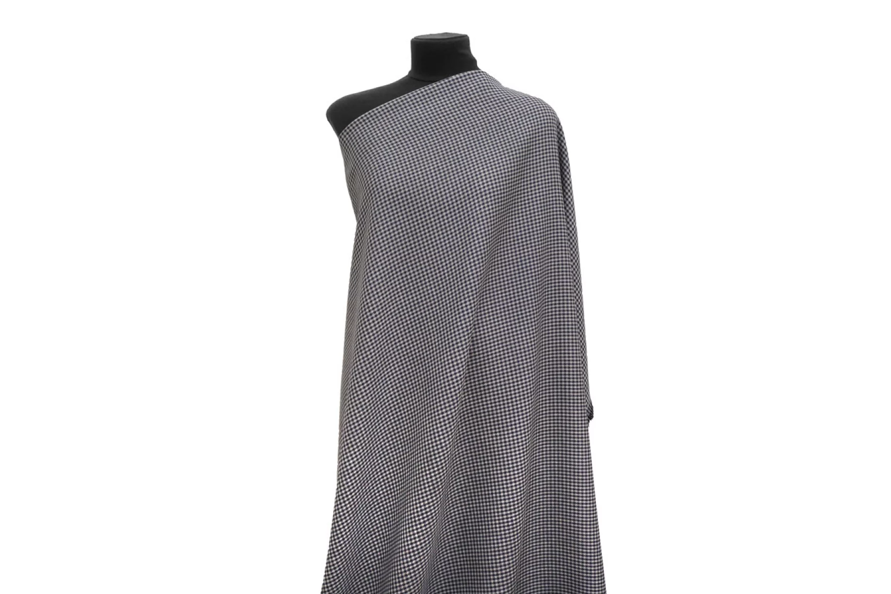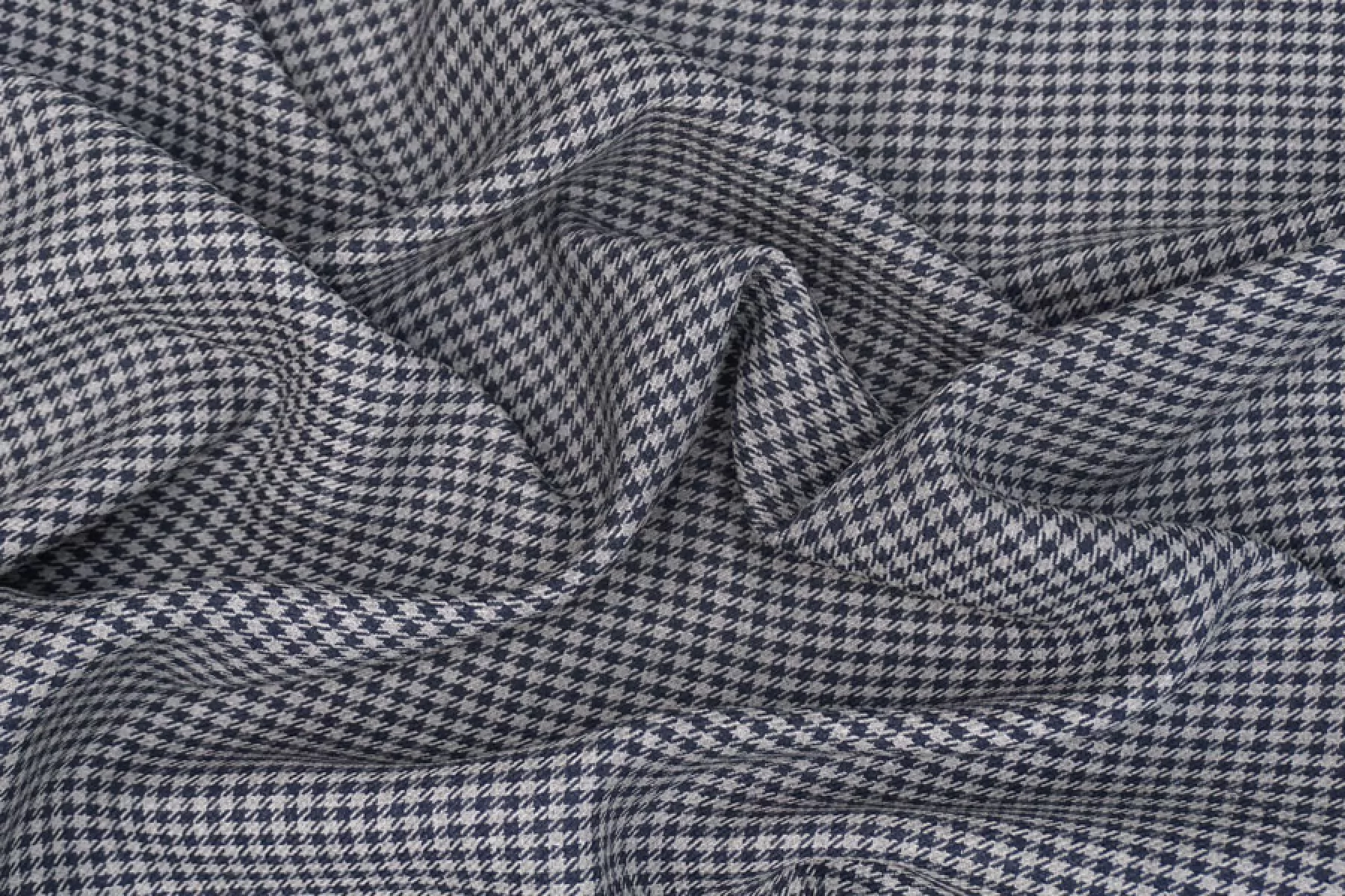 Шикарная костюмная вискоза с шерстью в мелкую гусиную лапку серого и синего цвета. Изнаночная сторона черная. Плетение диагональное. Ткань мягкая, плотная, не колется. Ткань не просвечивает, не тянется, немного держит форму, пластичная. Подойдет для пошива жакета, костюма, демисезонной юбки, брюк, платья.
