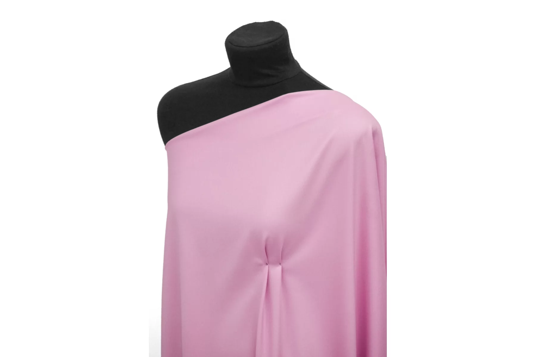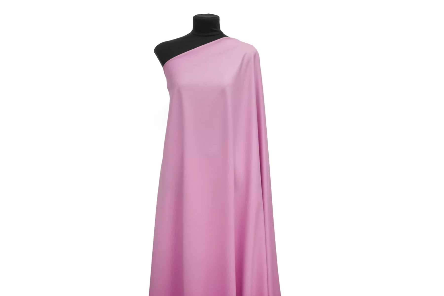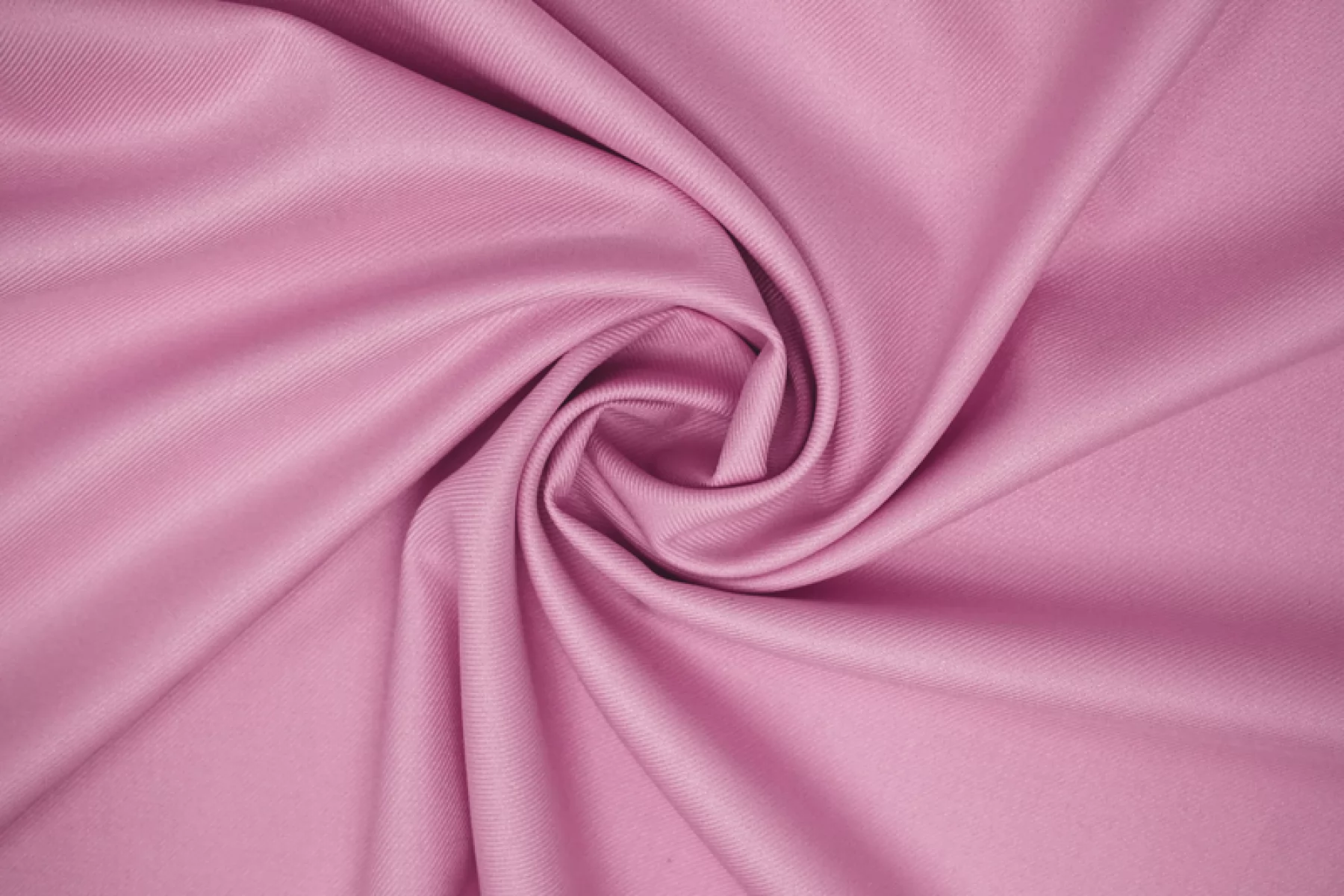 Костюмная поливискоза диагонального плетения красивого розово-лилового оттенка. Мягкая и приятная, пластичная. Обладает совсем легкой жесткостью, благодаря чему красиво держит складки. Обладает приятным лоском. Слегка сминается, частично восстанавливается. Не просвечивает. Слегка пружинит за счет эластана. Поливискоза отличается хорошей износостойкостью и прочностью. Уход деликатный. Прекрасный вариант на костюмы, мягкие жакеты, платья, юбки и не только.