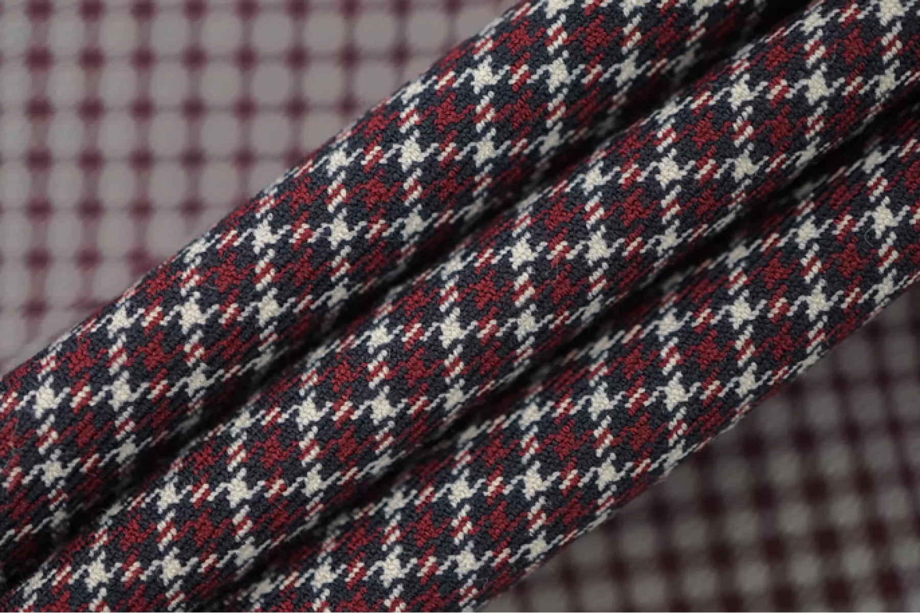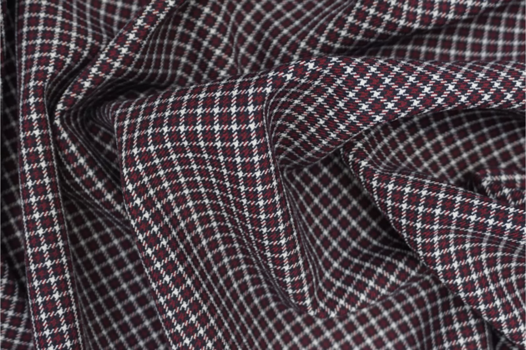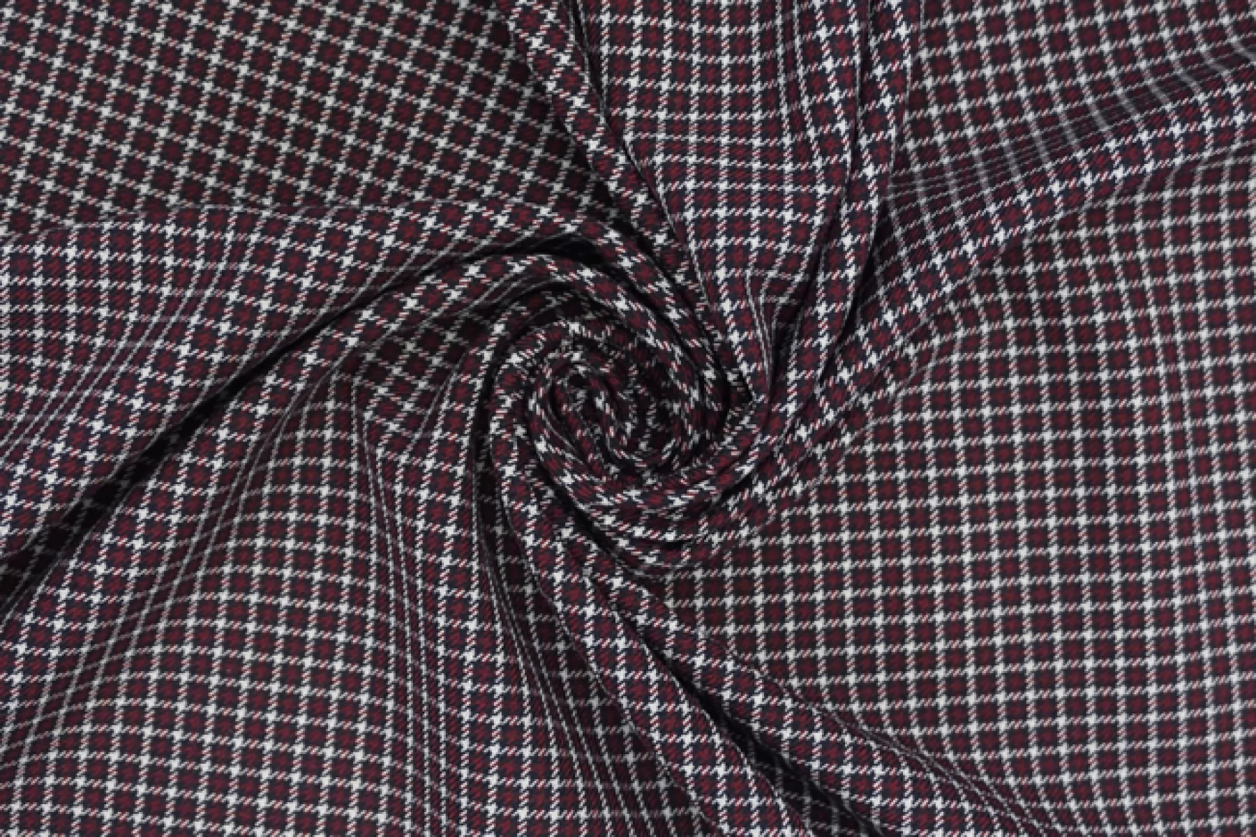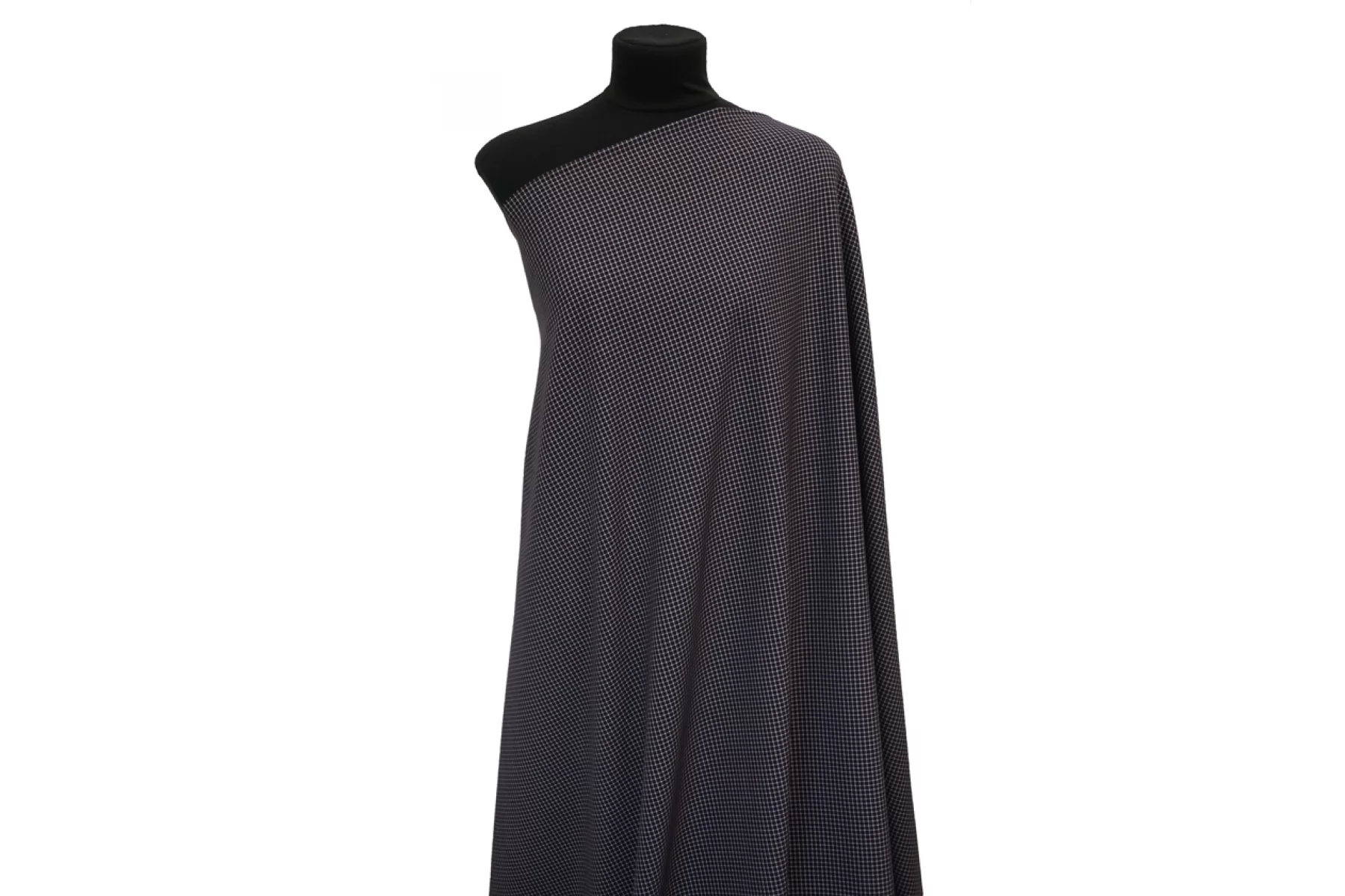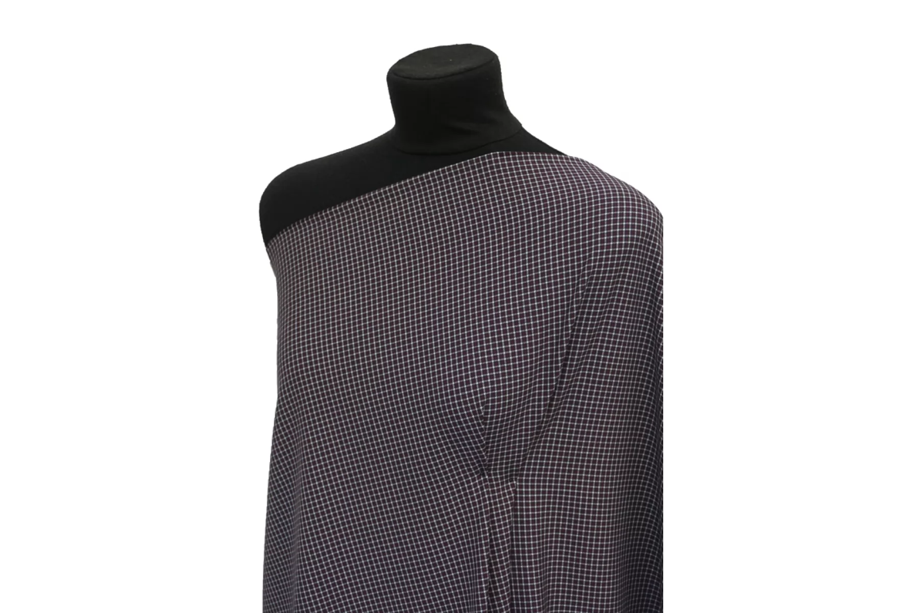 Костюмная поливискоза от MAX MARA диагонального плетения в мелкую клетку оттенков иссиня-черного, винного и белого. Материал тактильно приятный и мягкий, плотненький, не мнется. Обладает хорошей износостойкостью. Красив в своей пластике. Не просвечивает. Добавление эластана позволяет немного и упруго тянуться ткани. Шьем жакеты, костюмы, платья, юбки, брюки и не только. Рекомендуется деликатный уход.